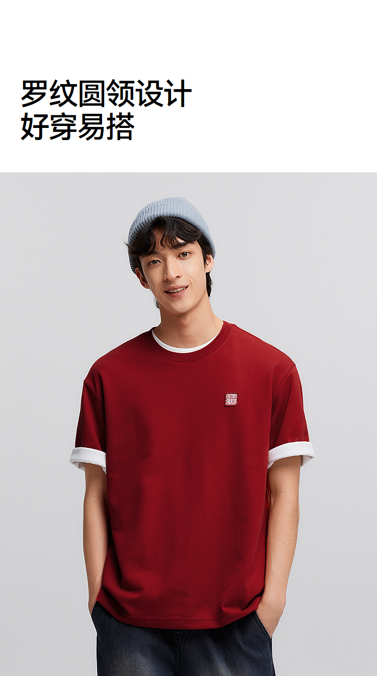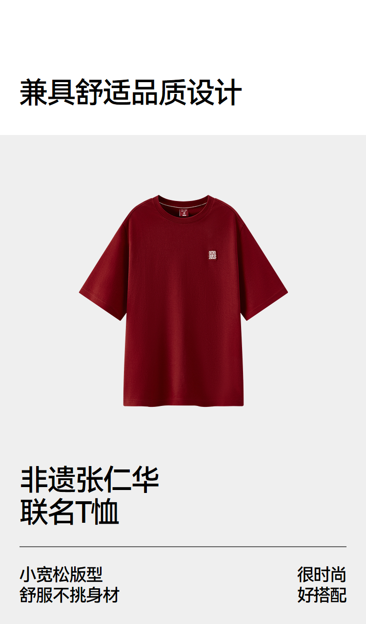 森马张仁华非遗联名短袖T恤男春季立体章仔内搭上衣情侣时尚百搭