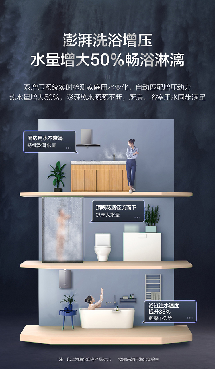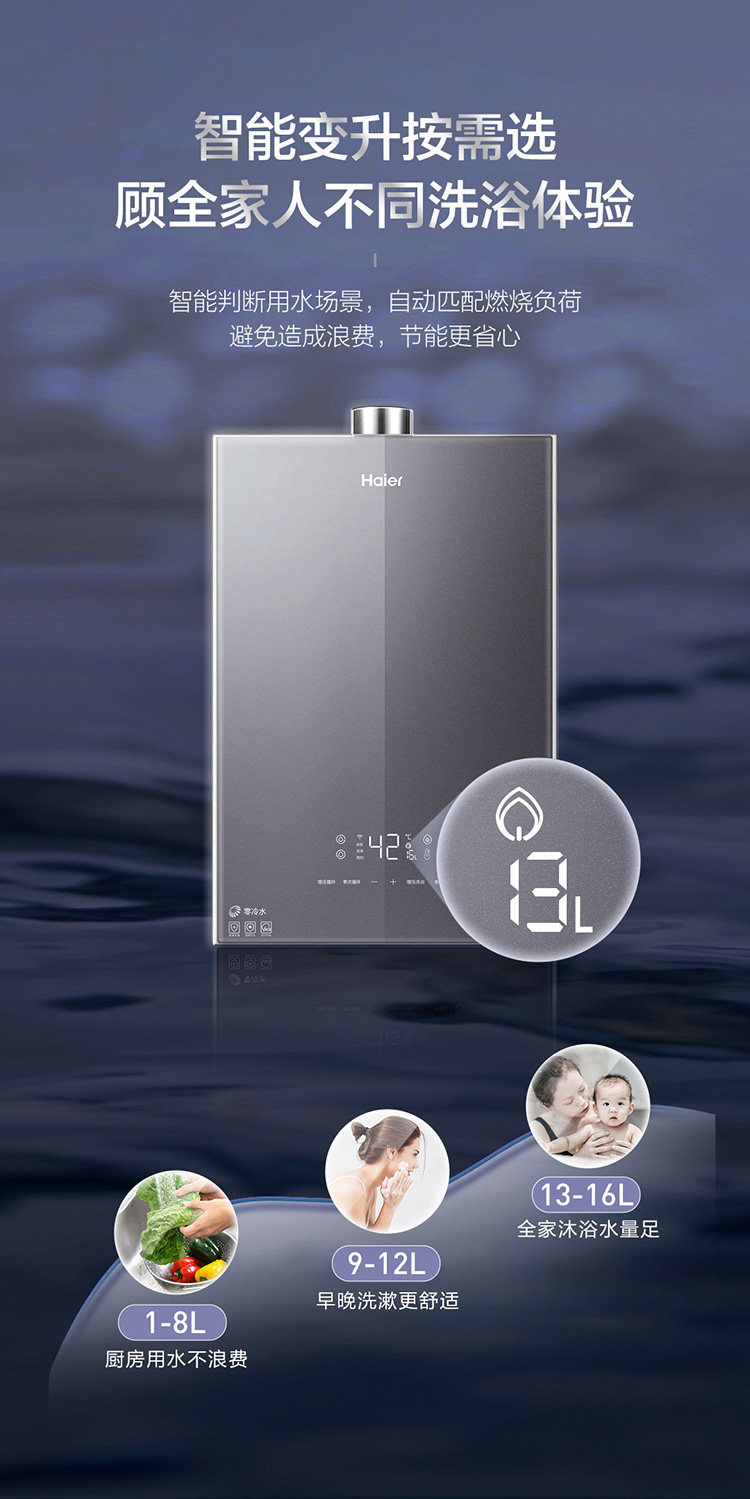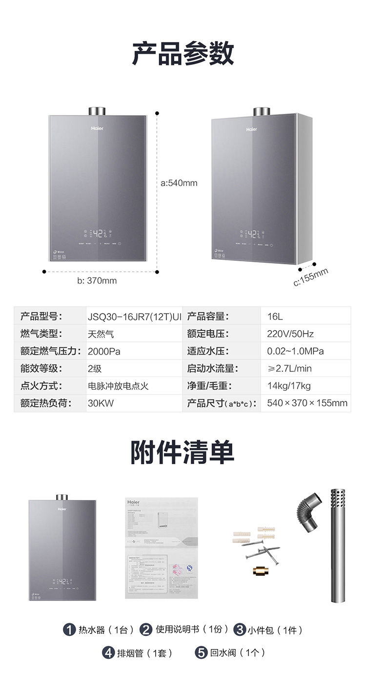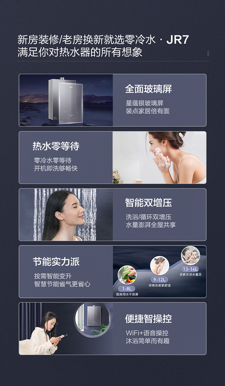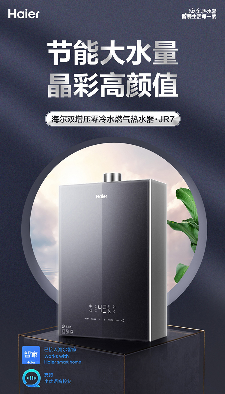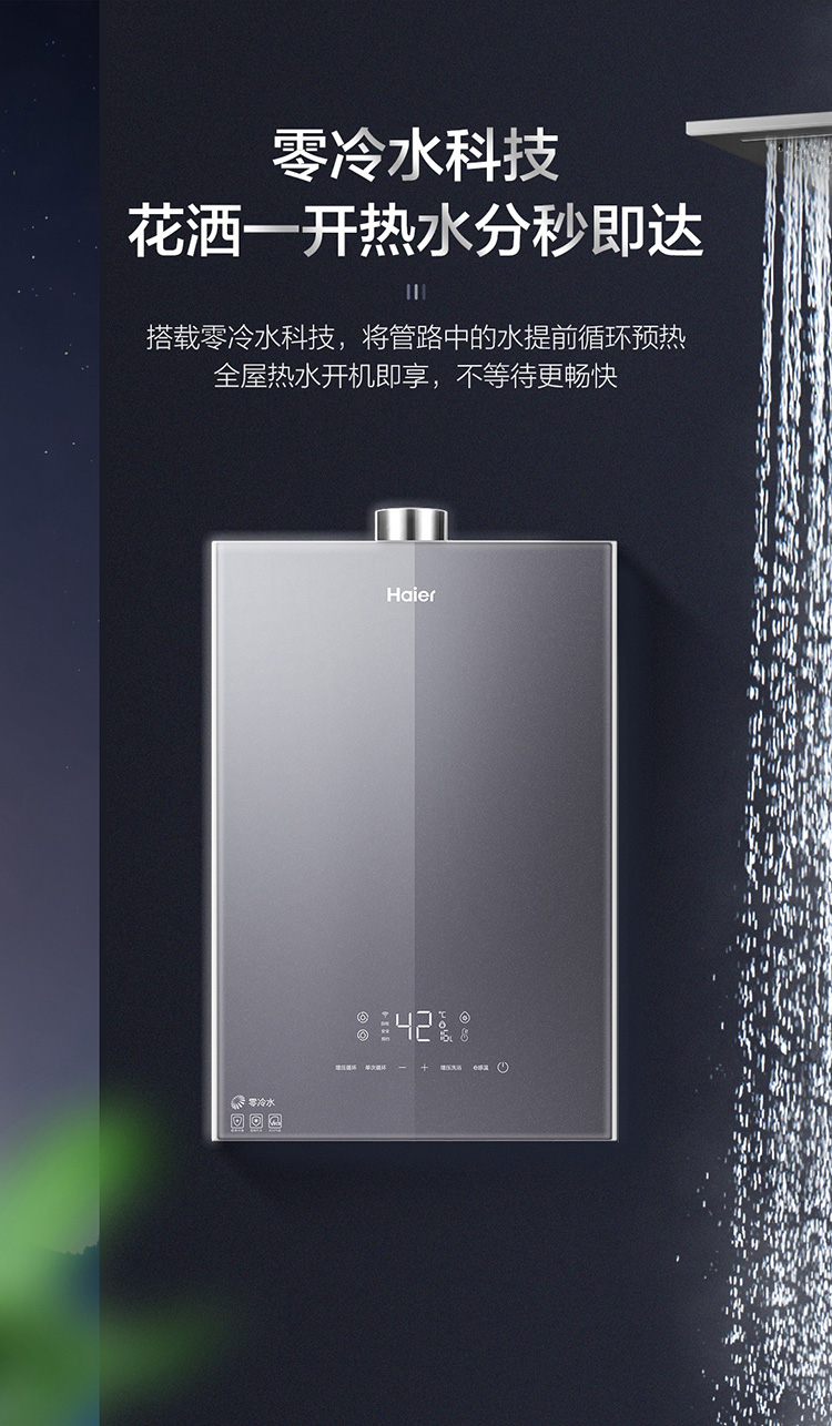 海尔16升双增压零冷水燃气热水器天然气 大水量瀑布洗 WIFI智控家用 JSQ30-16JR7(12T)U1