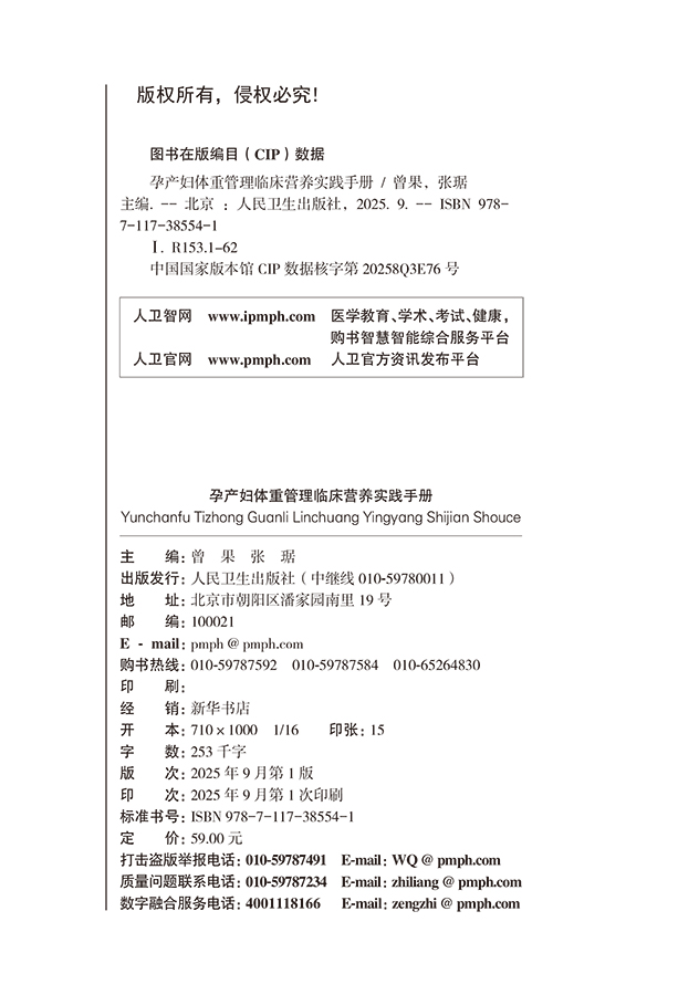 孕产妇体重管理临床营养实践手册 曾果 张琚 主编 本书全面介绍了孕产妇体重管理的基础理论 生理变化 医学进展等 人民卫生出版社