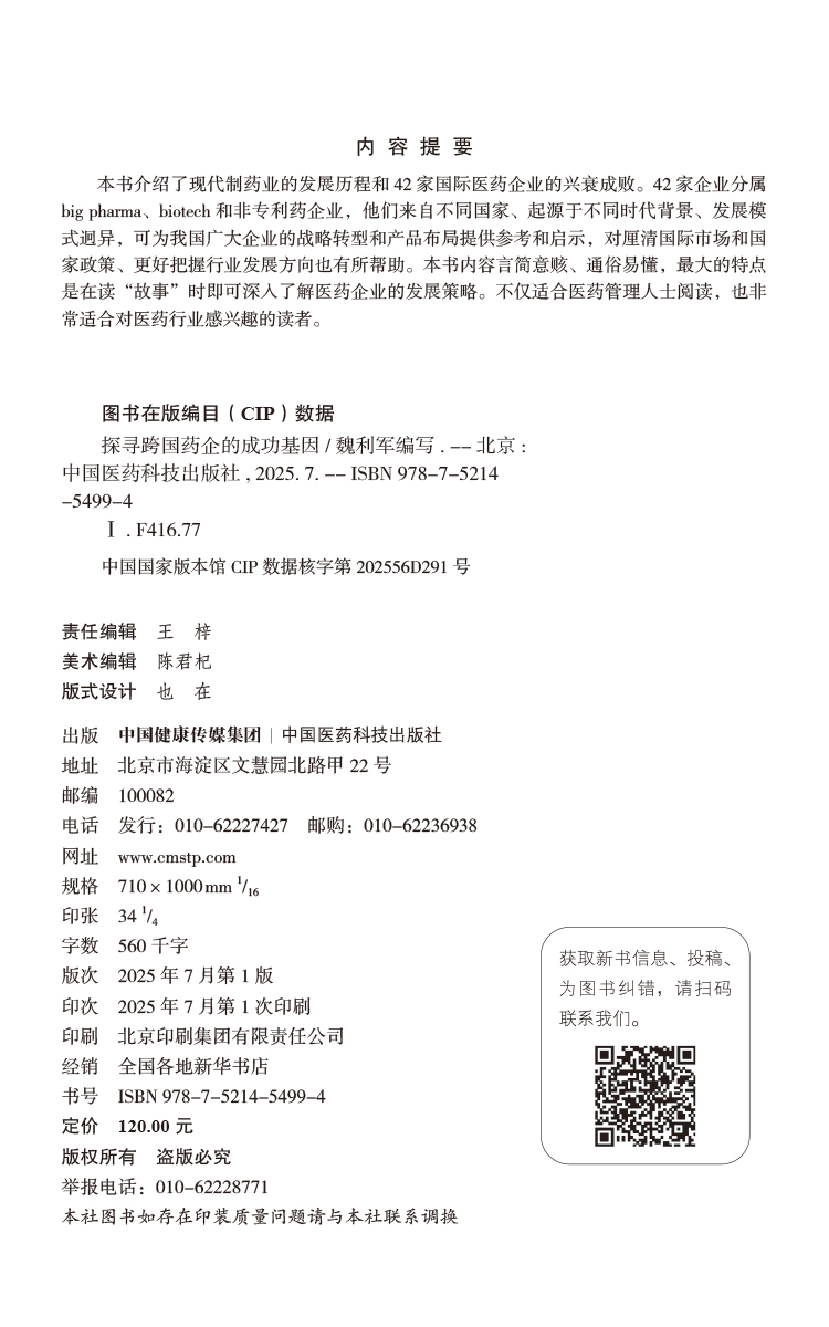 探寻跨国药企的成功基因 魏利军 主编 适合医药管理人士阅读 及医药行业感兴趣的读者 药企管理 9787521454994 中国医药科技出版社