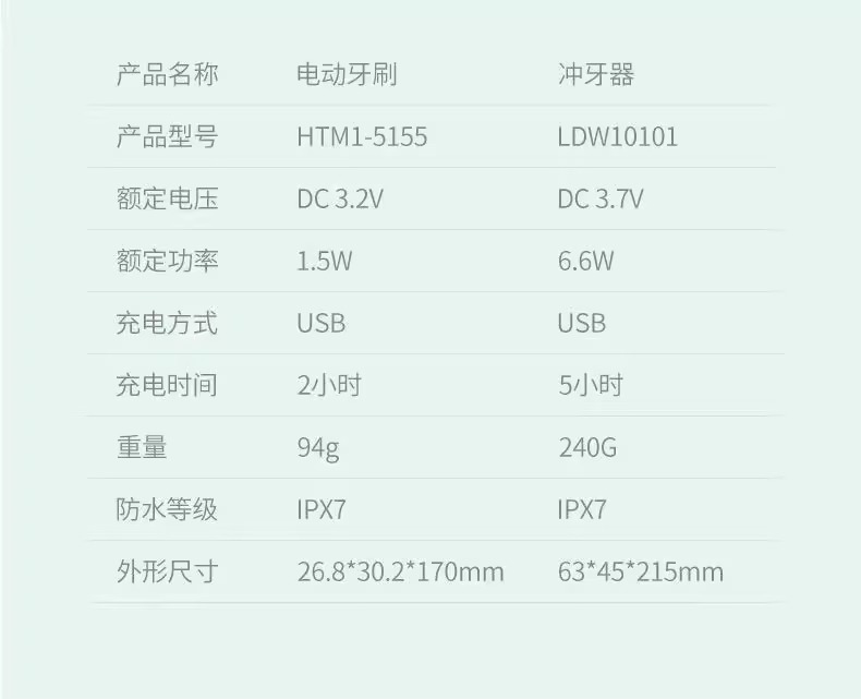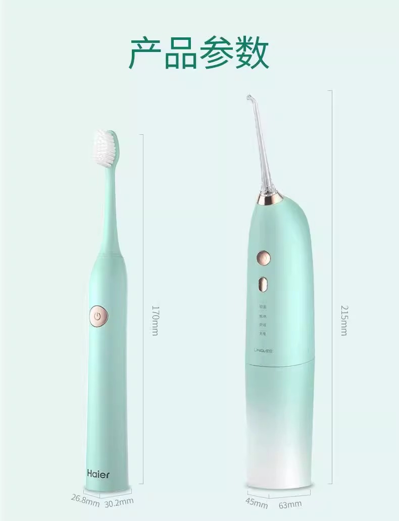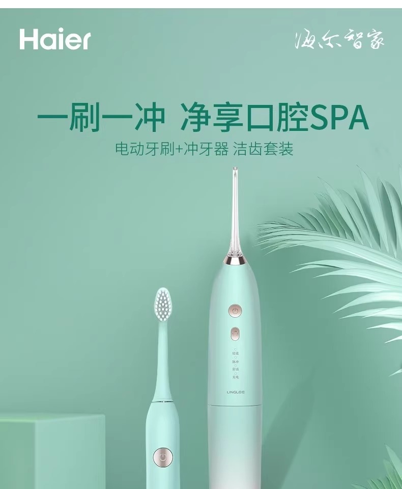 海尔家用电动牙刷便携式清洗口腔牙齿冲牙器护理冲刷一体 HTM1-5155洁牙套装 电动牙刷+冲牙器