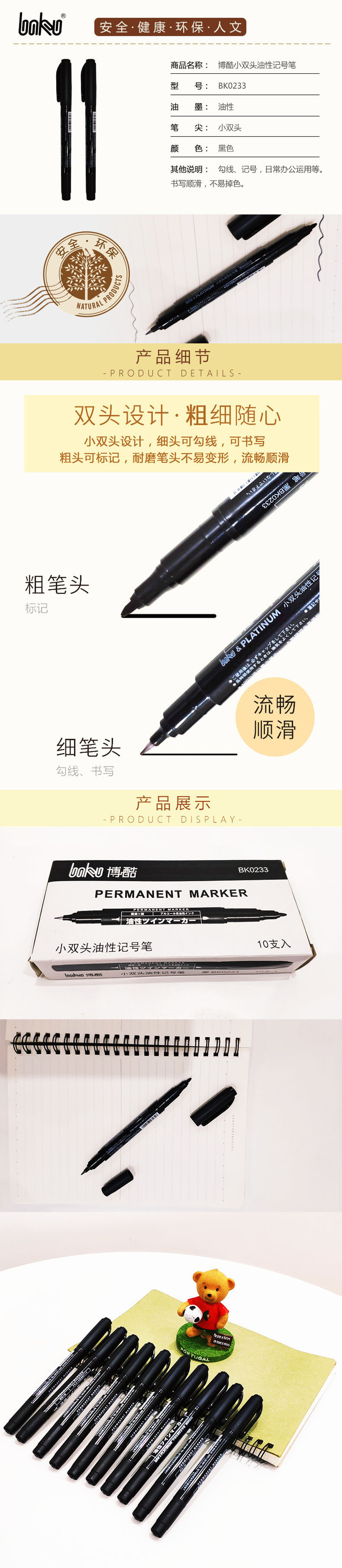 博酷小双头记号笔黑色(两头1粗1细)美术描边勾线