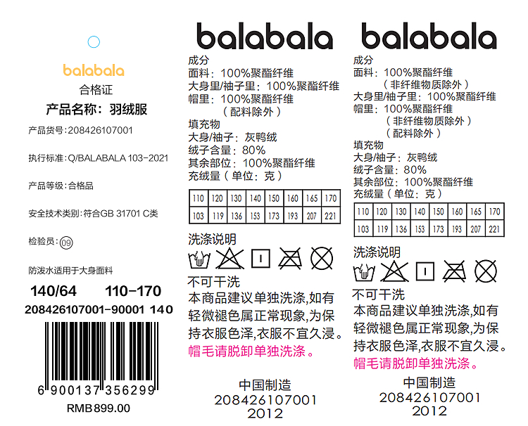 【balaOne】巴拉巴拉童装儿童羽绒服女童2026年新款秋季防护外套