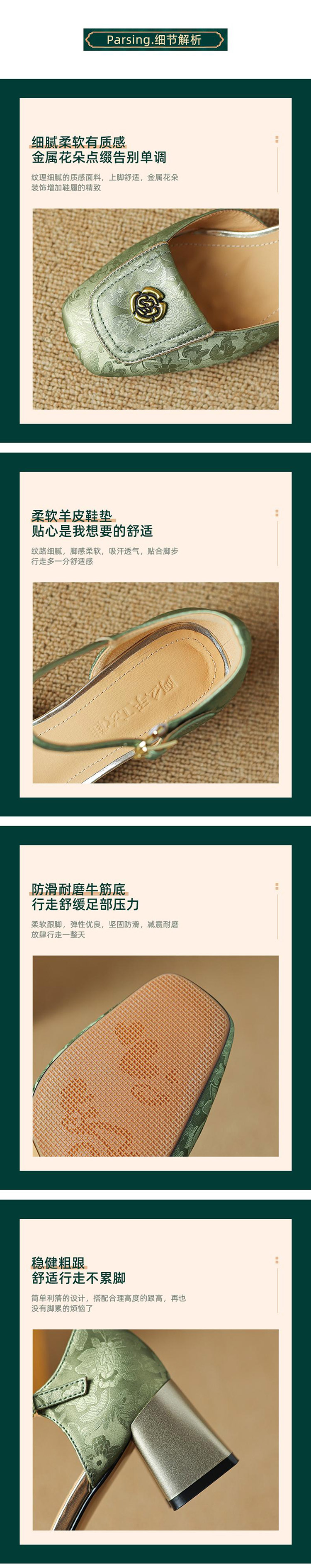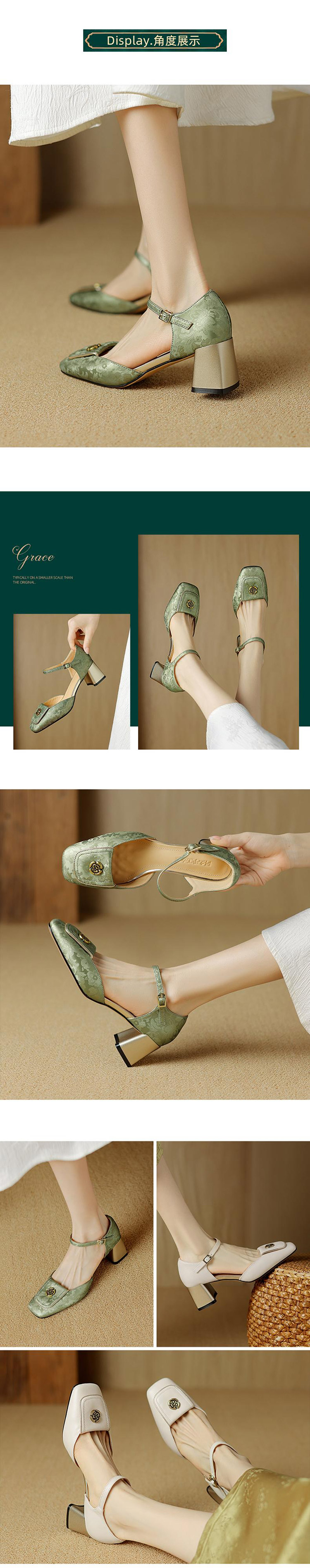 新中式方头一字带粗跟凉鞋不掉跟5.5CM浅口百搭高跟-CC 商品图2