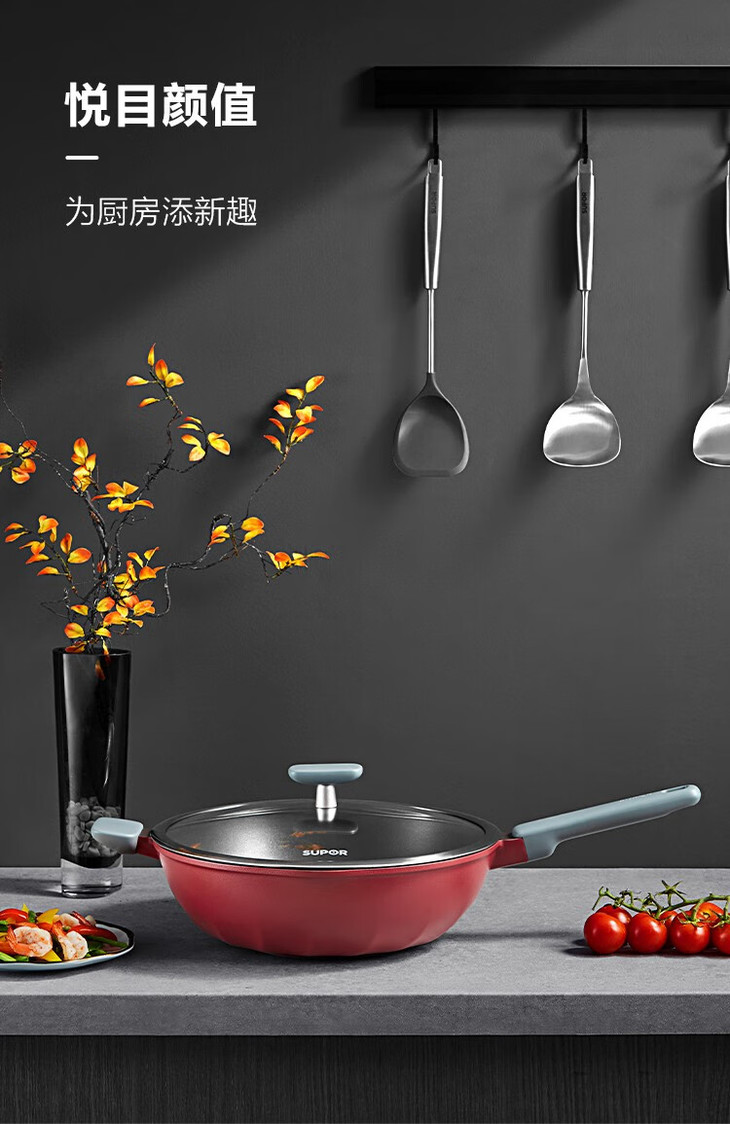 苏泊尔(509939)(SUPOR) 火红点钛磨力不粘炒锅·晶铸系列少油烟家用烹饪不易粘炒菜锅电磁炉燃气灶通用 34cm NC34WA3