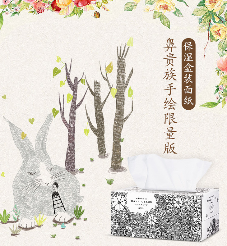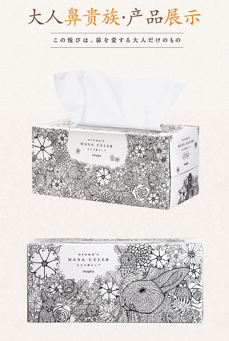 南京(日本原装)妮飘(Nepia)鼻贵族手绘限量版盒装抽纸(3层150抽1盒)