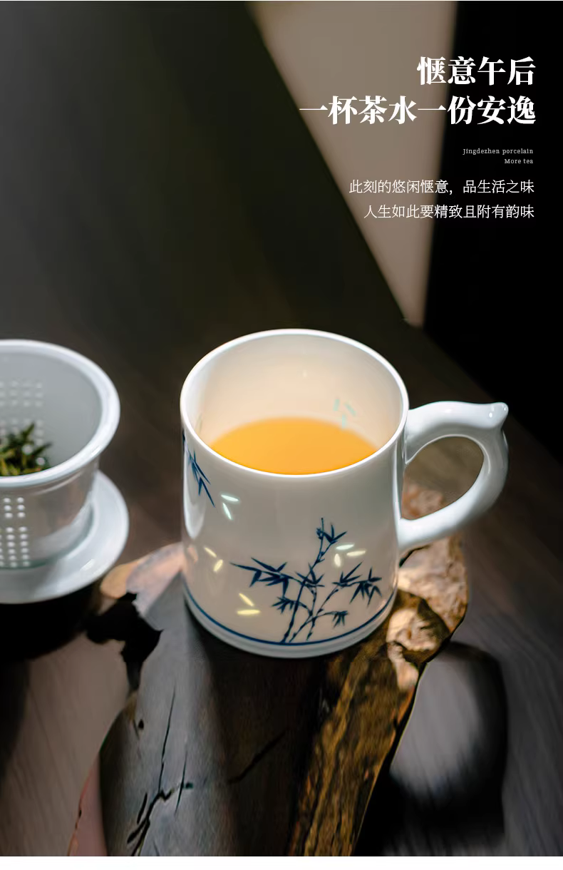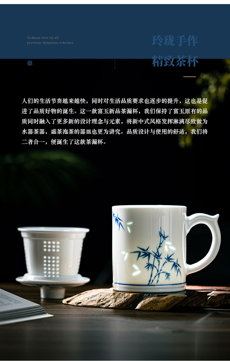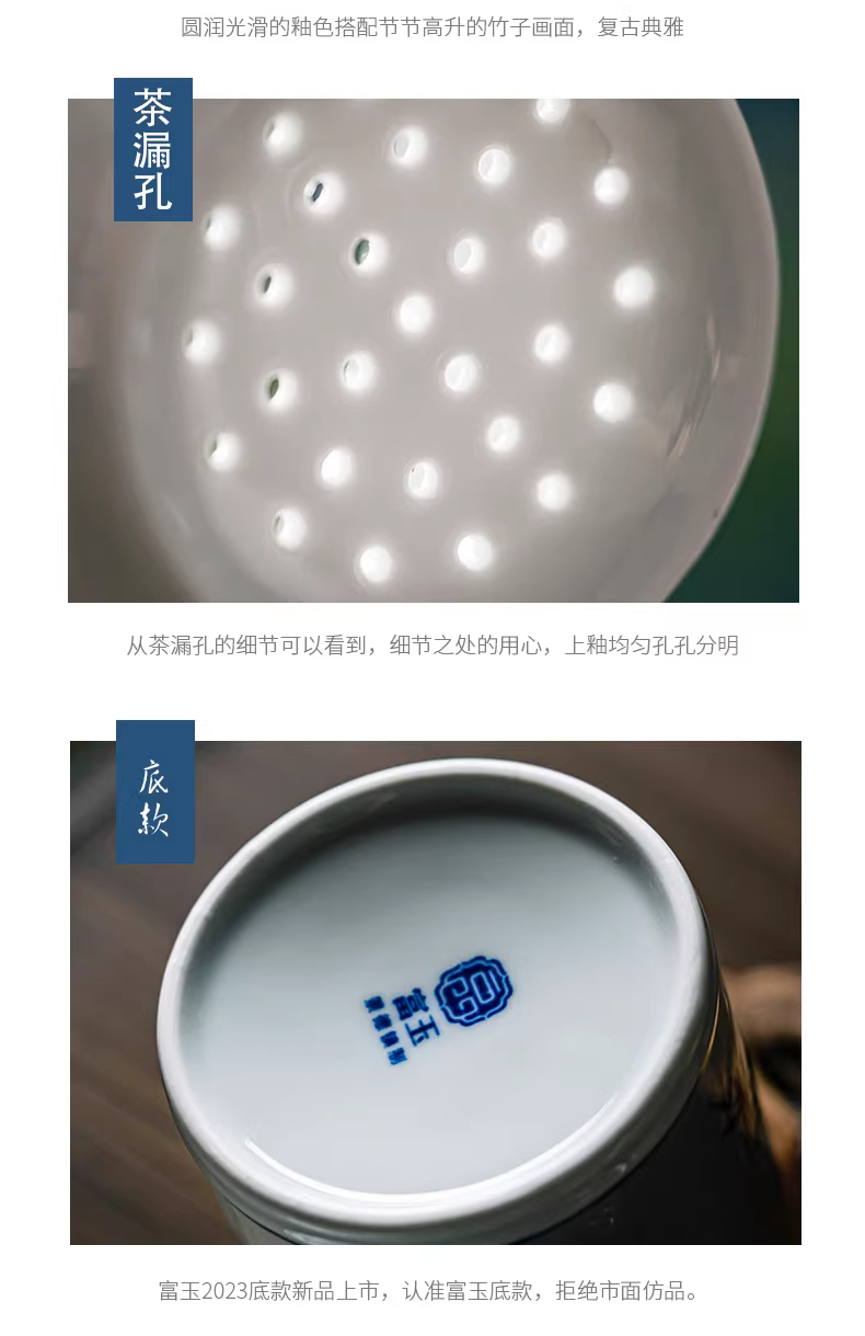 富玉 景德镇玲珑茶杯大容量节节高升茶漏杯