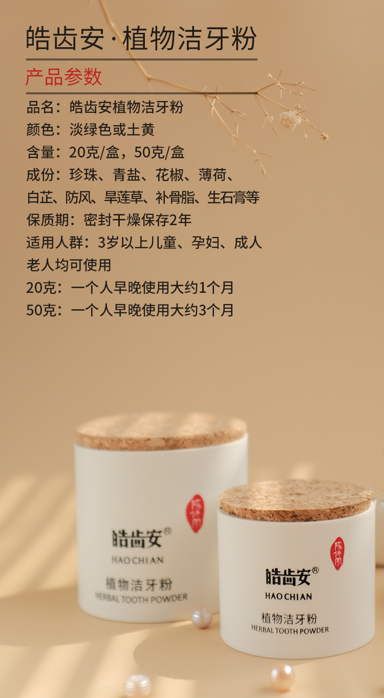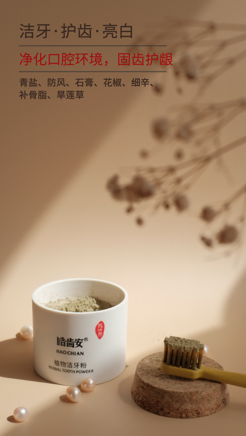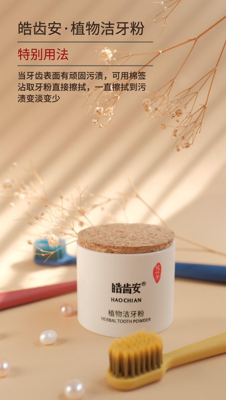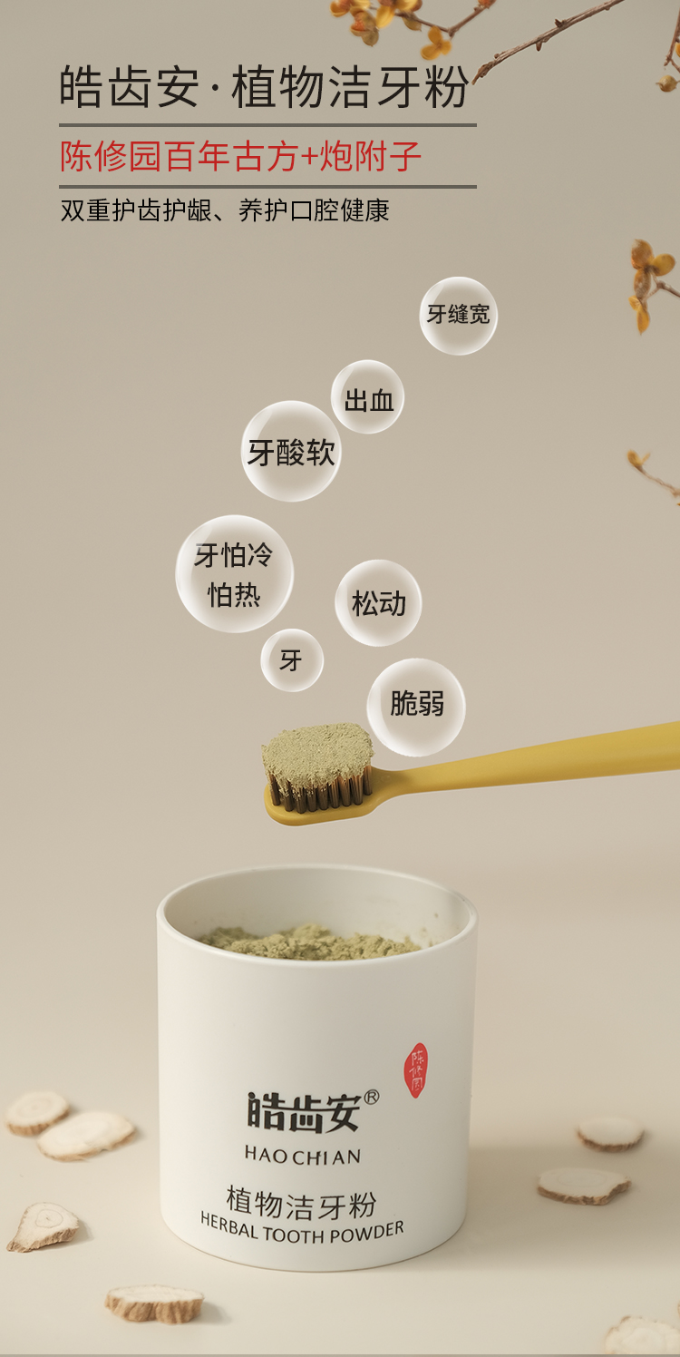 【陈修园·百年古方】皓齿安植物洁牙粉 多规格可选【套组牙刷颜色随机】