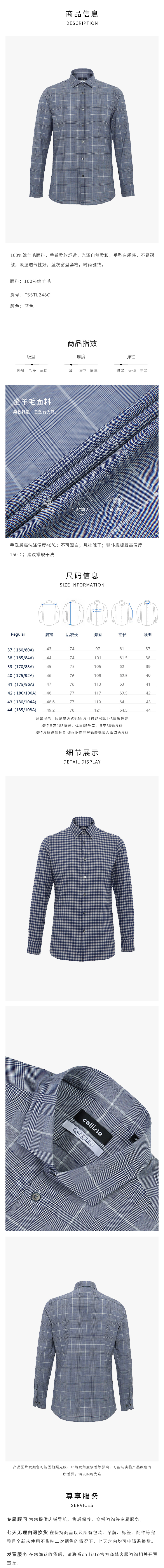 callisto蓝色全绵羊毛窗型套格长袖衬衫 FSSTL248C