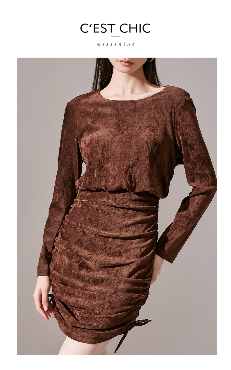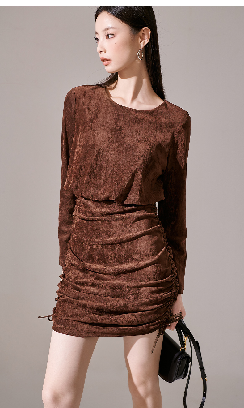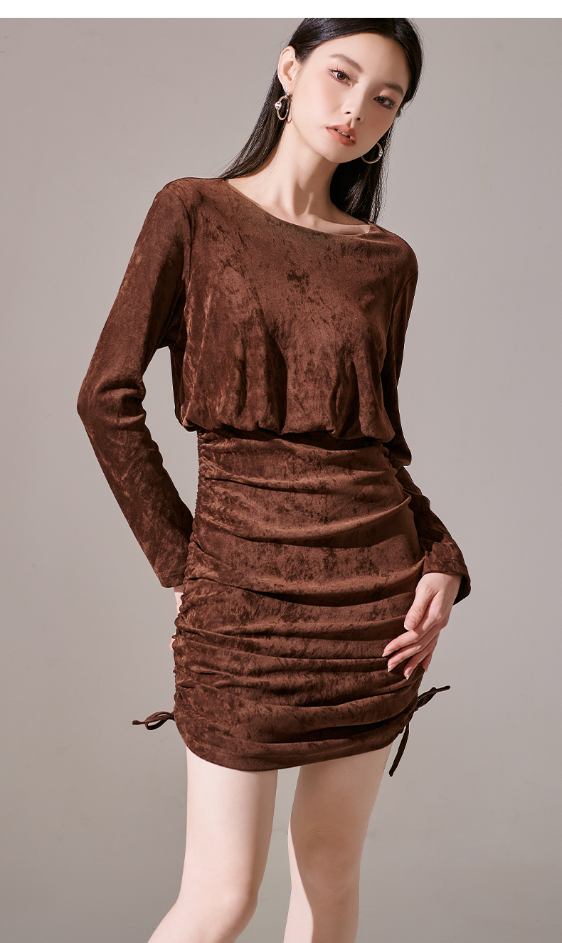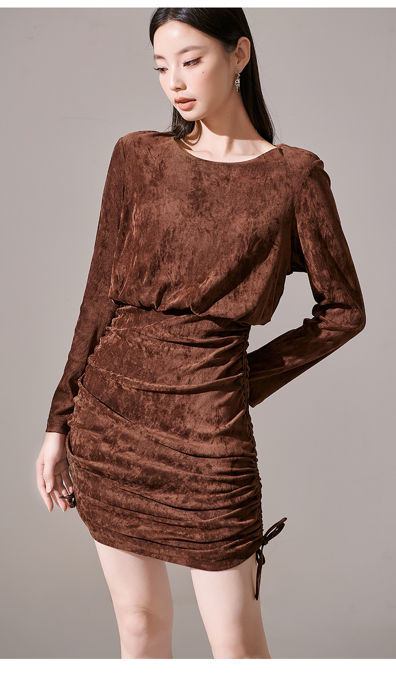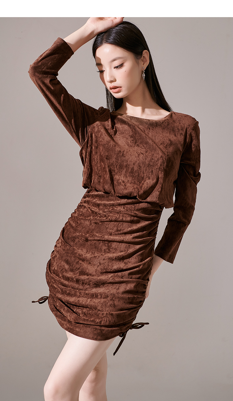剩S/L/XL 芳外新款丝绒小个子显高包臀裙绑带可调节设计连衣裙8I23CL1231