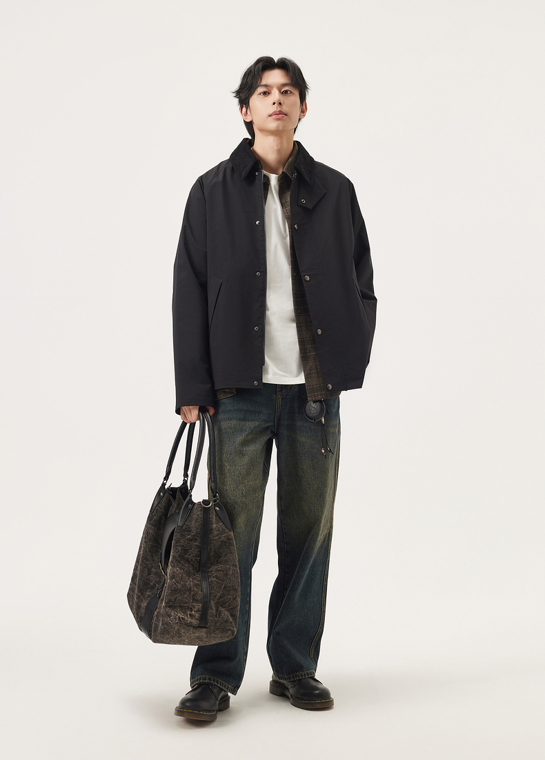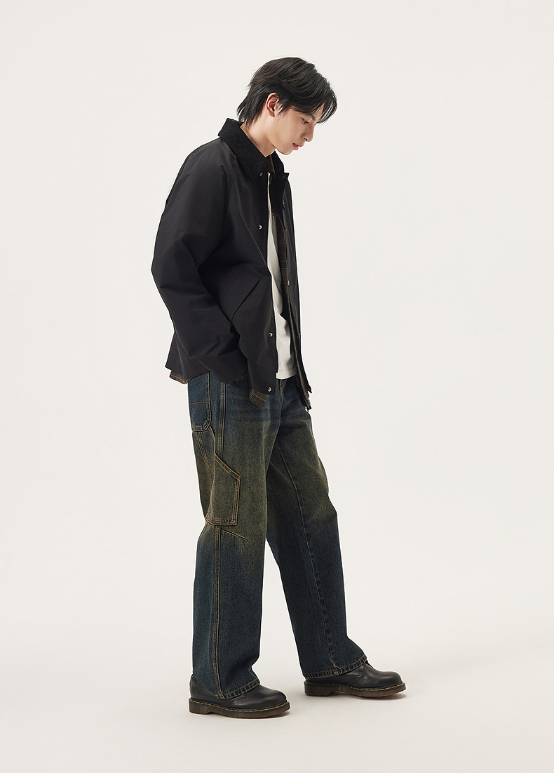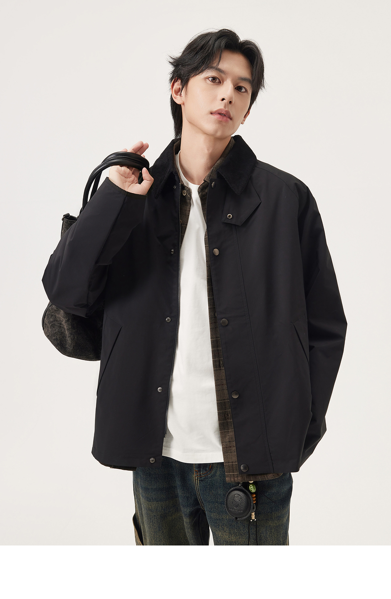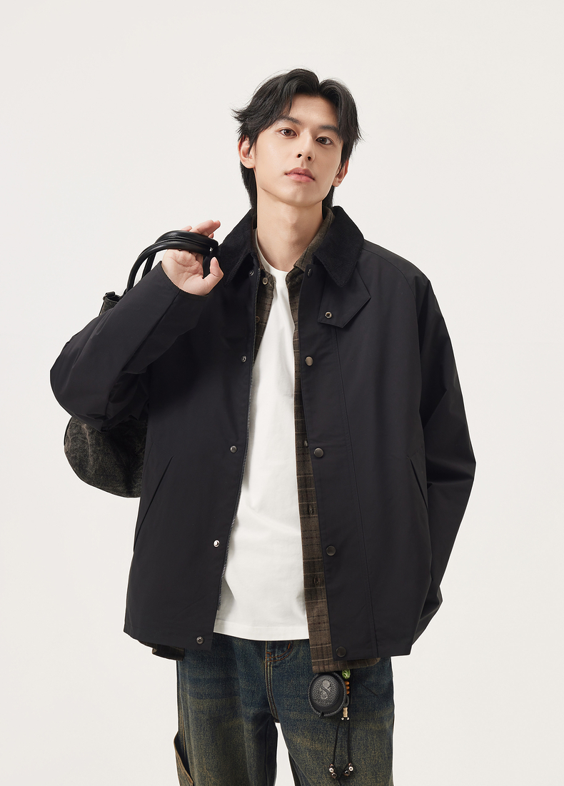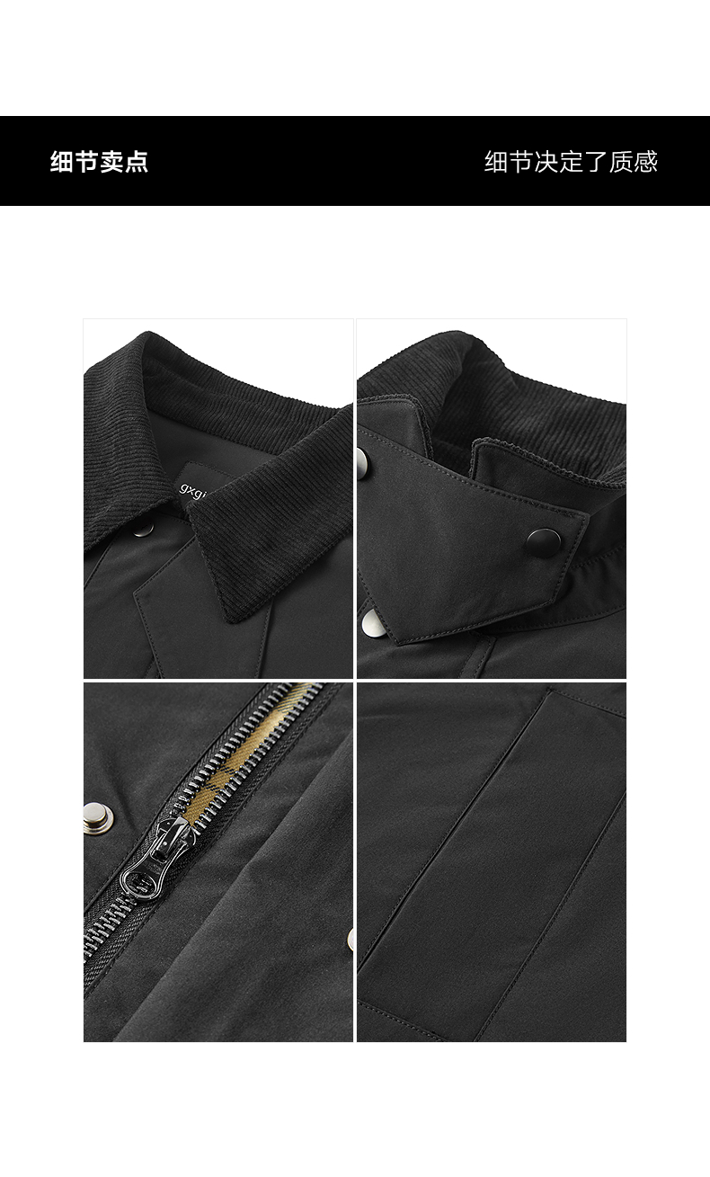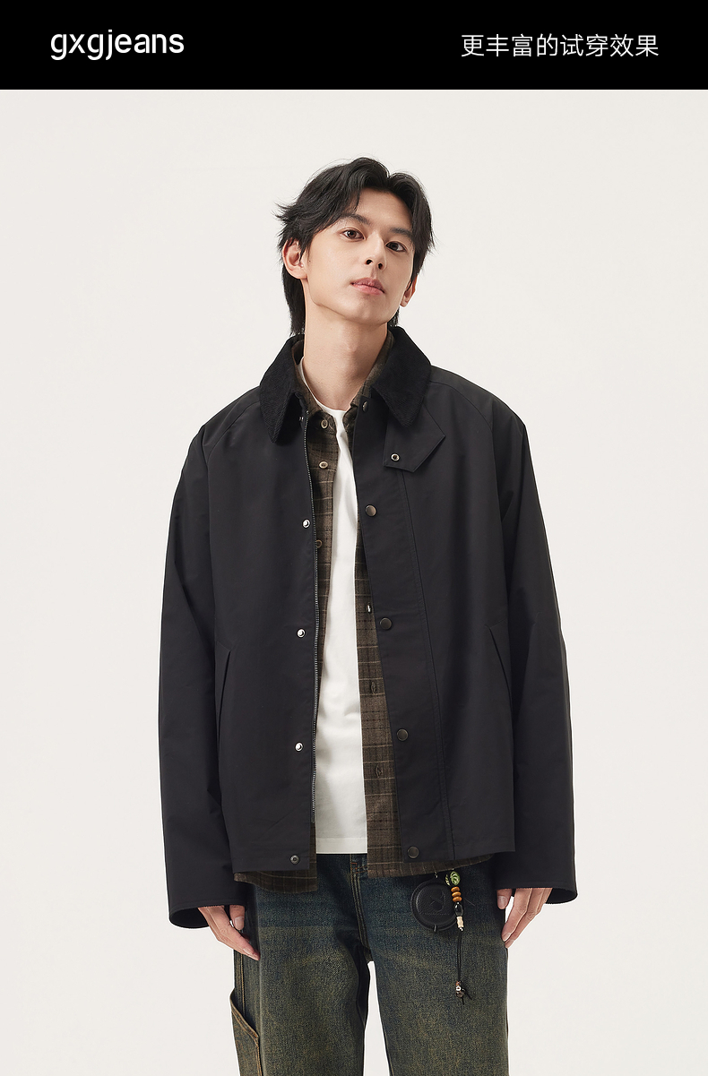 gxg.jeans男装 黑色拼接灯芯绒领工装宽松夹克外套男士 25秋热卖
