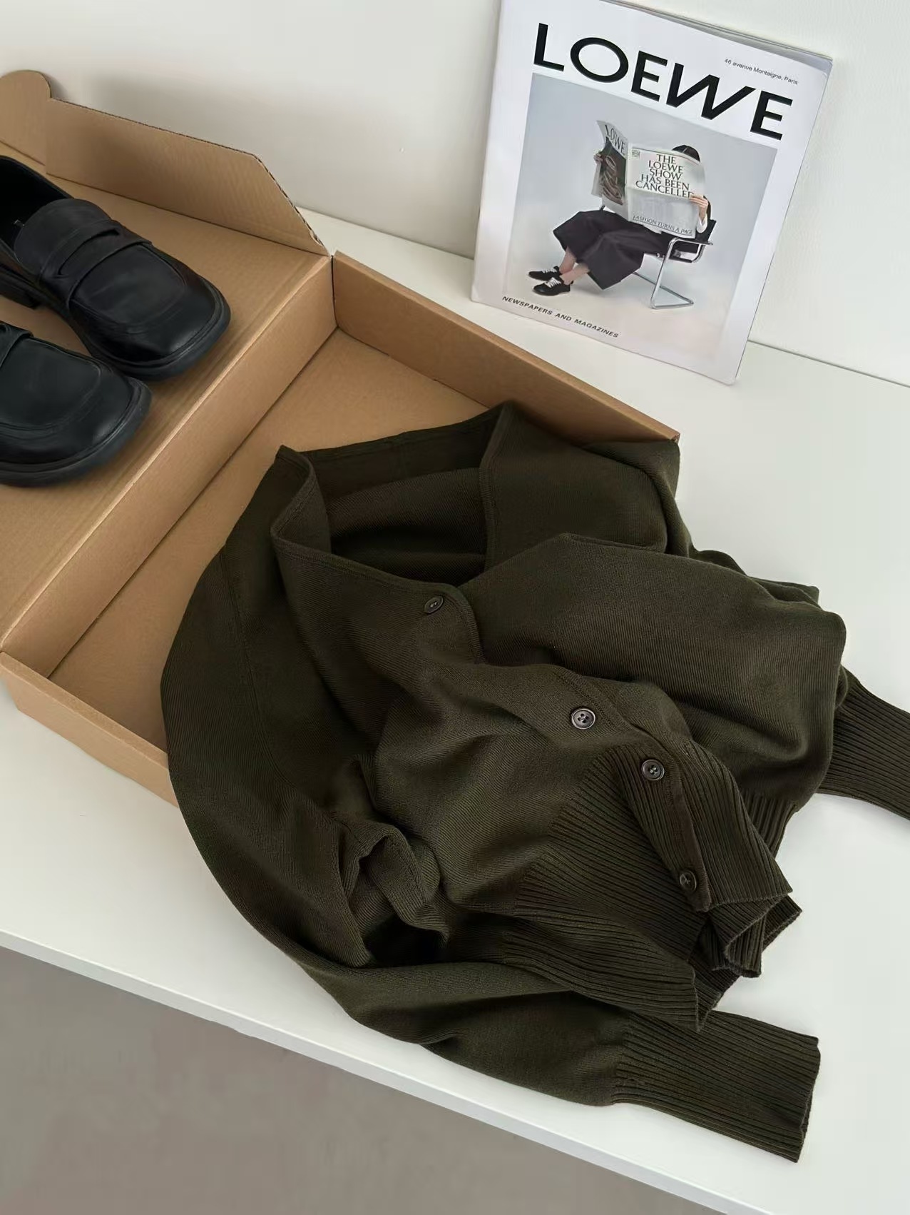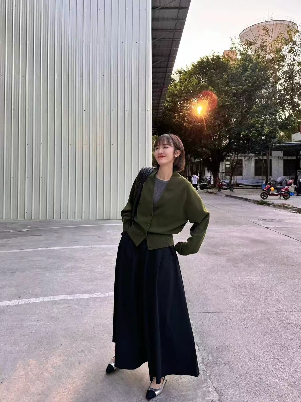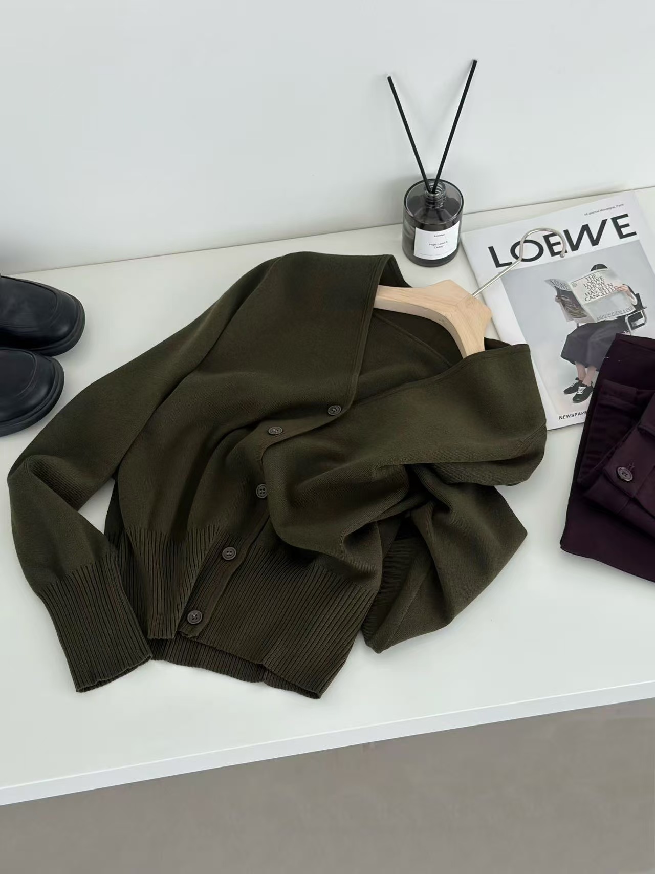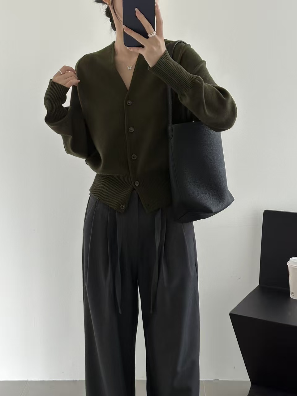 爆款3-7天发货!isabelle marran苔藓绿极简秋冬气质V领开衫JS3699034