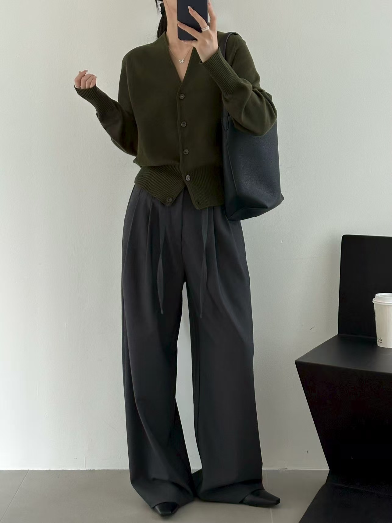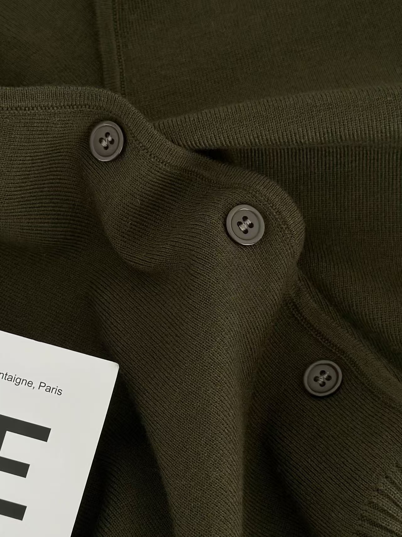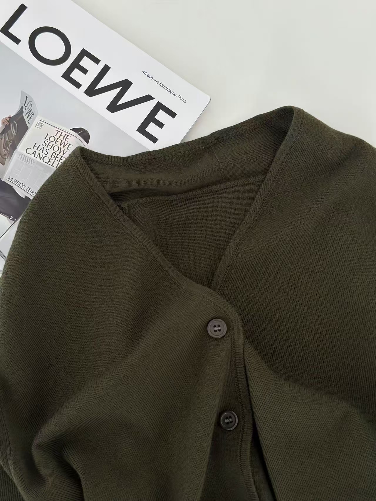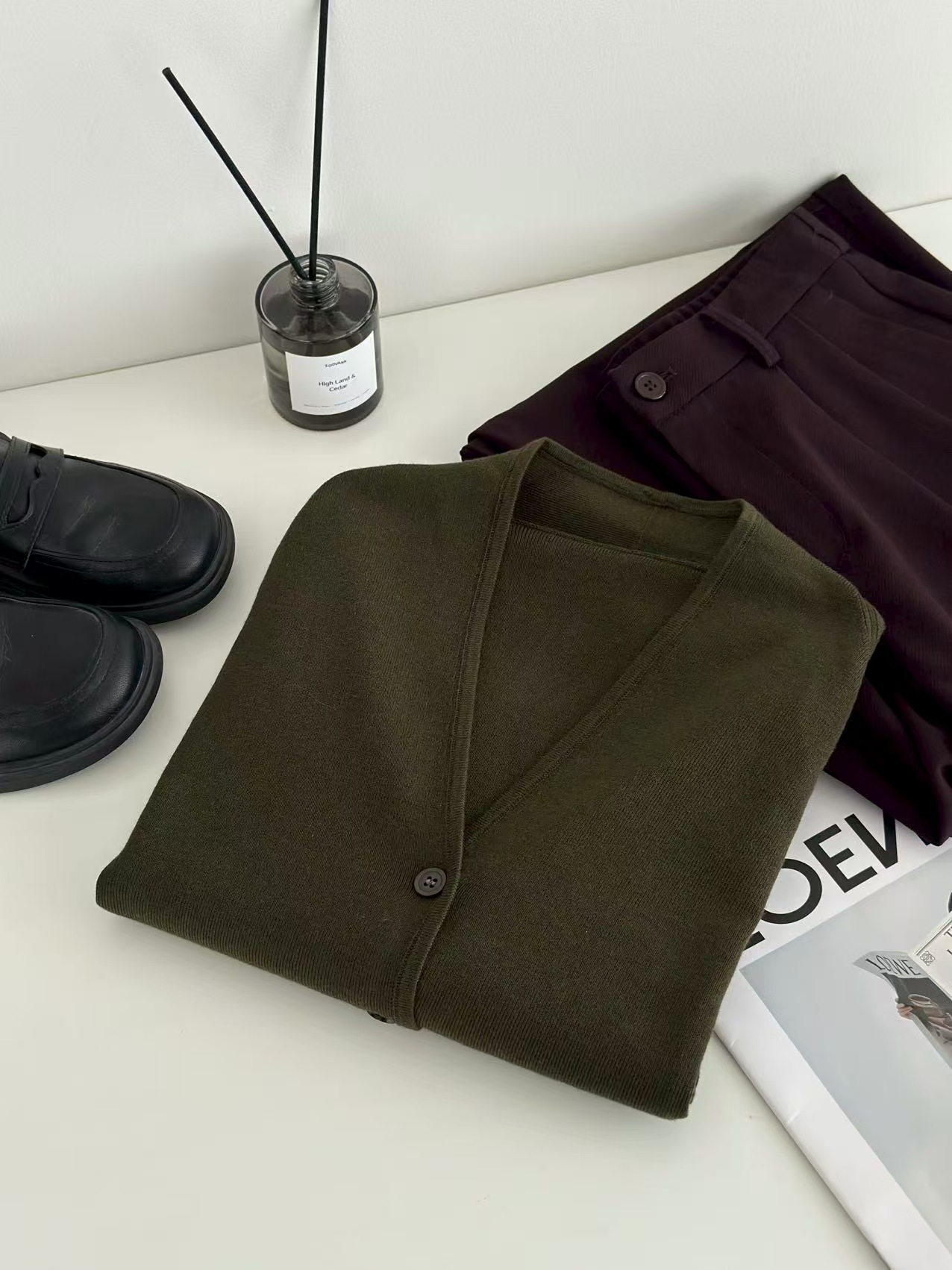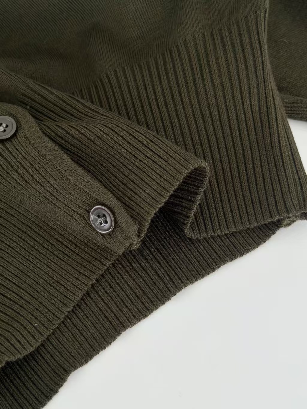 爆款3-7天发货!isabelle marran苔藓绿极简秋冬气质V领开衫JS3699034