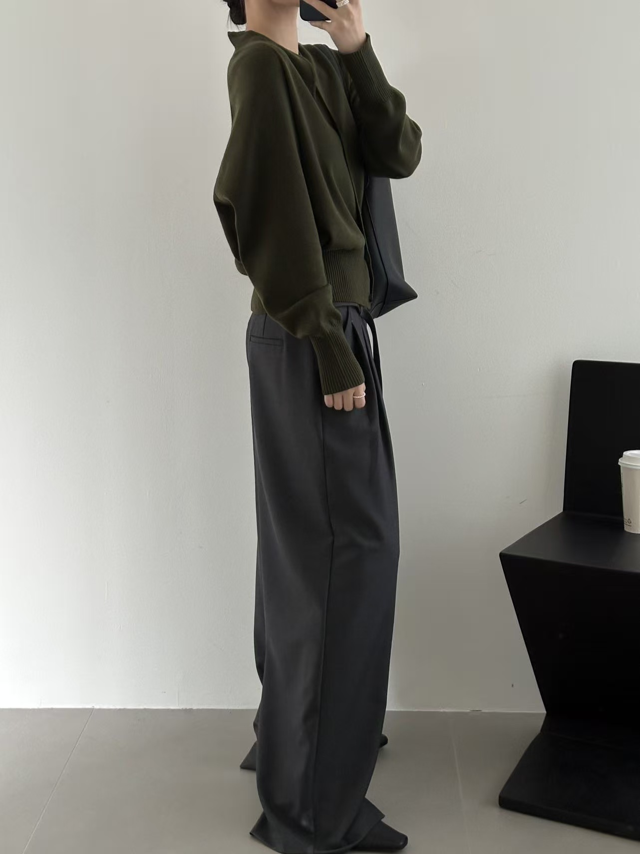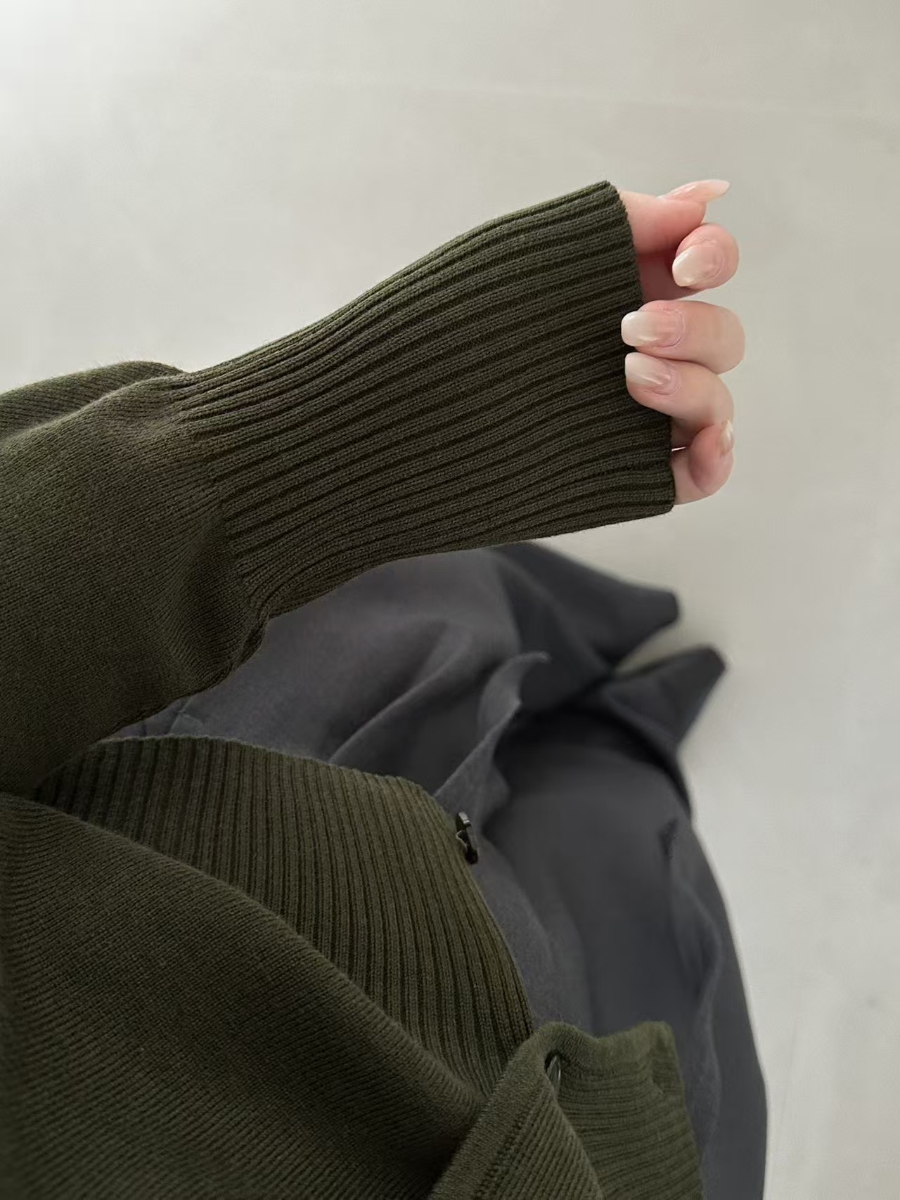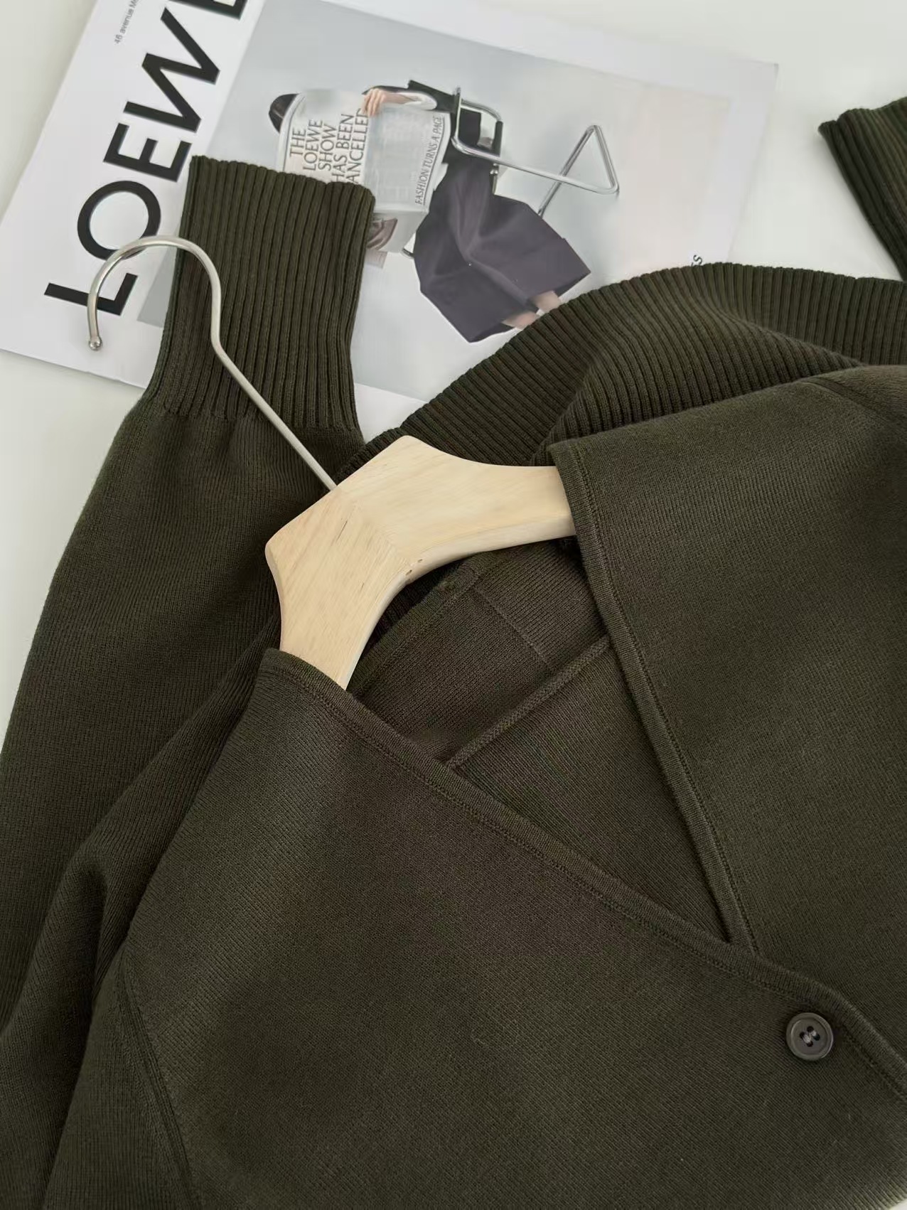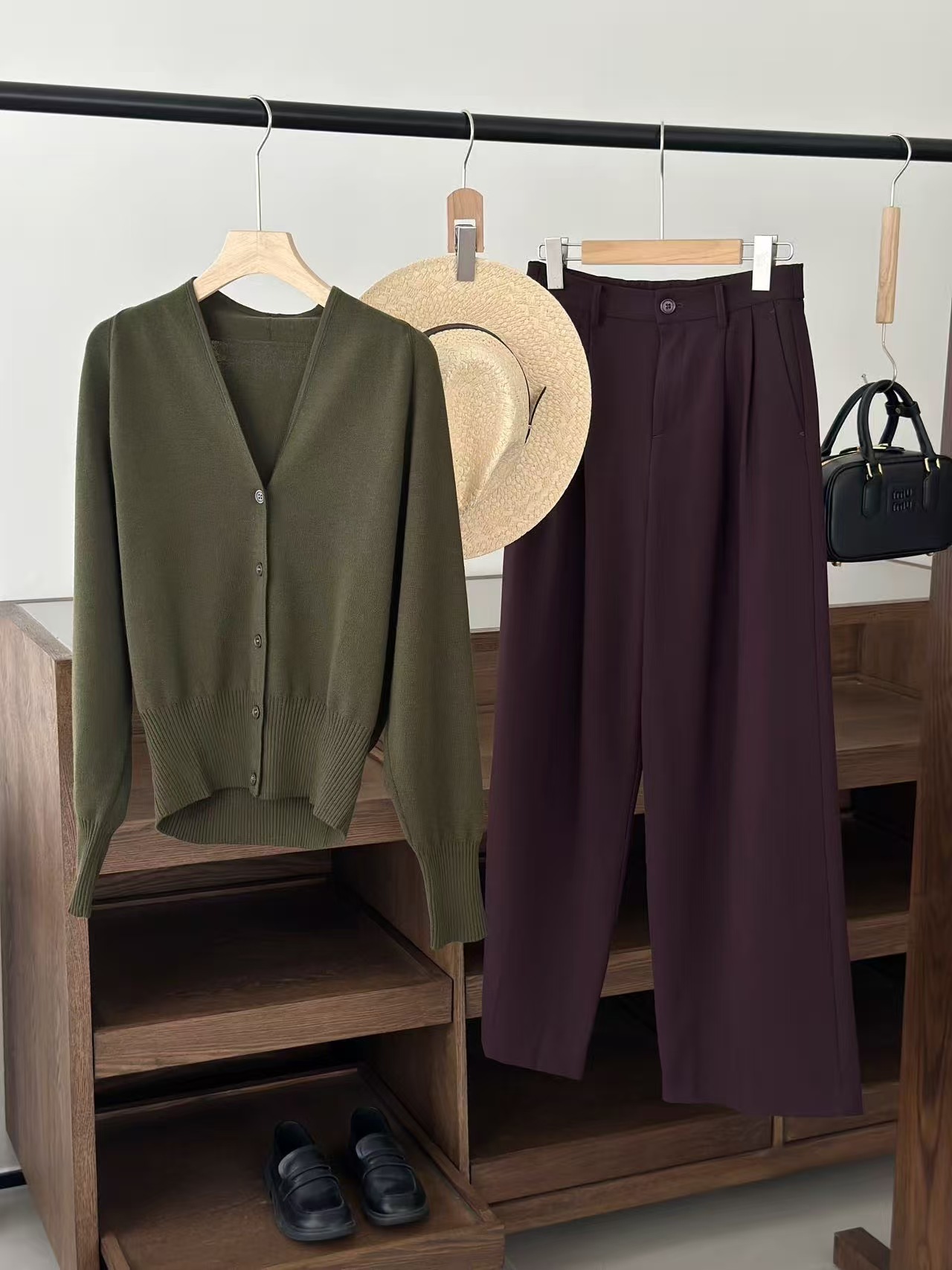爆款3-7天发货!isabelle marran苔藓绿极简秋冬气质V领开衫JS3699034