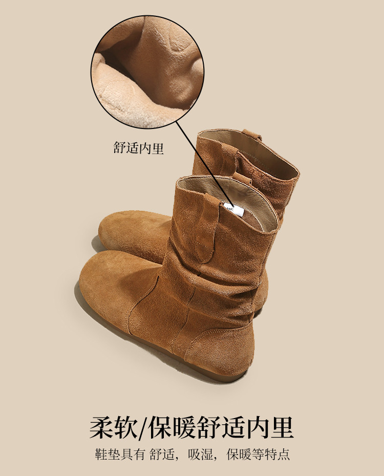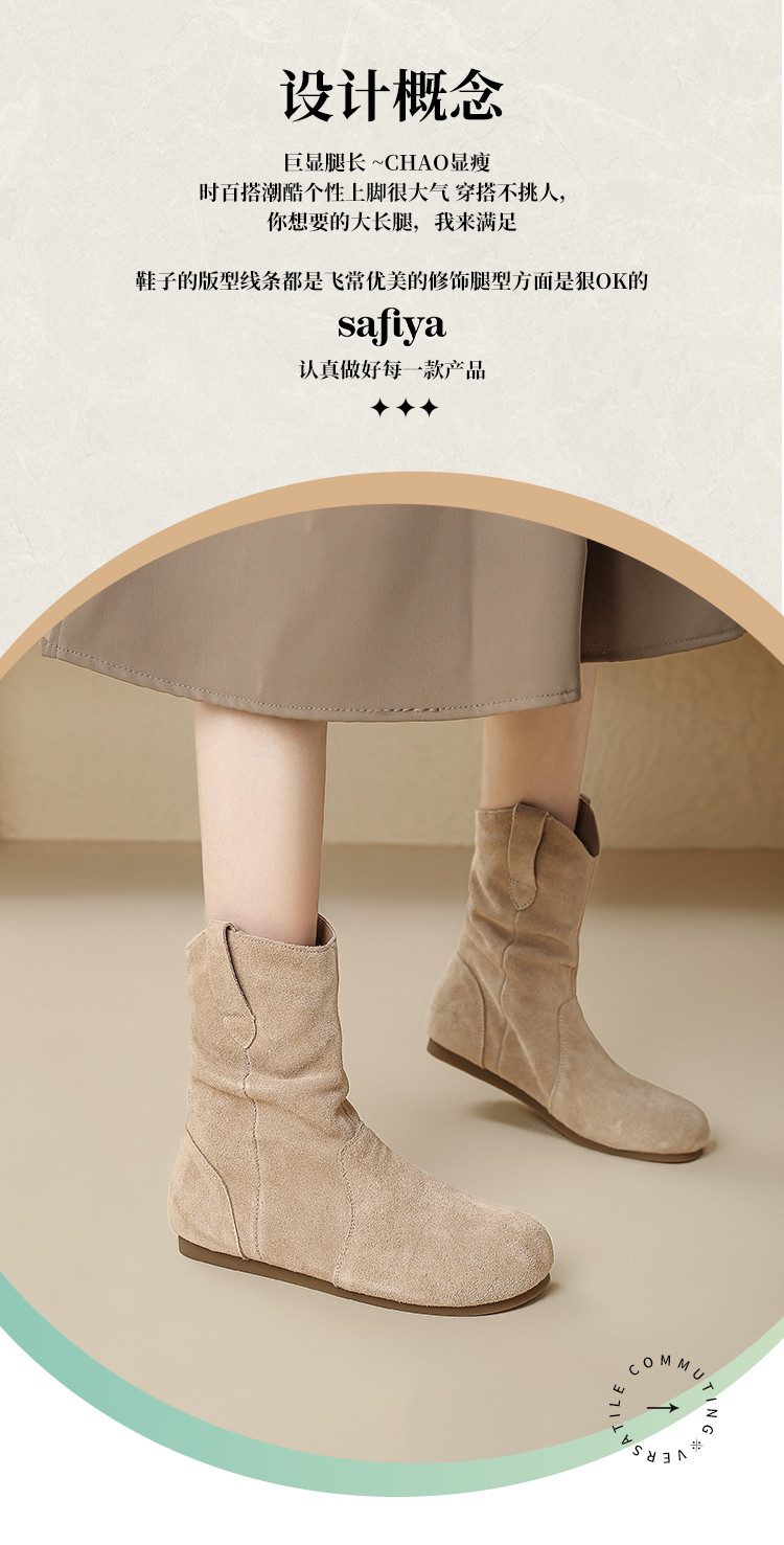 品质好货 | Safiya/索菲娅2024秋冬 复古反绒牛剖层革短筒堆堆勃肯靴 SF44118707