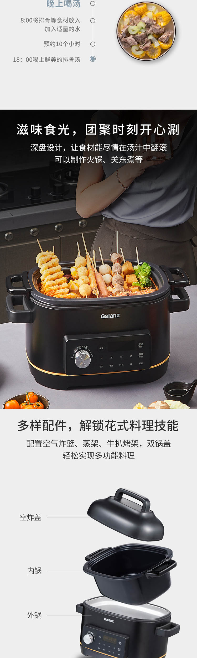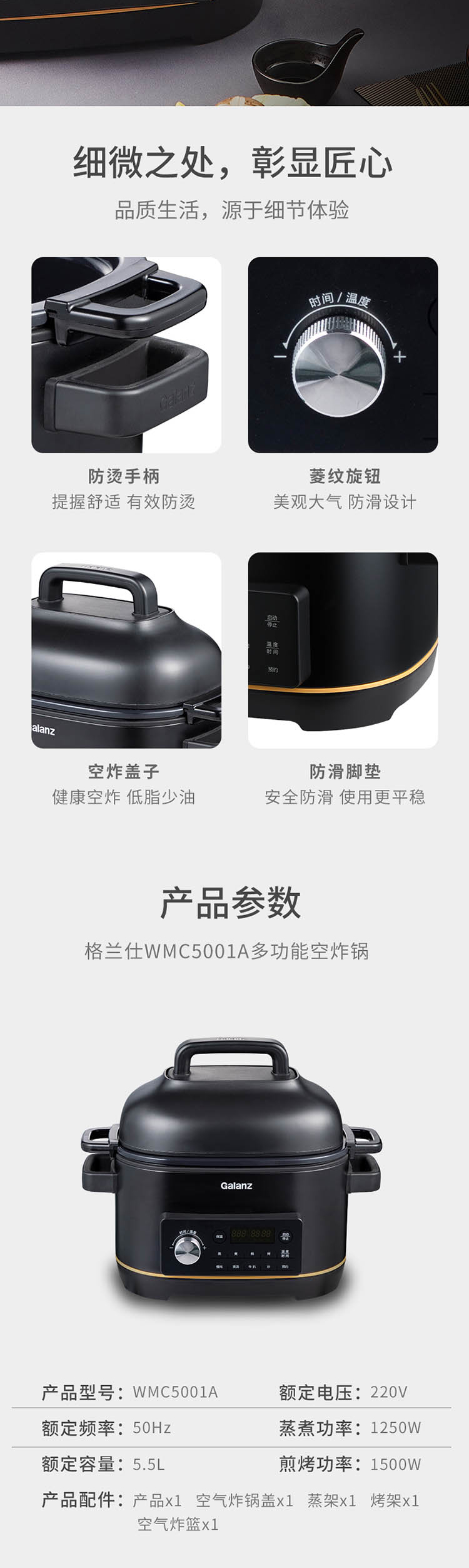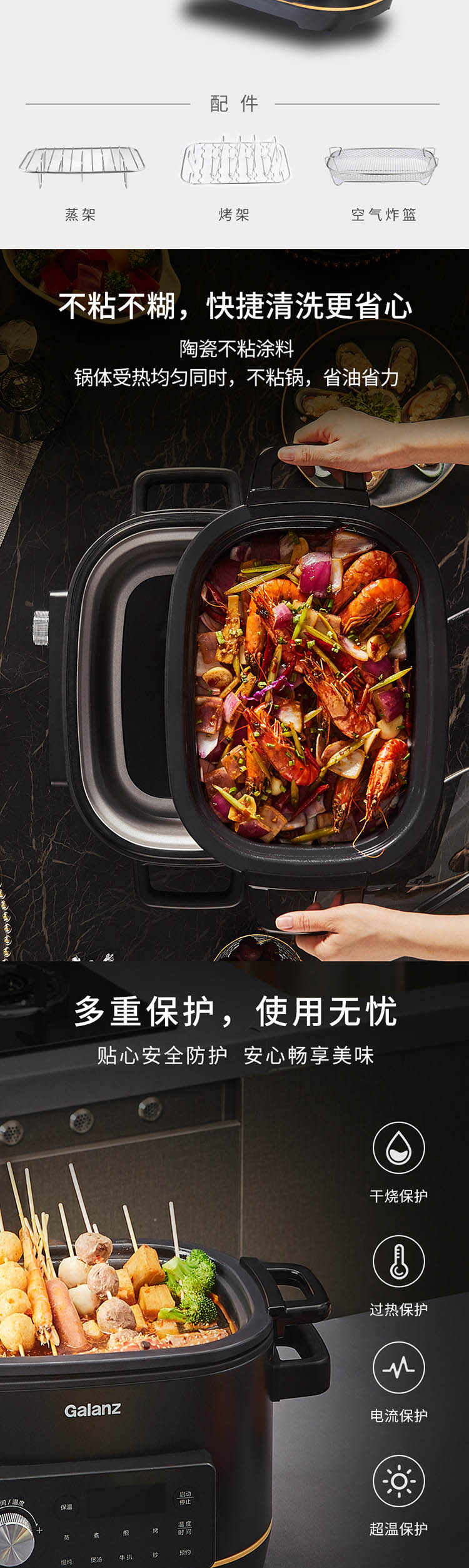 格兰仕黑金刚 多功能锅 多用途料理锅 不粘加深 家用电煎锅电炒锅电烧烤锅电火锅 WMC5001A