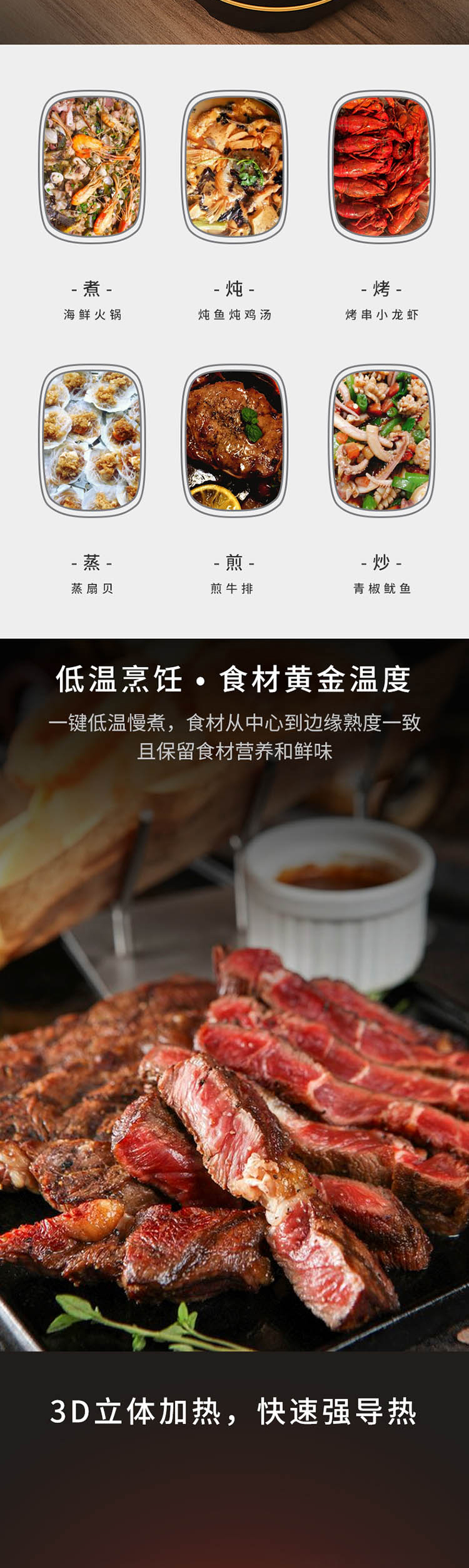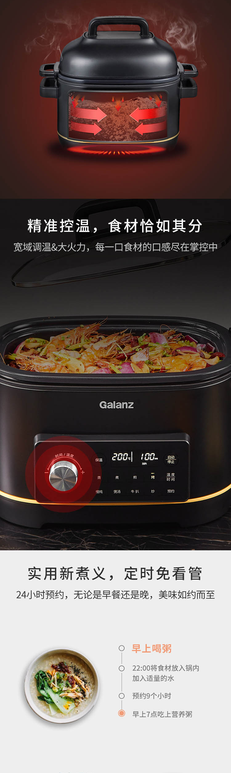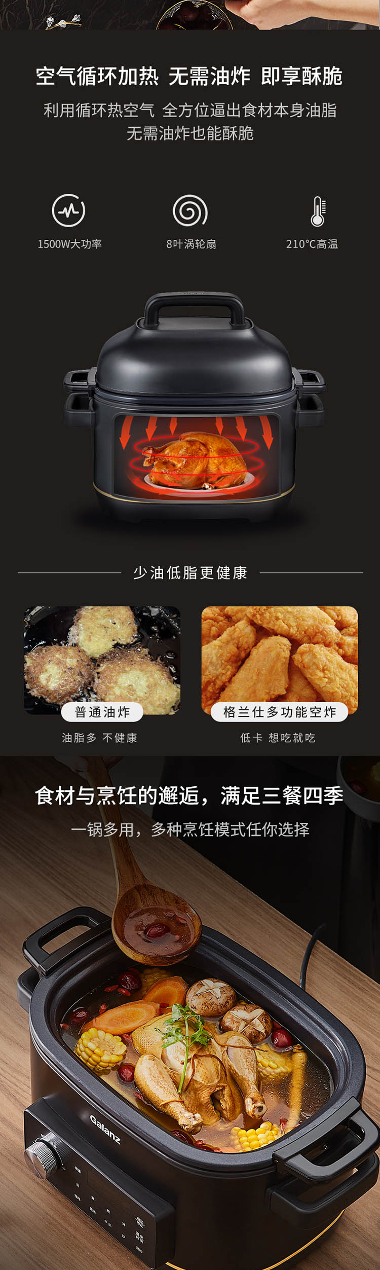 格兰仕黑金刚 多功能锅 多用途料理锅 不粘加深 家用电煎锅电炒锅电烧烤锅电火锅 WMC5001A