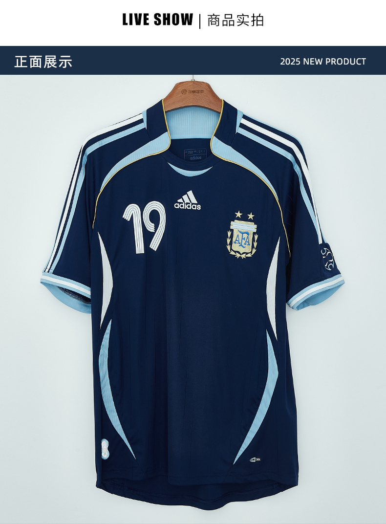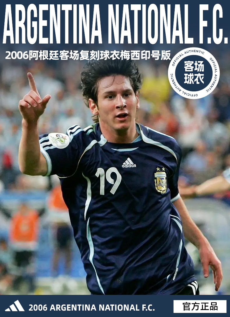 SFS阿迪达斯2006阿根廷复刻客场梅西印号球衣短袖足球服男 JN3709