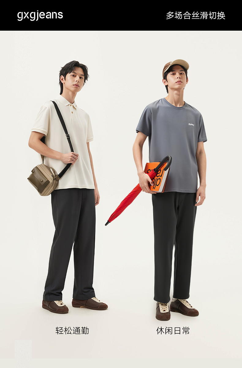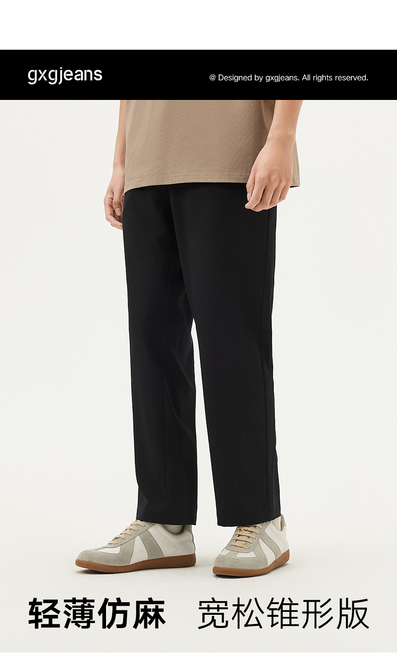 gxg.jeans男装 黑色简约通勤西裤宽松锥形休闲长裤男 25年夏热卖