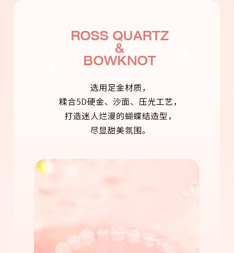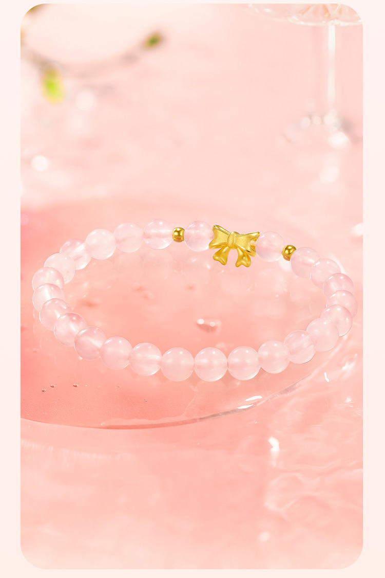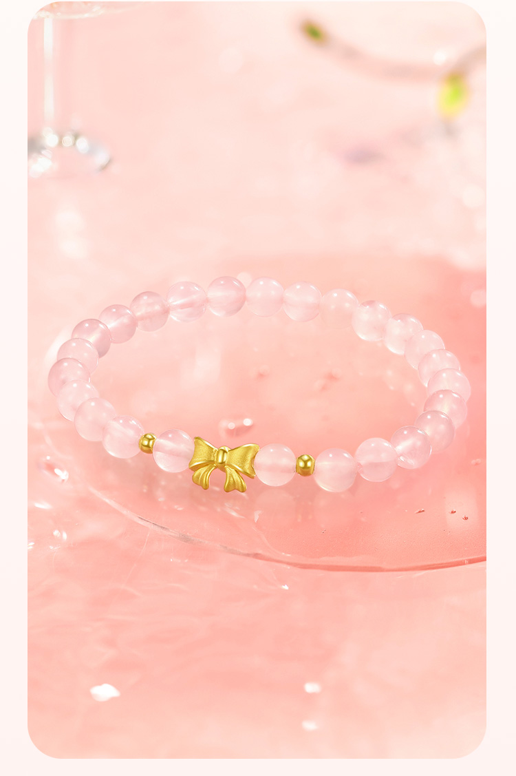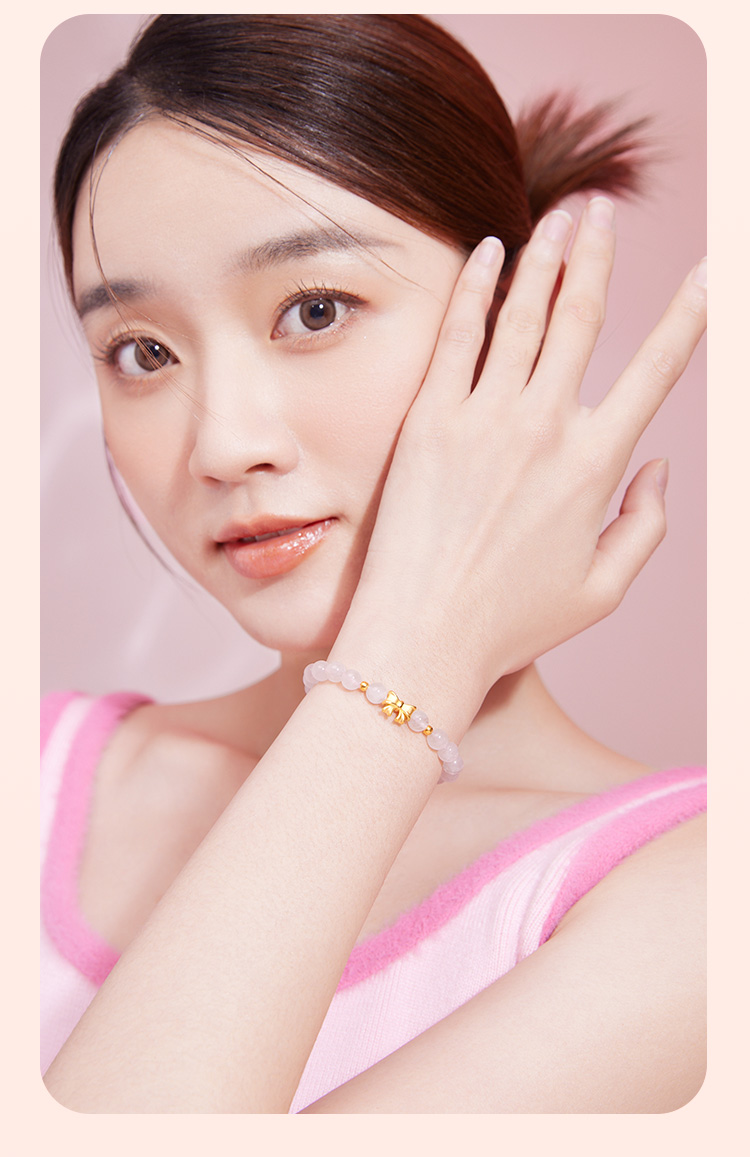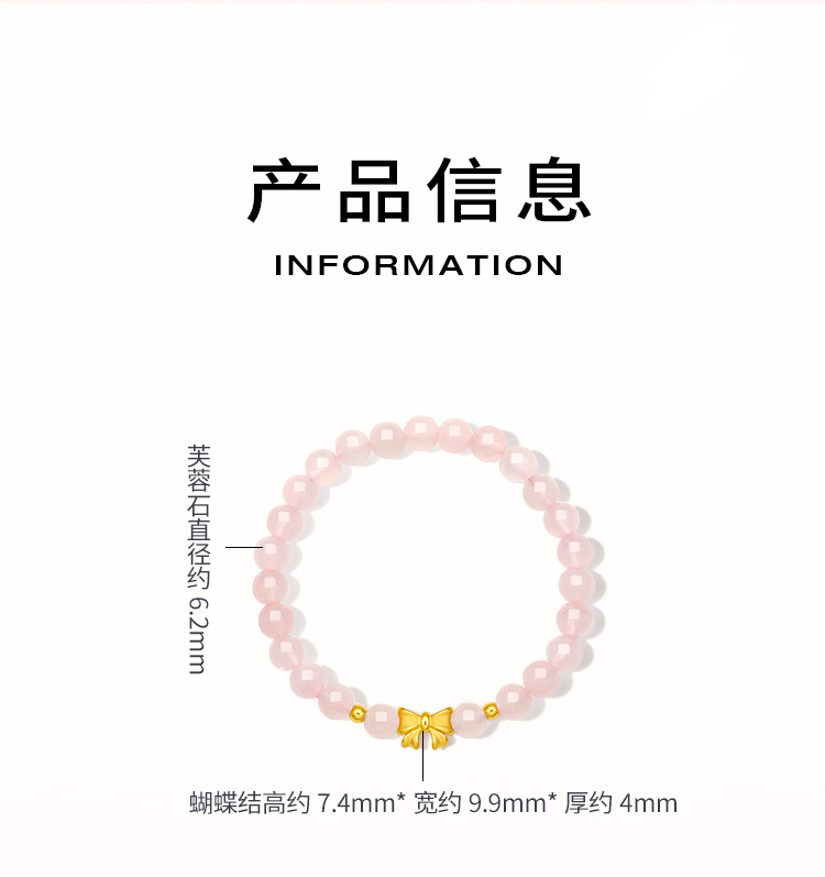 周六福黄金小蝴蝶结手链女足金芙蓉石甜美少女手串送女友礼物