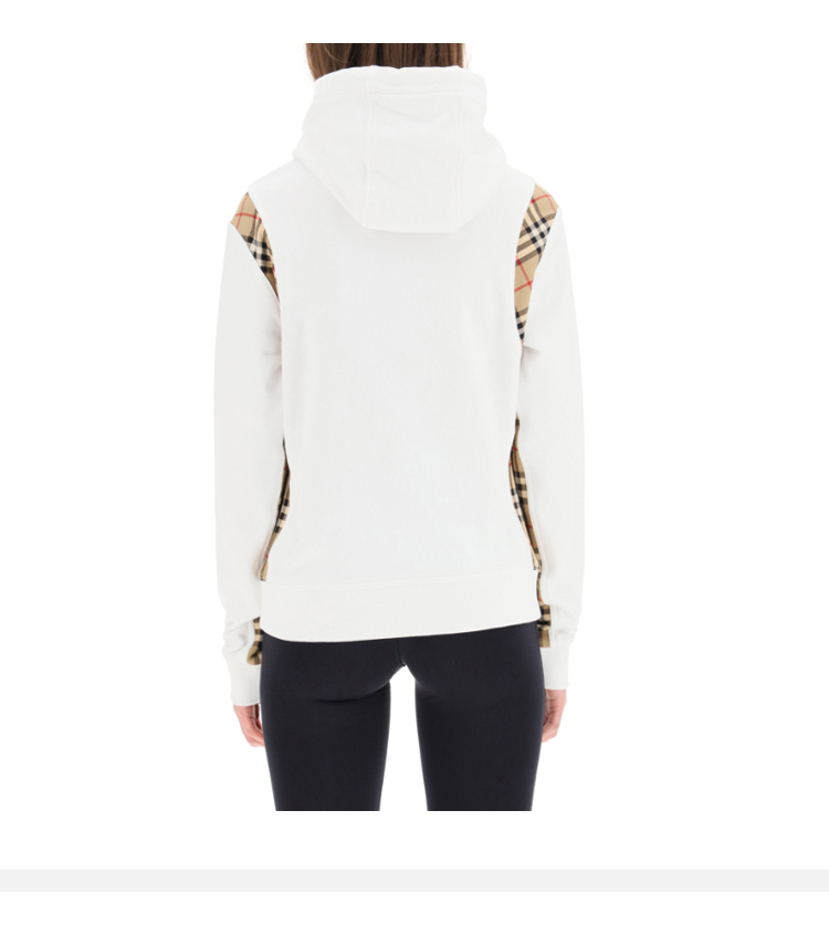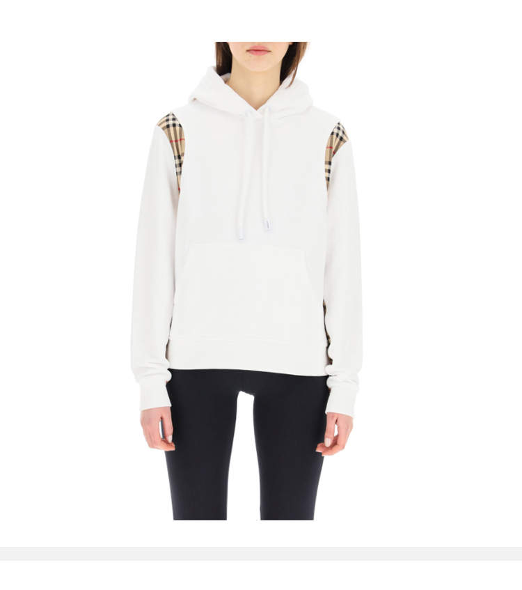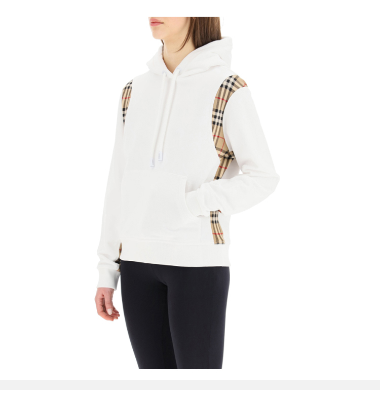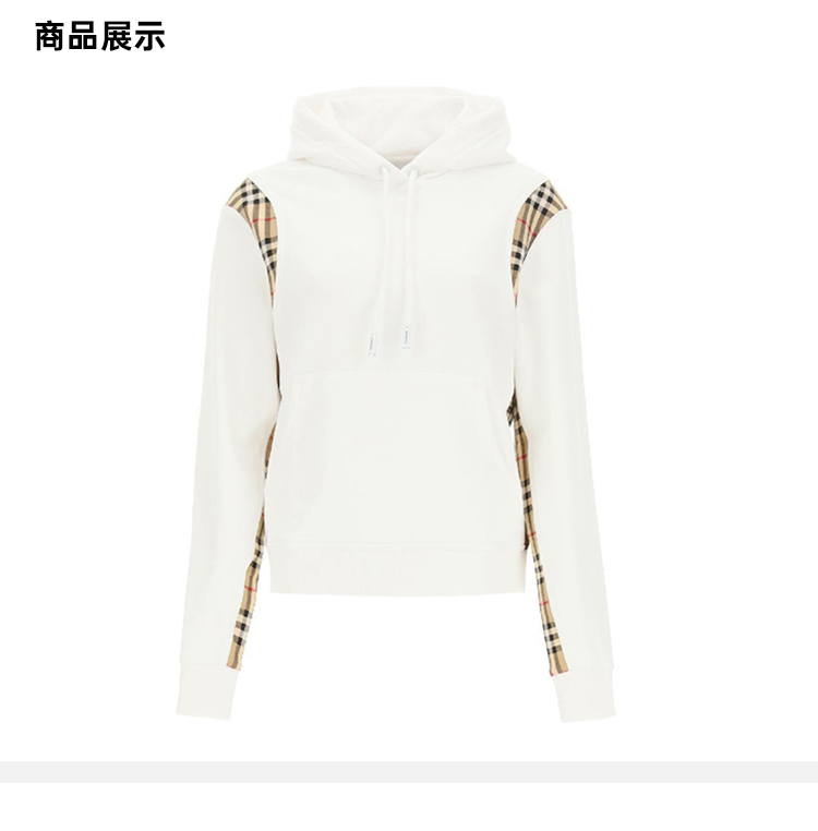 BURBERRY 巴宝莉 女士 Vintage 格纹裁片棉质宽松连帽卫衣 白色 8032129 A1464