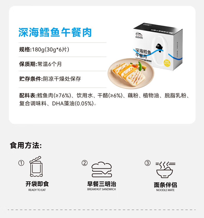 【分仓直发包邮】深海鳕鱼午餐肉180g*2盒