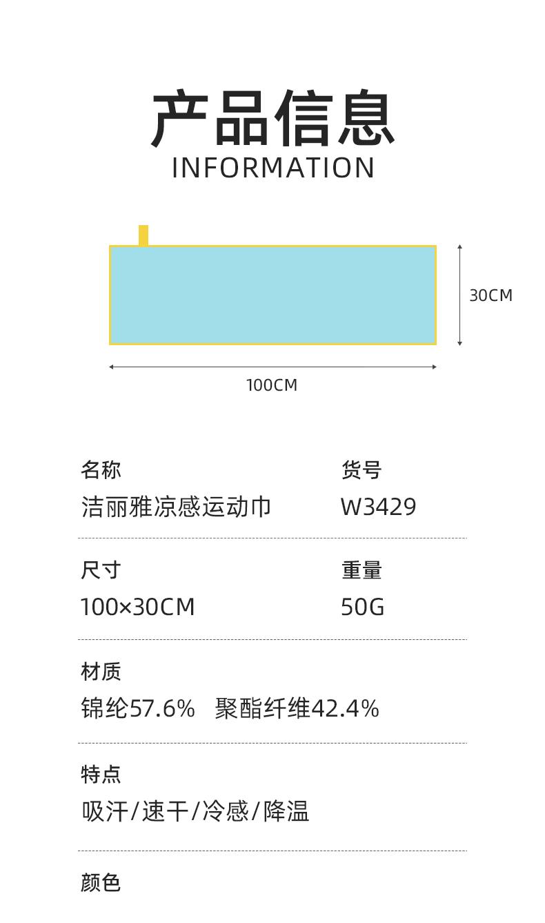 洁丽雅冷感运动毛巾男吸汗健身房擦汗羽毛球篮球跑步吸汗吸水便携