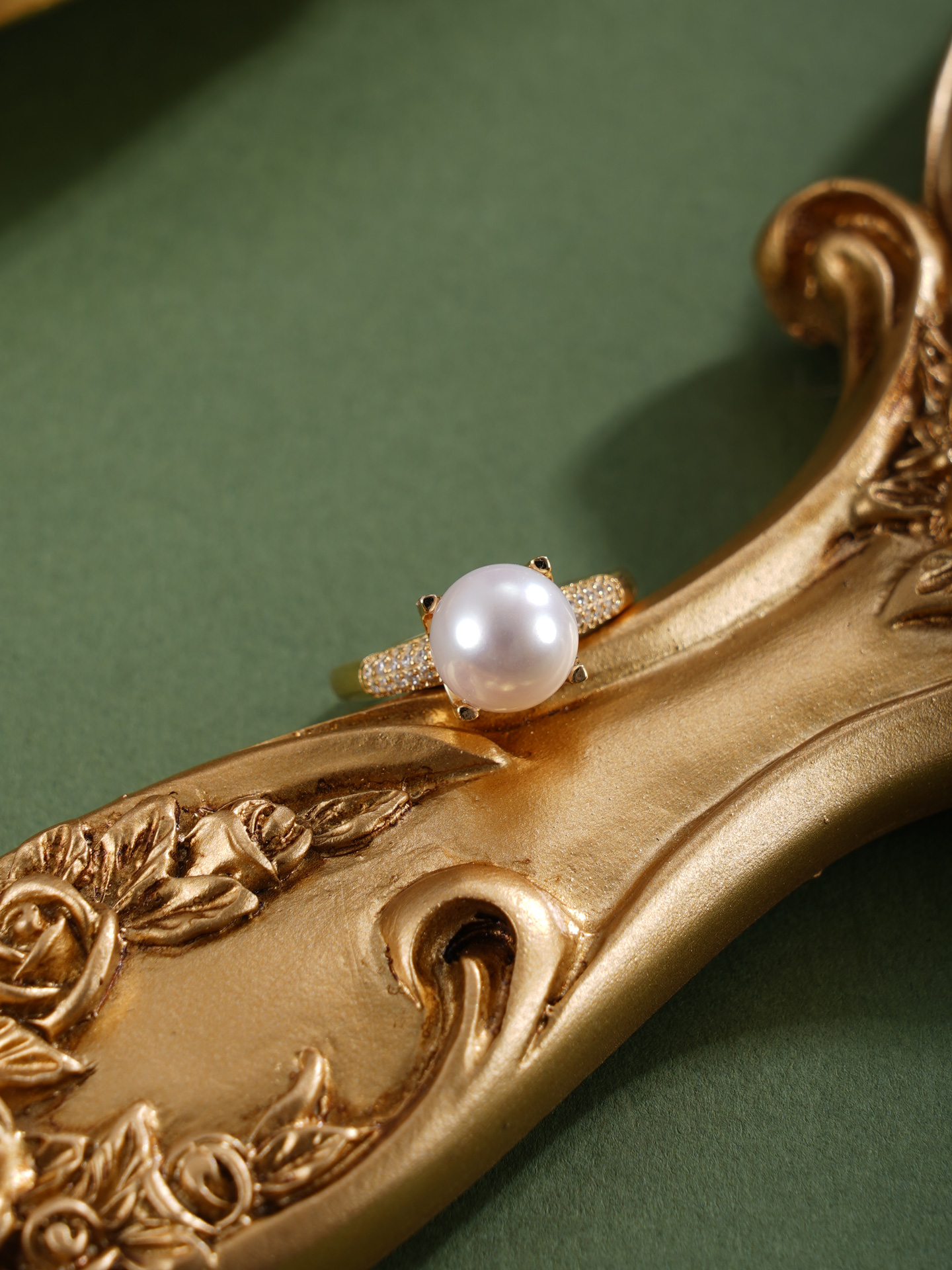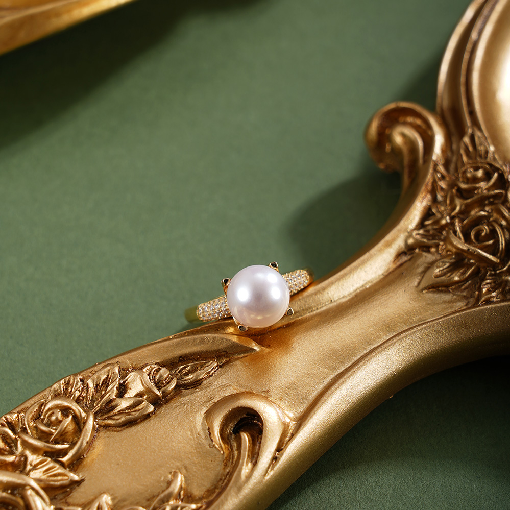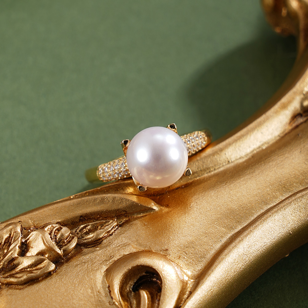 子佩集【情定夕颜】银S925珍珠惜王妃戒指【R1764】8.5mm珠镀金一字2601