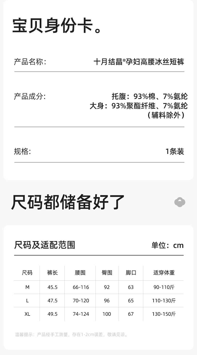【100元3件随心配】(买6件加赠帆布包) 孕妇高腰冰丝短裤