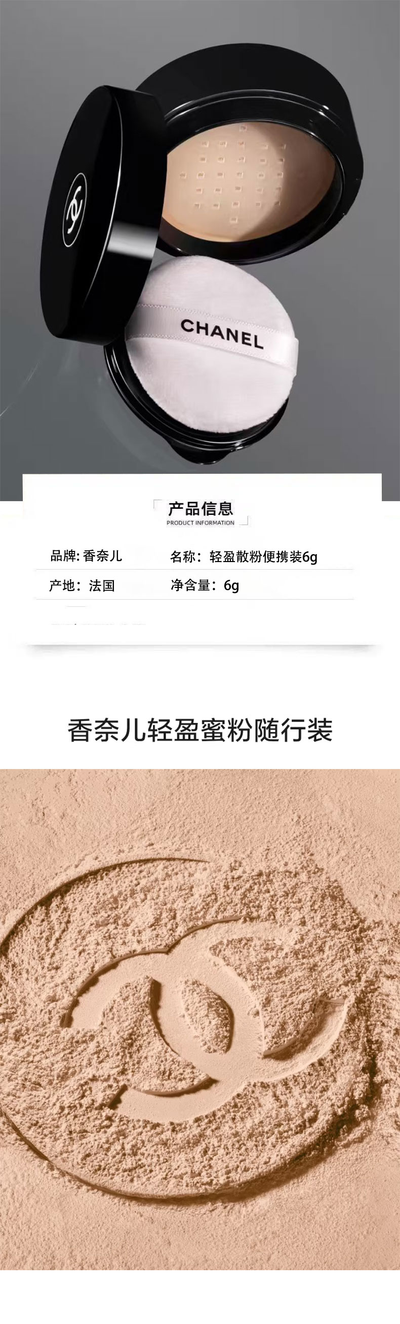 【品牌】:CHANEL 香奈儿 【商品名称】: CHANEL 香奈儿 轻盈散粉便携装6g 新版 香港直邮 【规格】:#10-透明色 #12-柔粉色 #20-浅肤色 【产地】:法国(以实际收到为准) 【批次/限用日期】:有效期2027-12 【注!!!】批次更新较快,具体以实收批次日期为准 【版本】:免税版 【包装方式】:单独 无塑封 【快递】:韵达快递 【发货地】:香港 【运费模板】: 新疆,宁夏,内蒙古,甘肃+5,其他地区包邮 【不发货地区】:港澳台 西藏 【发货时效】:72小时 【售后政策】:支持七天无理由退换(不影响二次销售的基础上) |