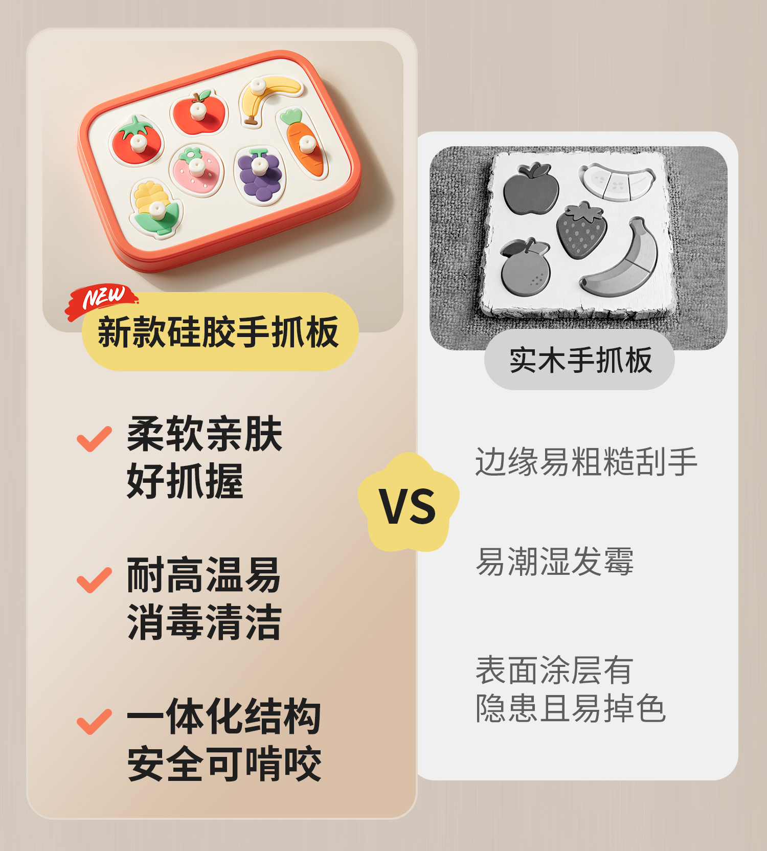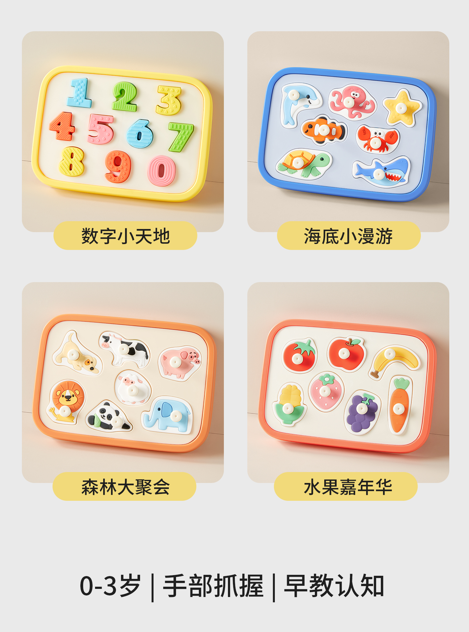 【科巢】硅胶手抓板儿童益智玩具0-3岁宝宝蒙氏早教婴儿拼图形状配对