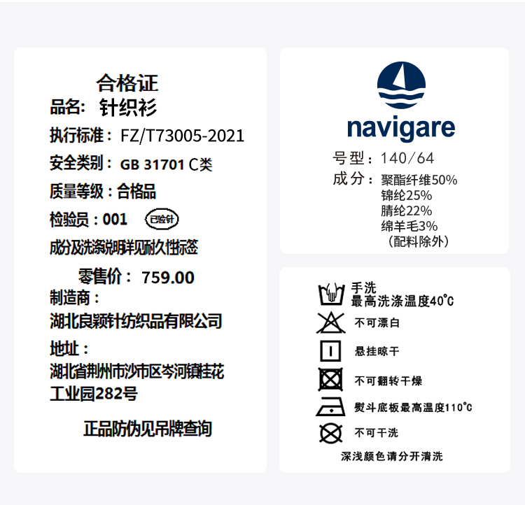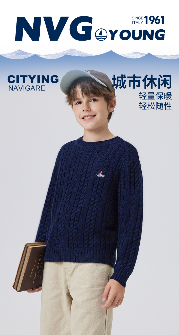 【纳维凯尔】【120-170】Navigare意大利小帆船毛衣男童麻花针织衫