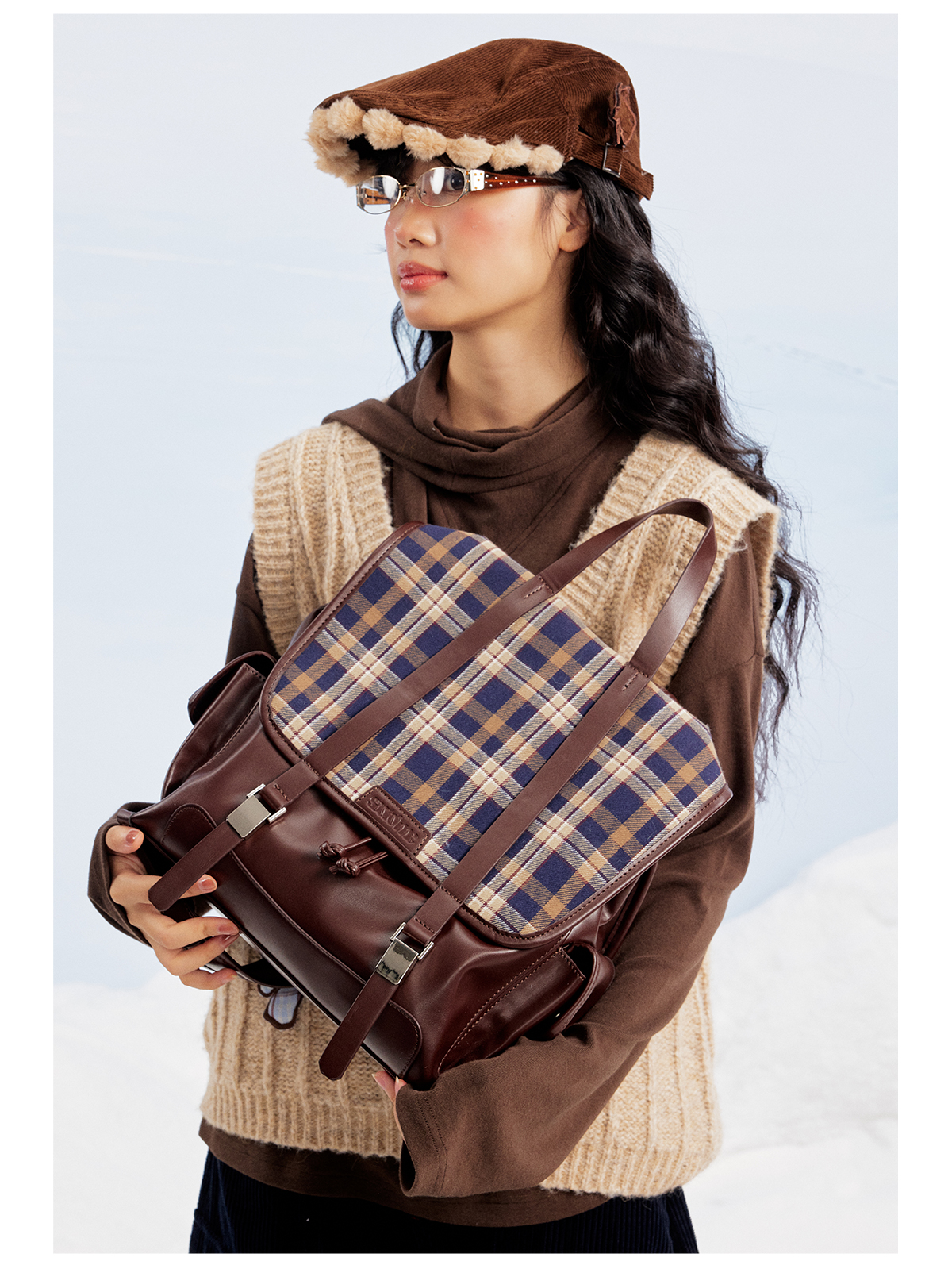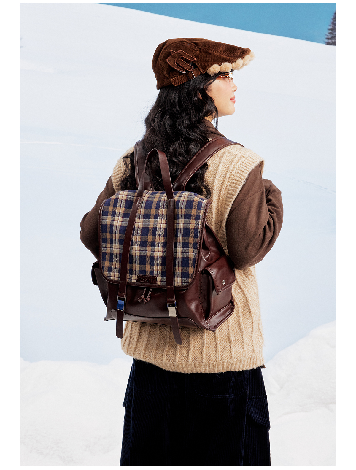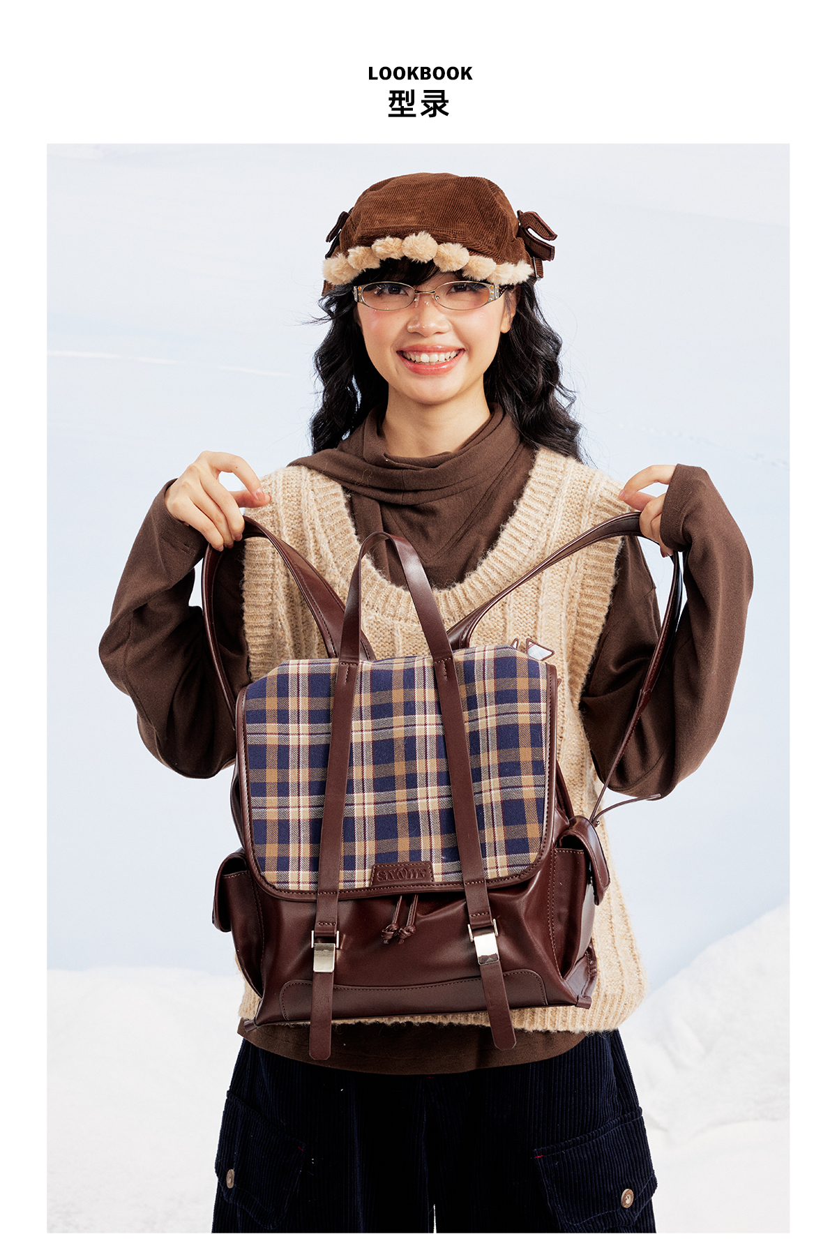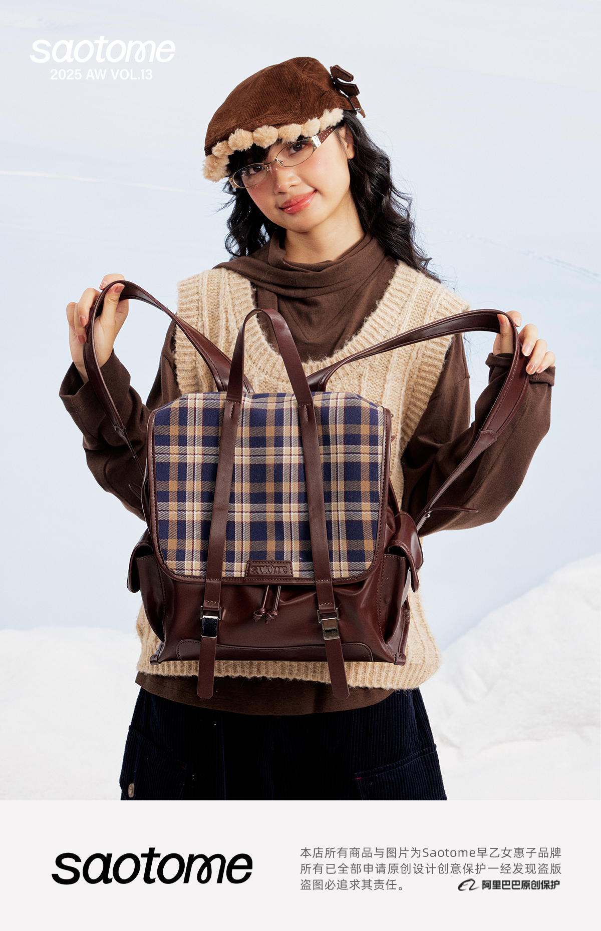 早乙女惠子saotome/STMPSBB14738/格纹皮双肩包
