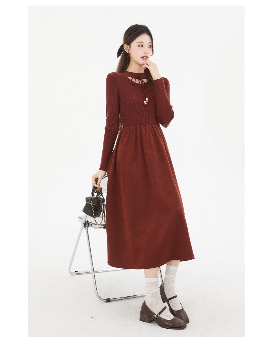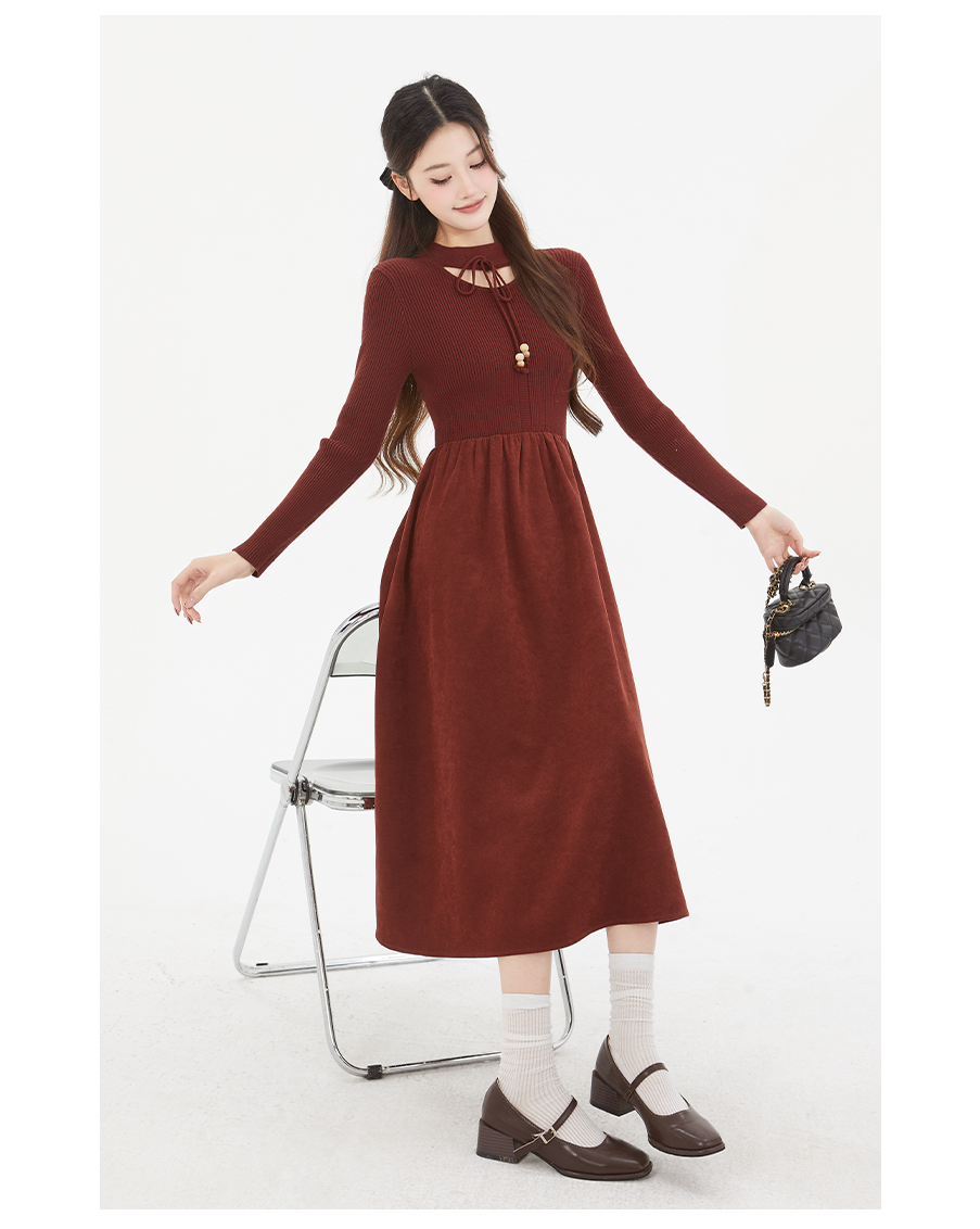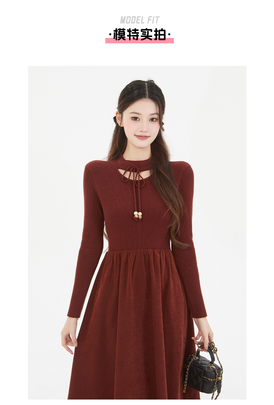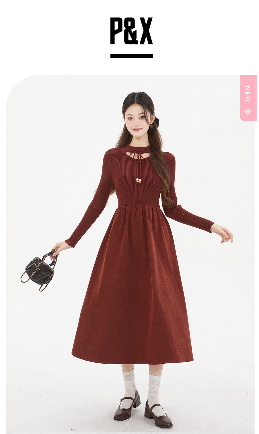 P&X设计师女装春季针织镂空设计感连衣长裙825108090 红色