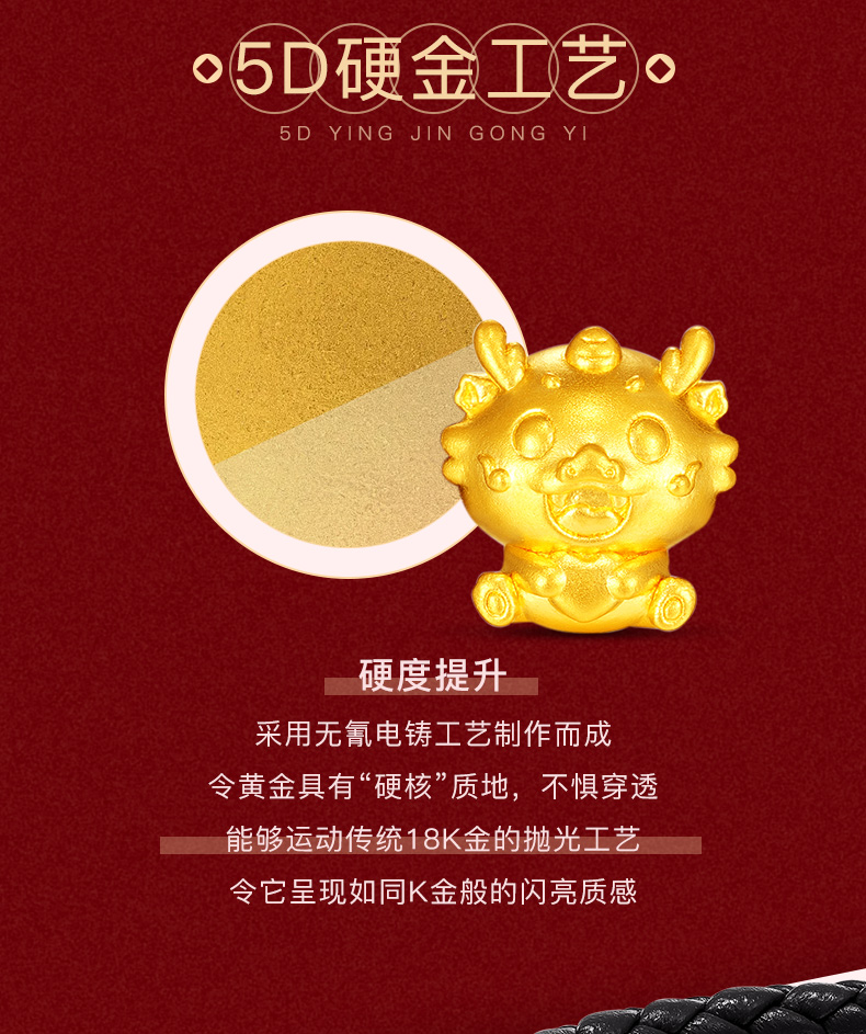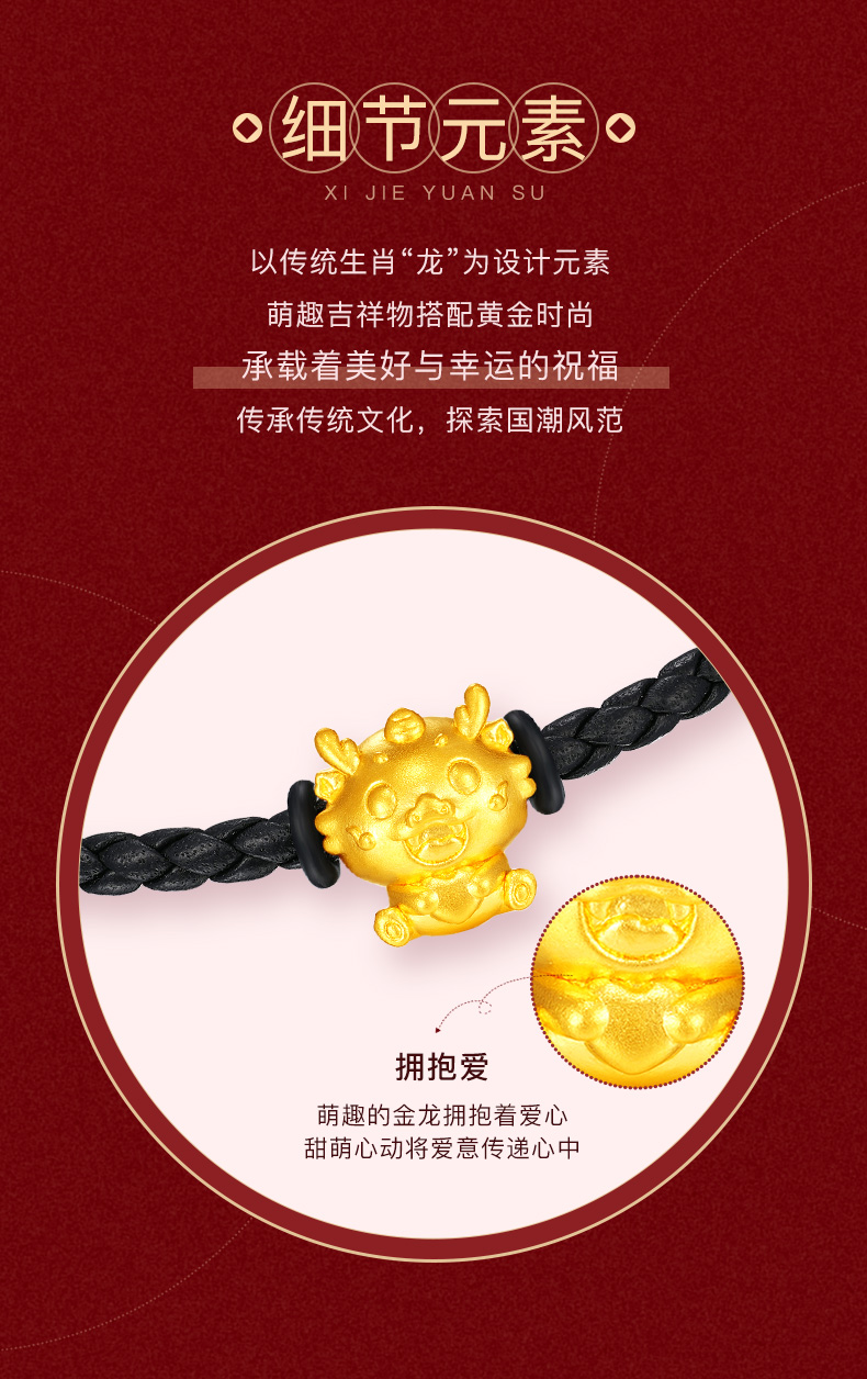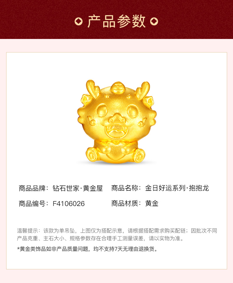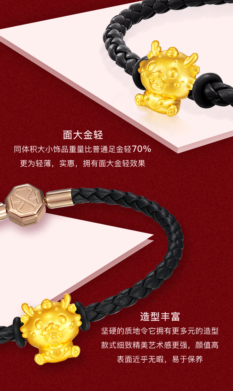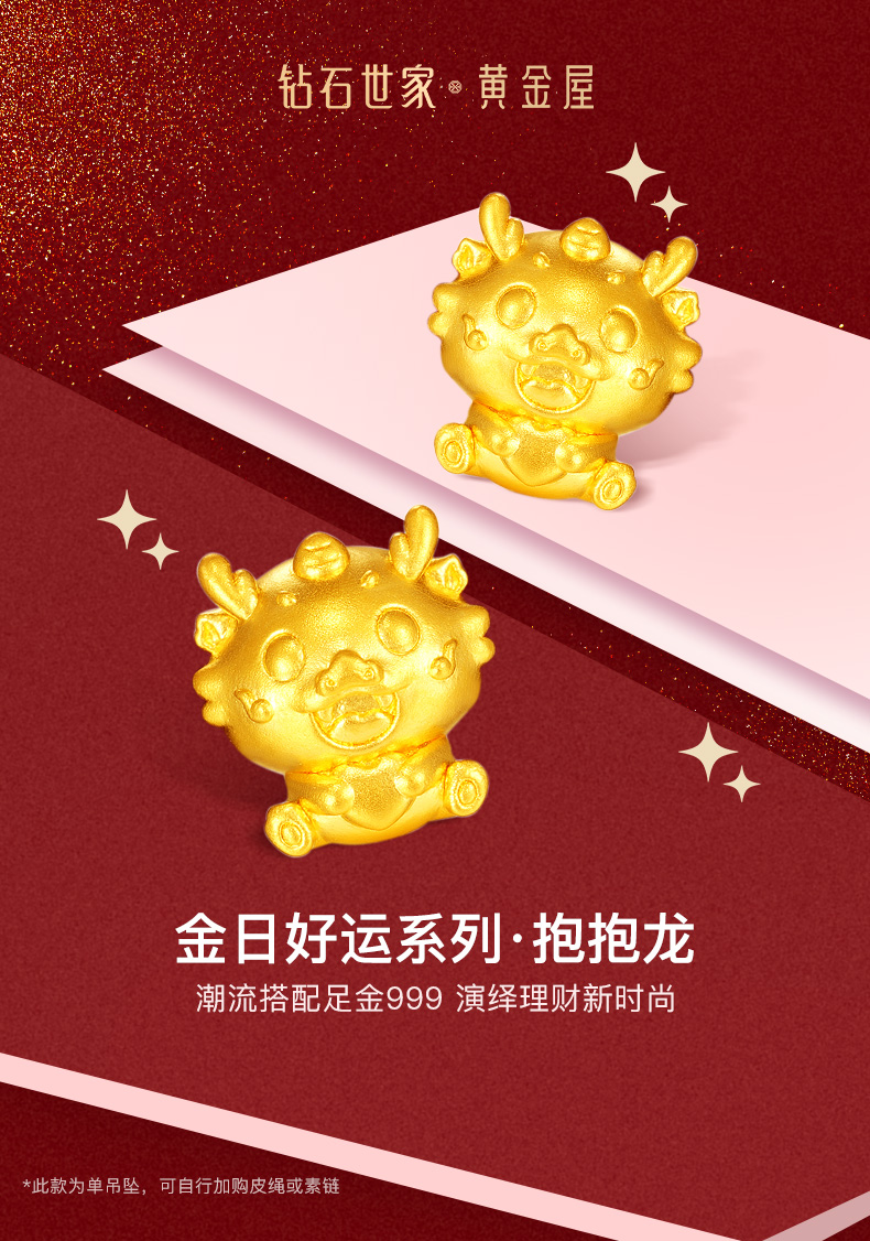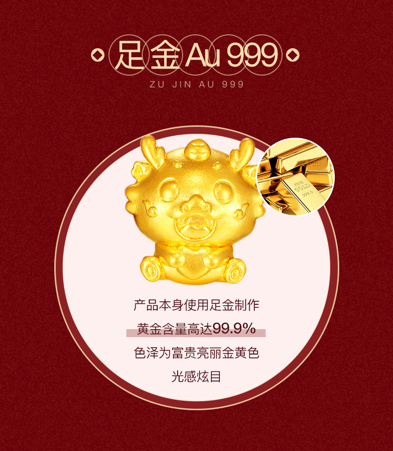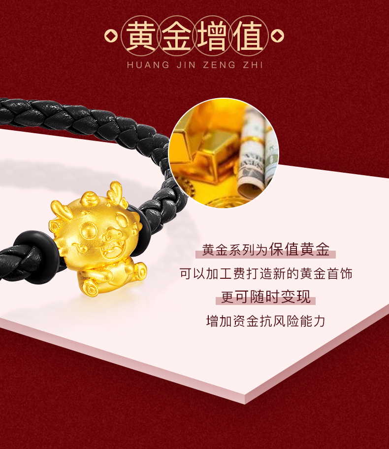 【定价黄金】【限时8折】【现货】钻石世家 生肖龙足金黄金串珠吊坠
