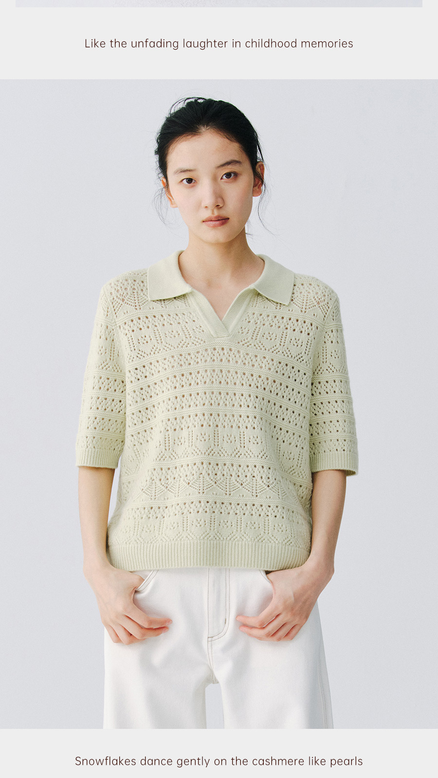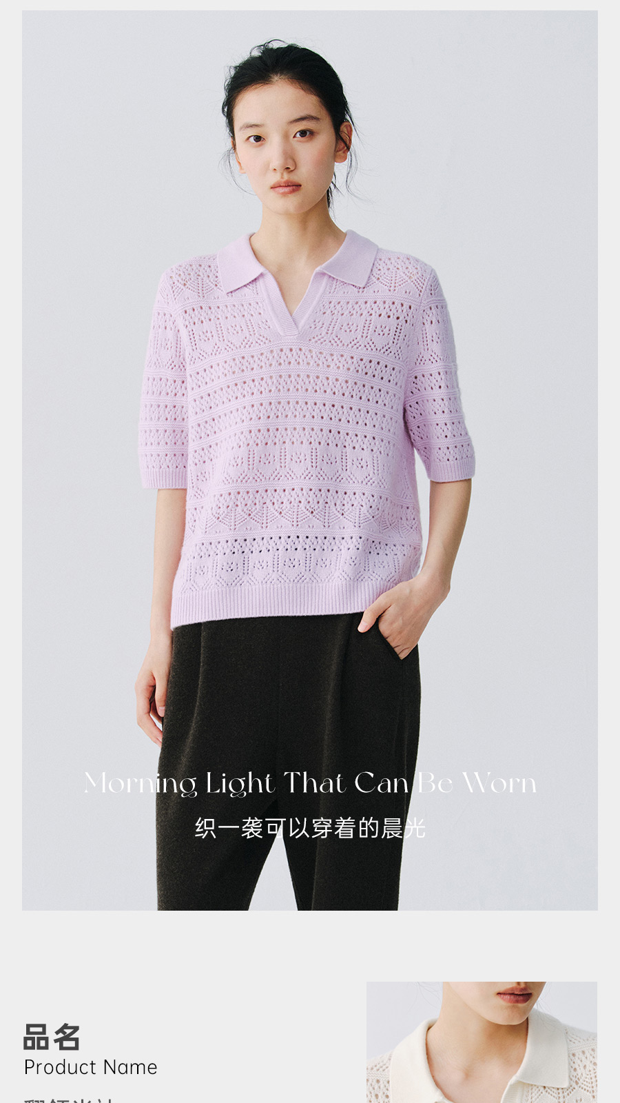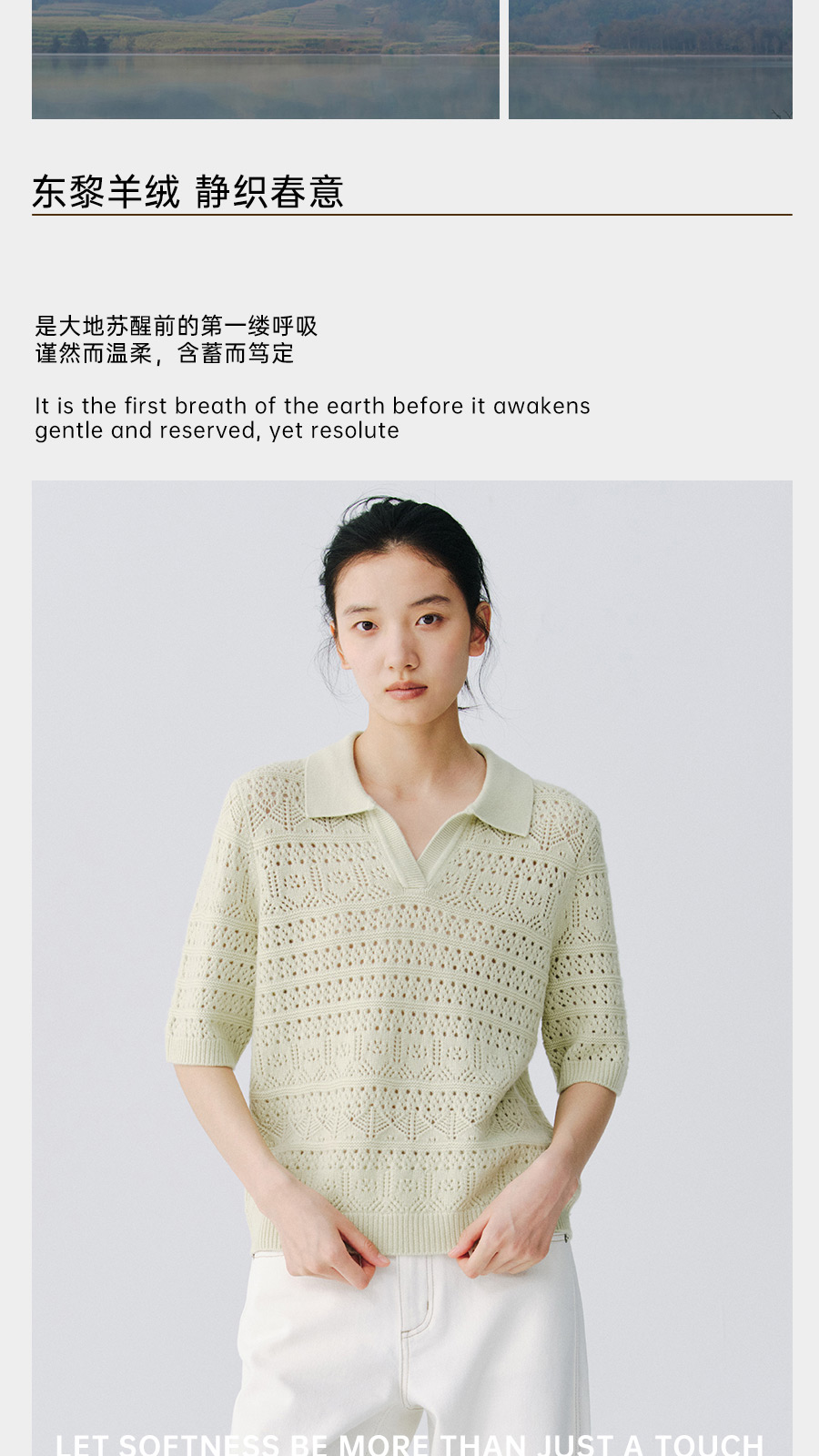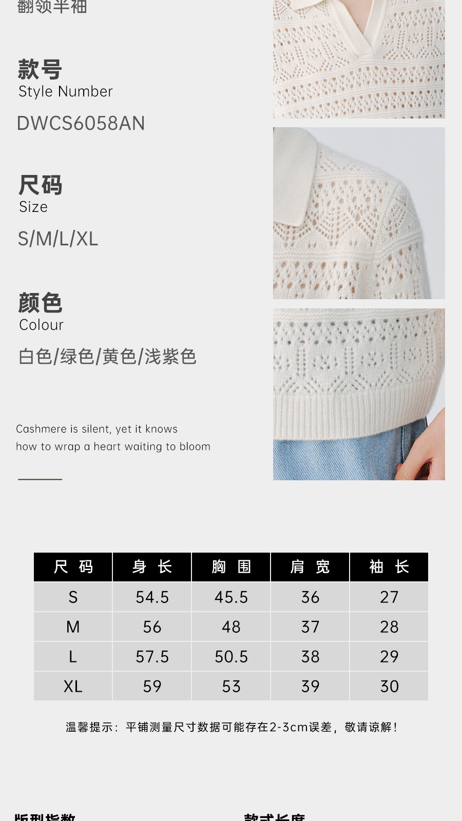 东黎 • 复苏的呼吸 山羊绒女士镂空多色翻领半袖 6058