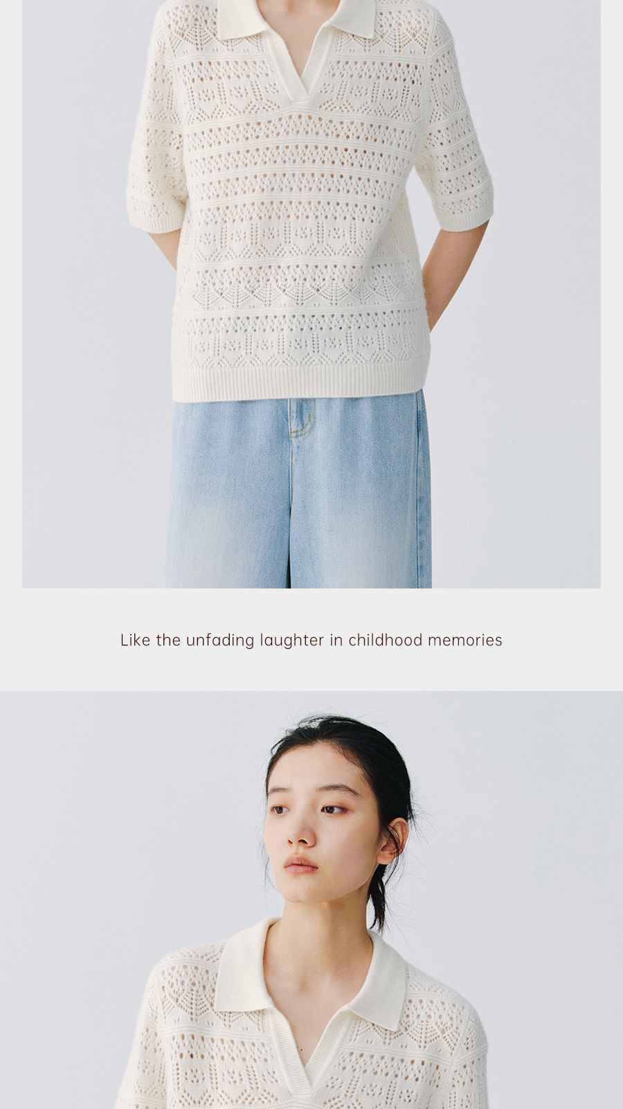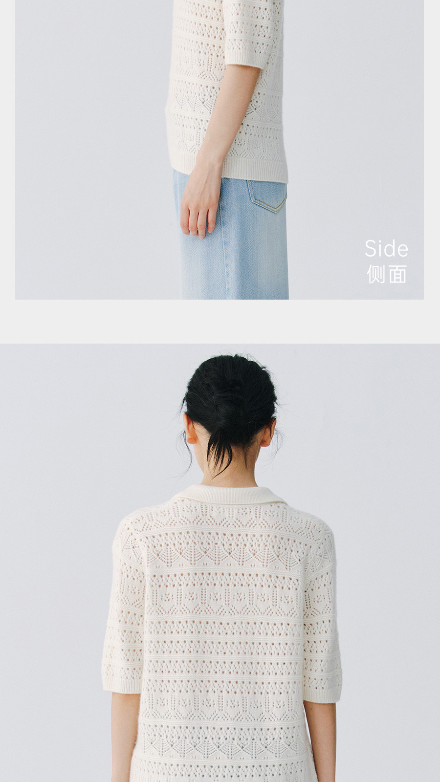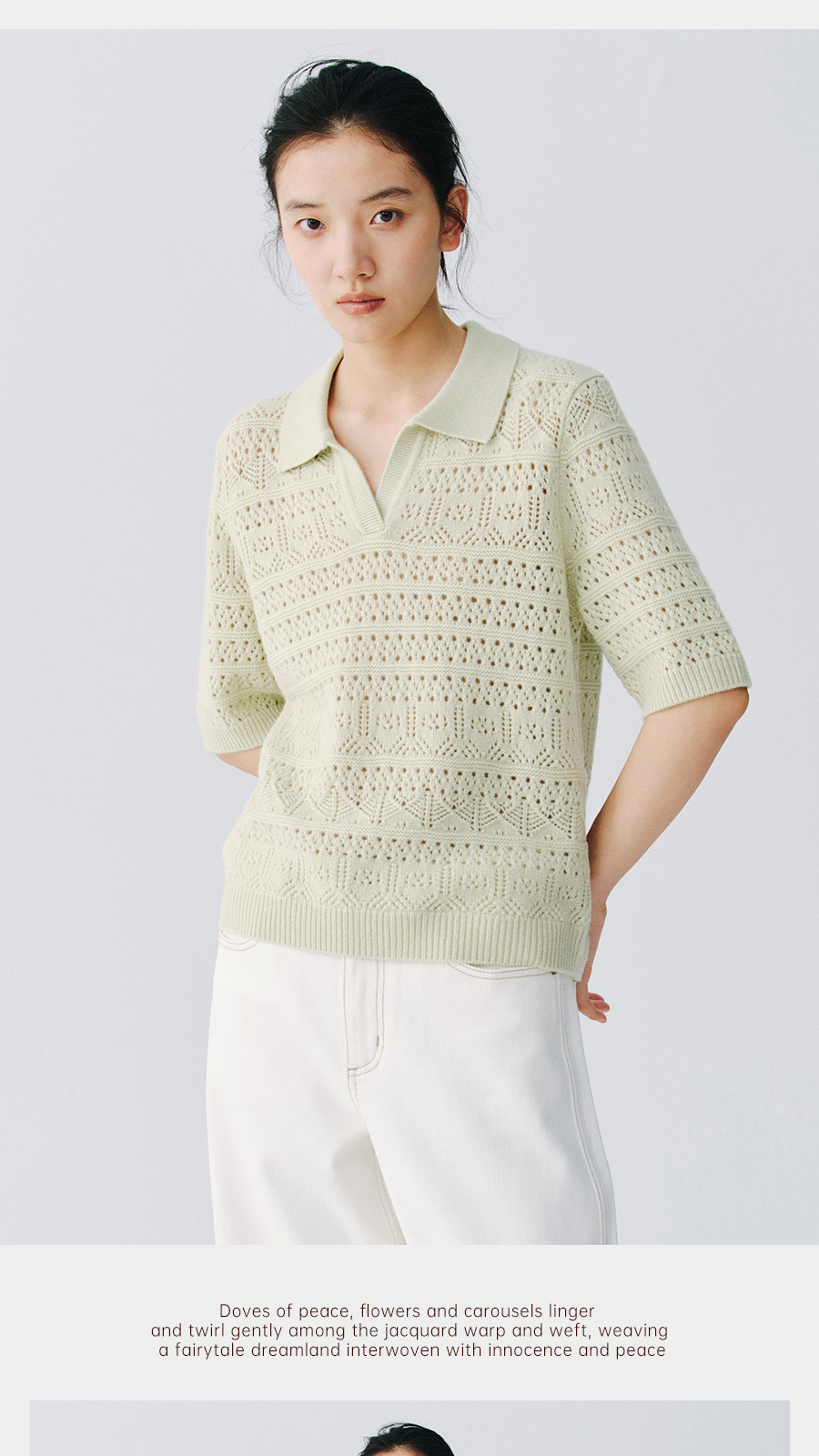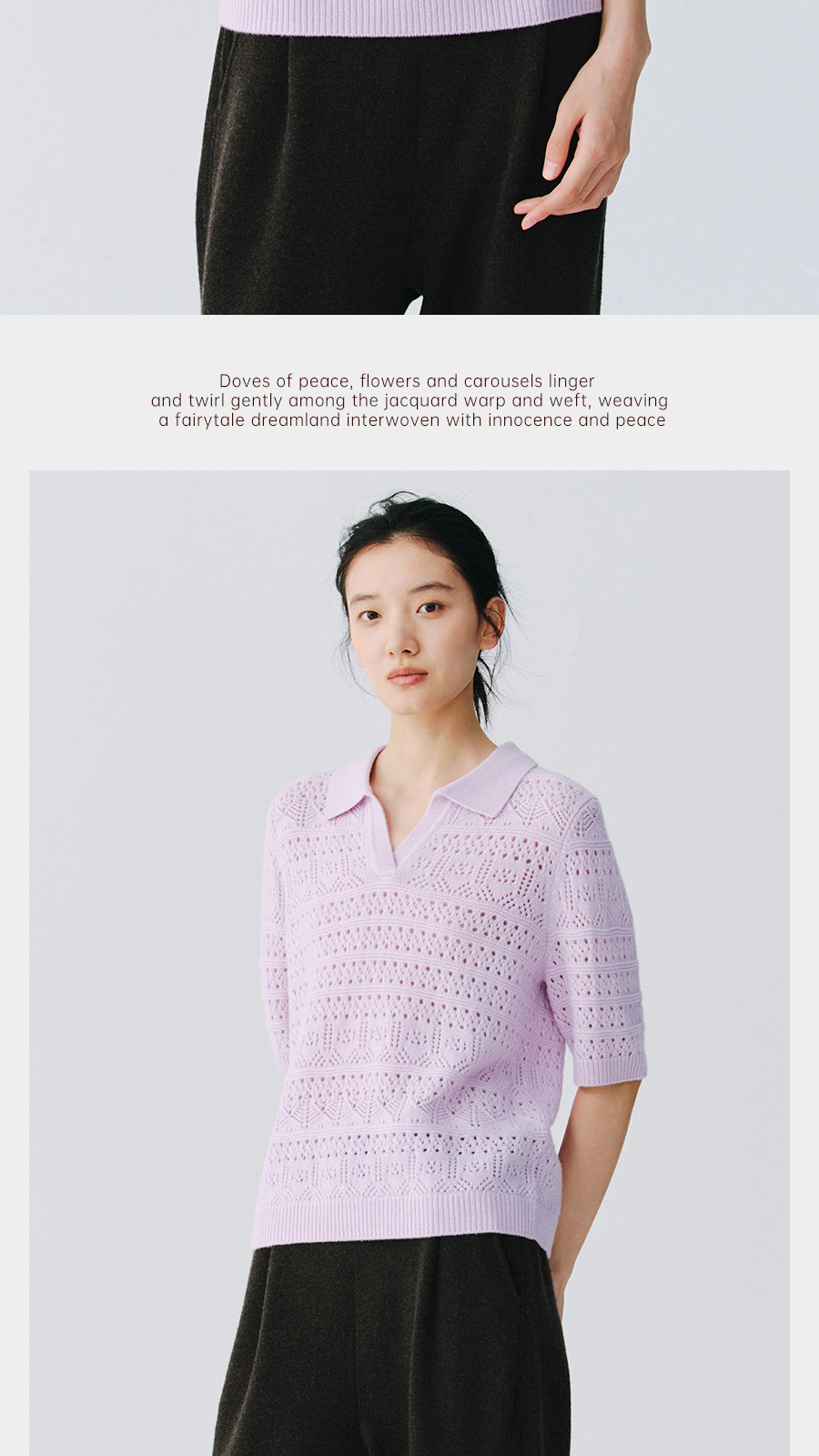 东黎 • 复苏的呼吸 山羊绒女士镂空多色翻领半袖 6058
