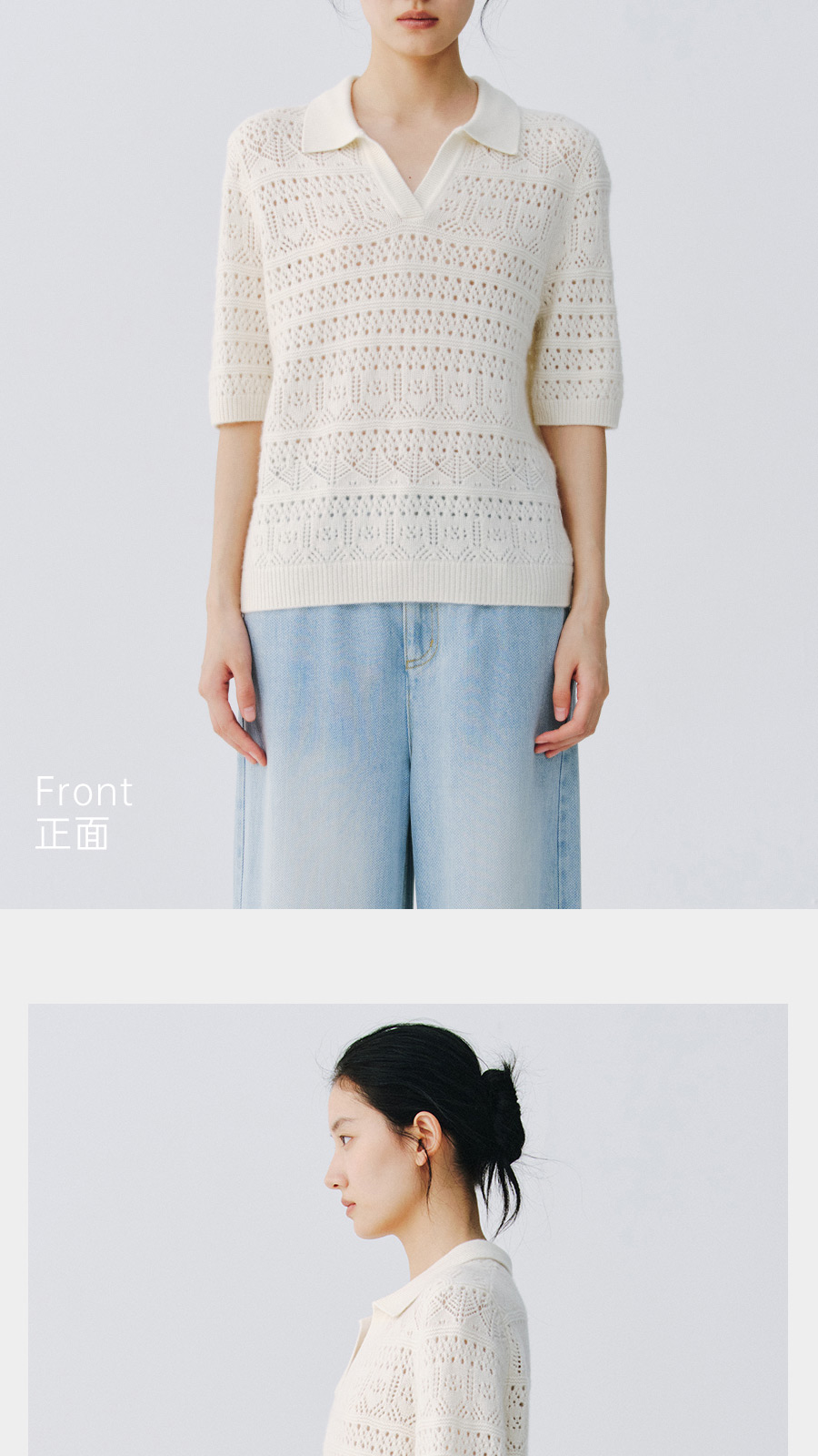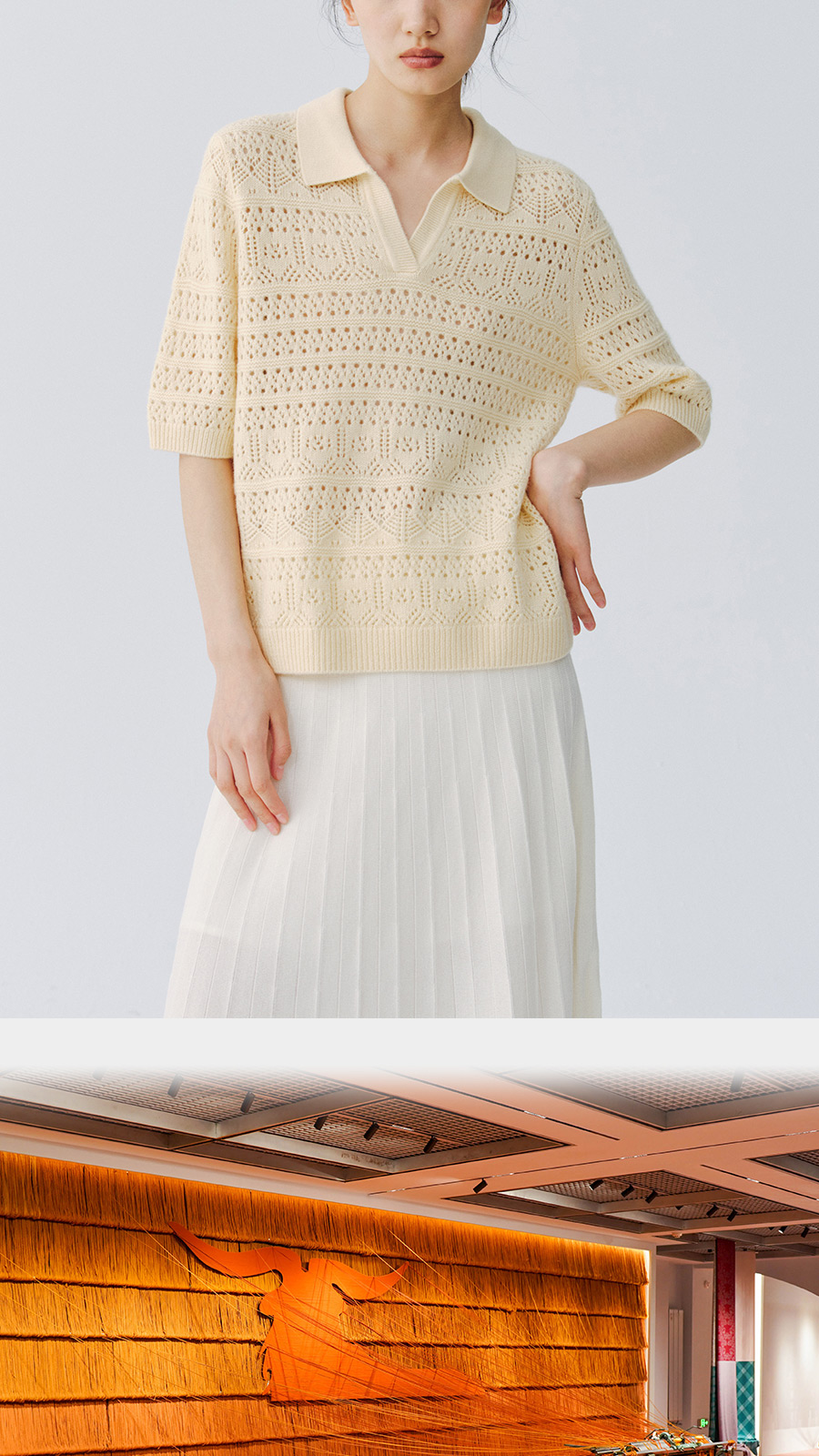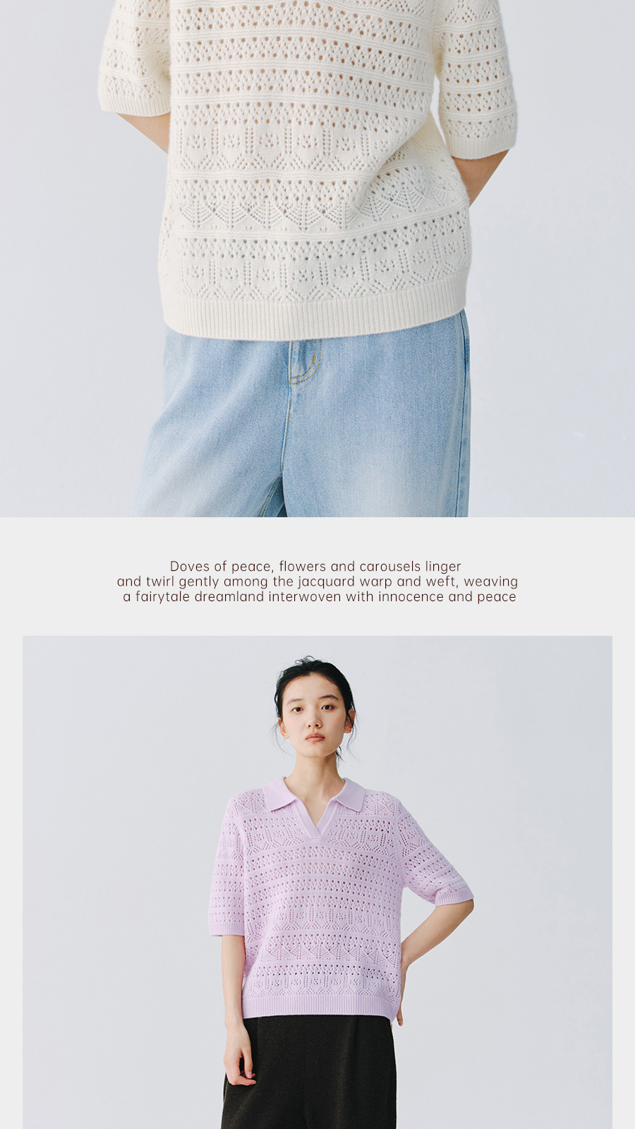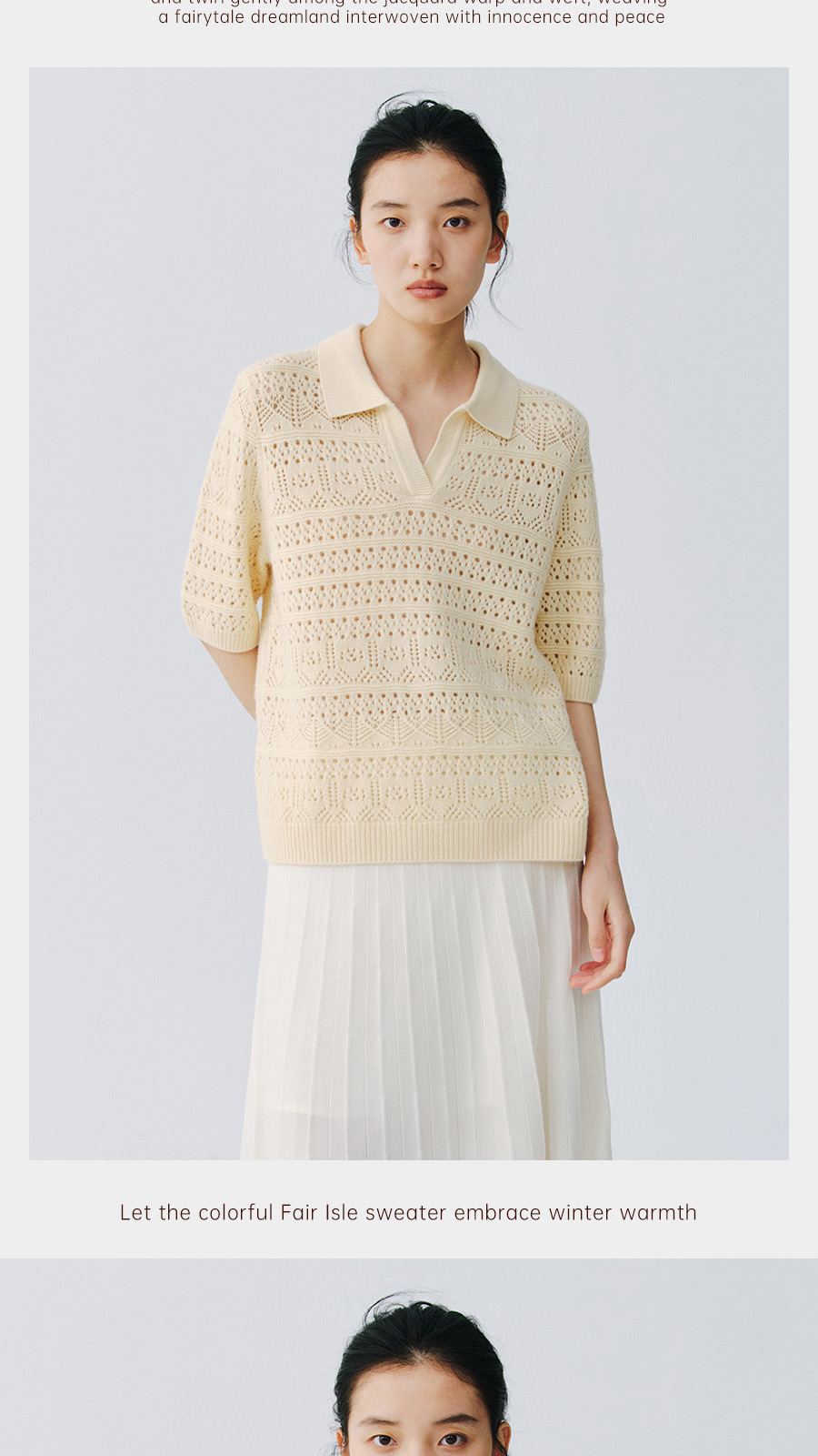东黎 • 复苏的呼吸 山羊绒女士镂空多色翻领半袖 6058