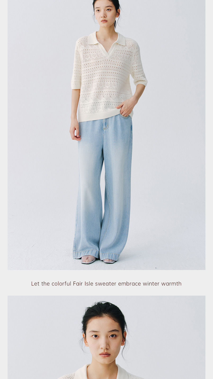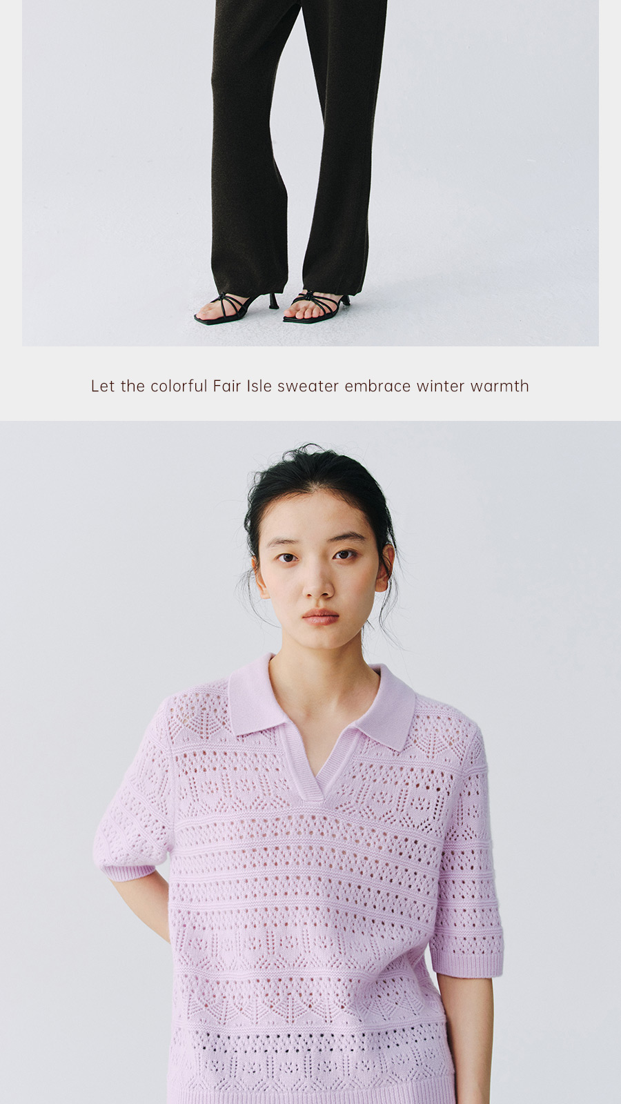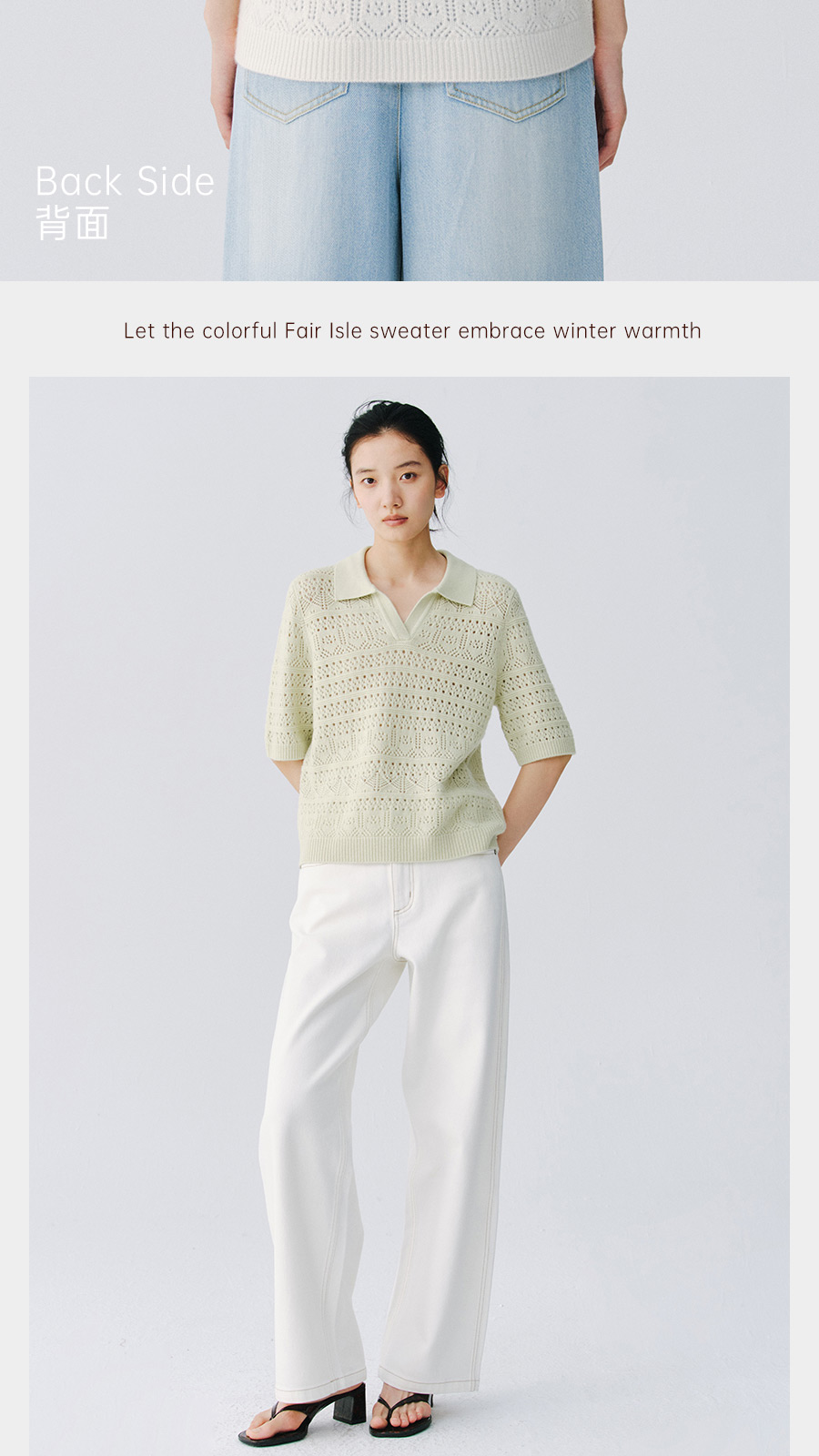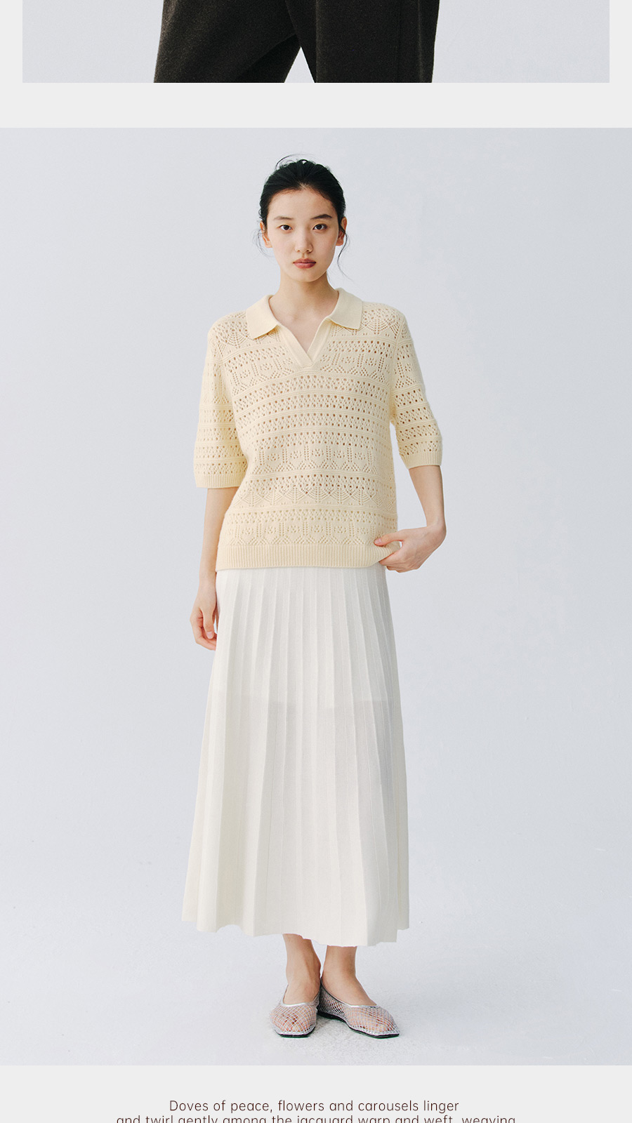 东黎 • 复苏的呼吸 山羊绒女士镂空多色翻领半袖 6058