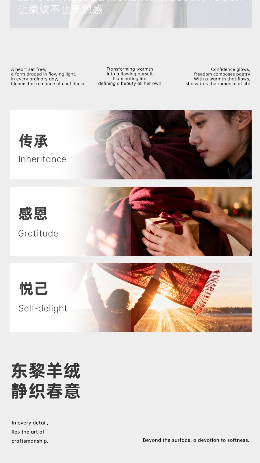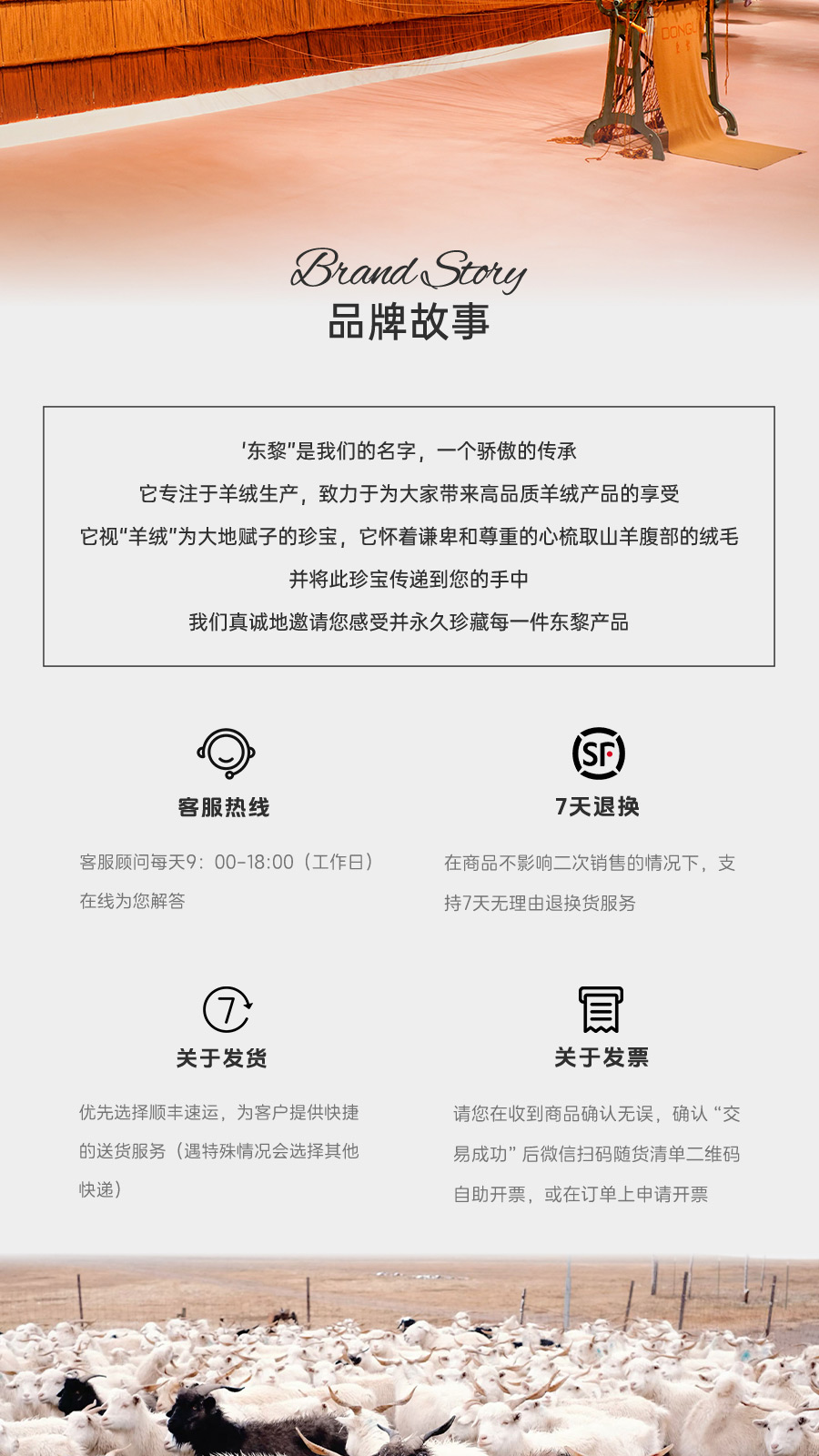 东黎羊绒是赤峰东荣集团自主品牌,自有牧场/羊绒制品全产业链优势,实现了羊绒从“牧场”到“商场”的华丽转变。