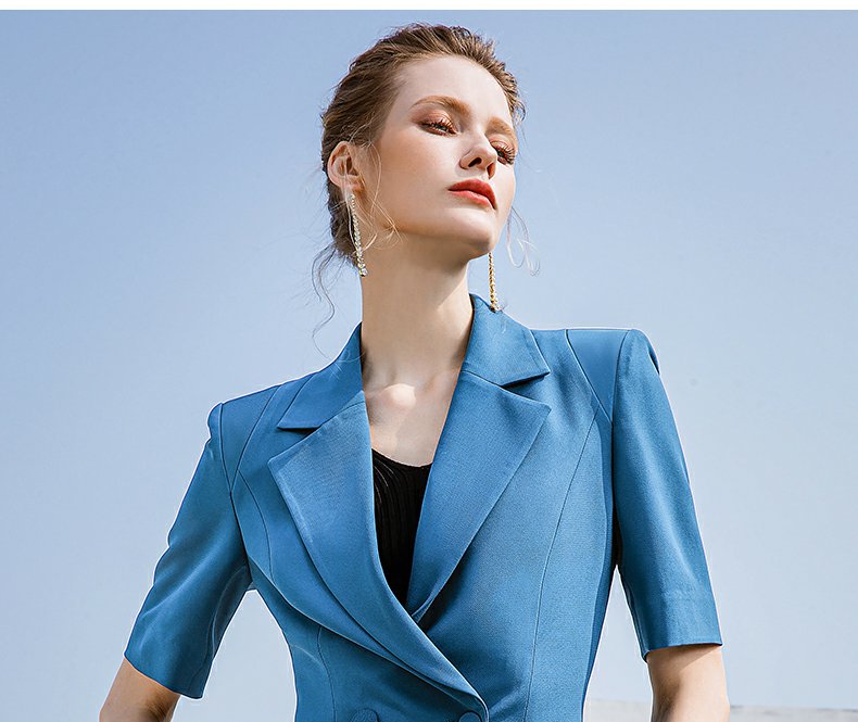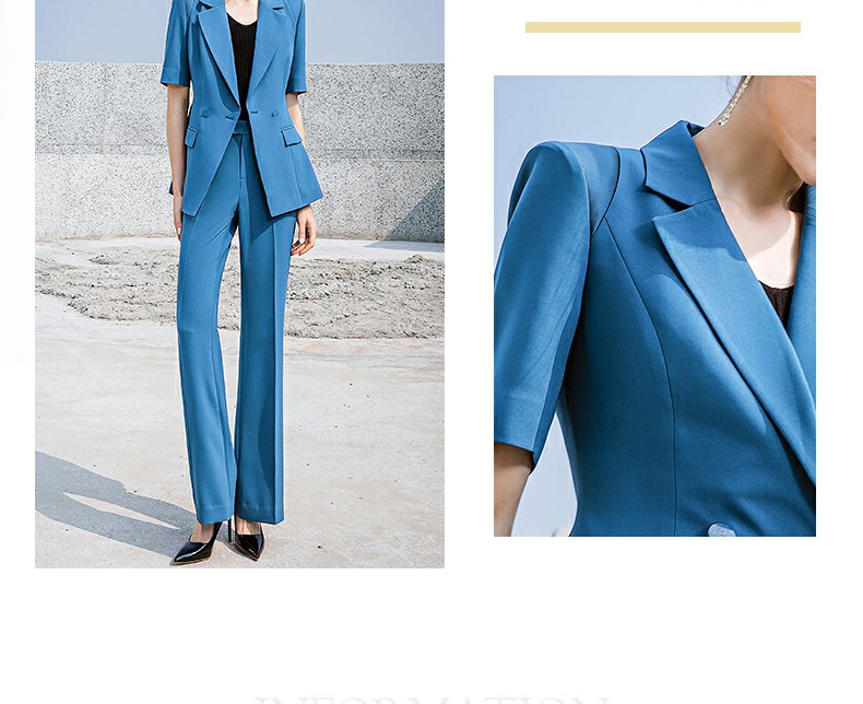 IWY/高级湖蓝色高端西装套装短袖气质女神范总裁经理职业西服正装232011C1+P3