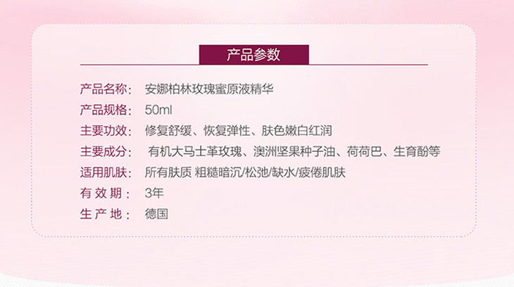 【荷兰直邮】Annemarie Borlind安娜柏林德国进口玫瑰蜜原液修复舒缓精华液50ml