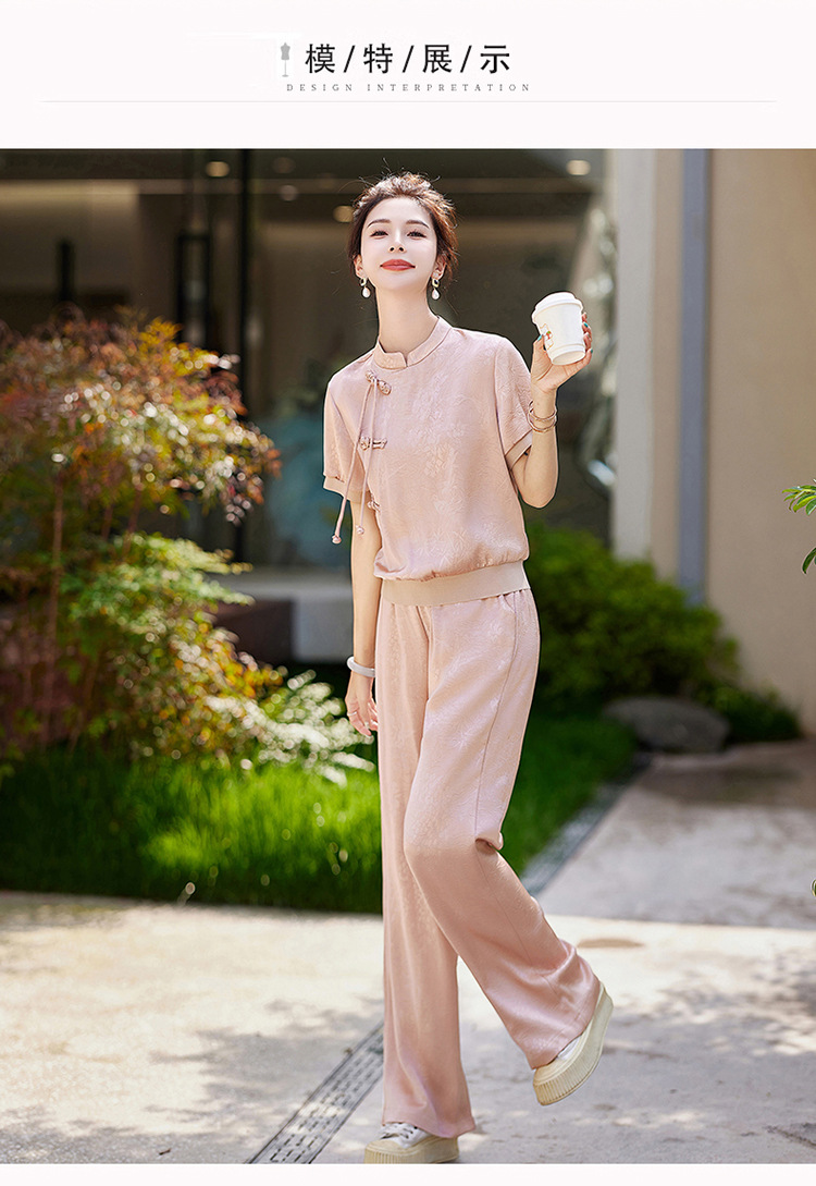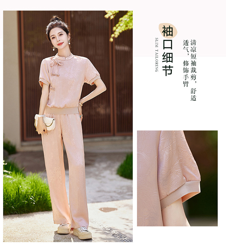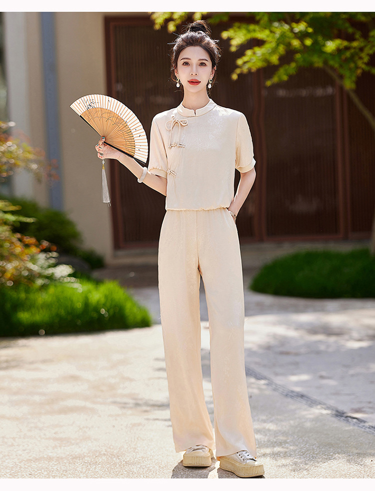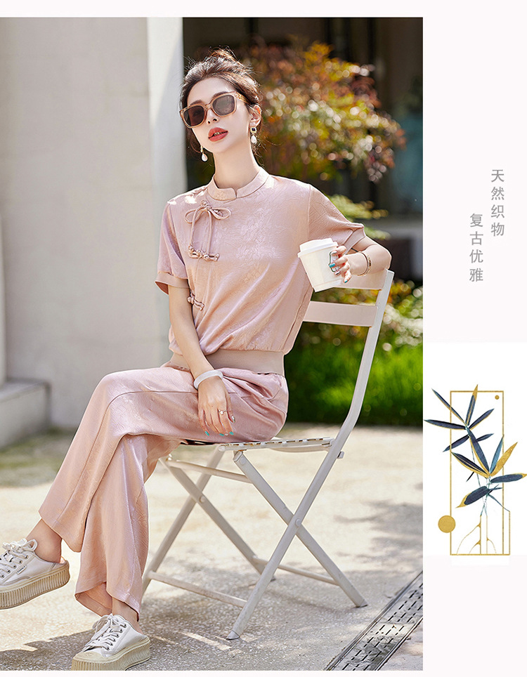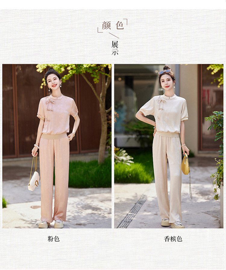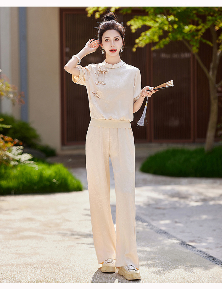 新中式阔腿裤套装夏季2024年新款高级感显瘦流行休闲盘扣两件套YLFS8897