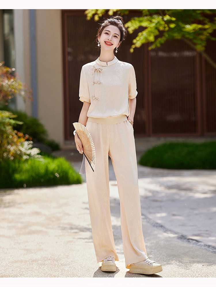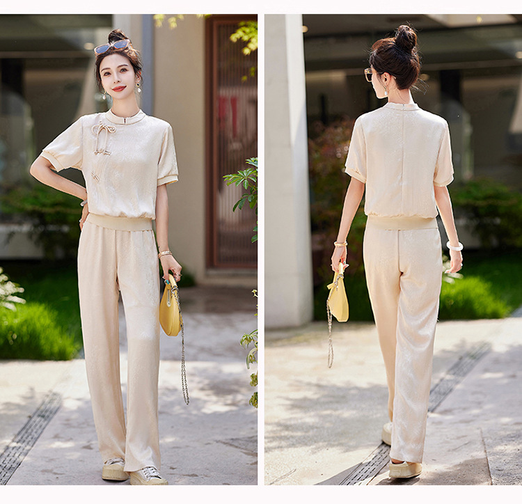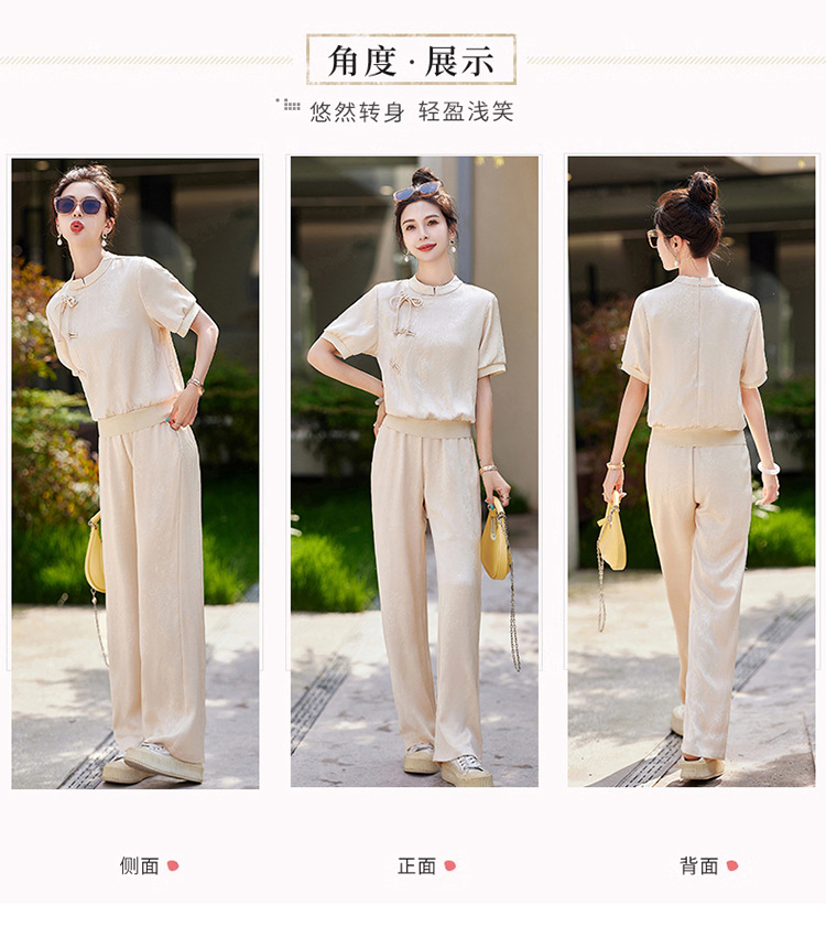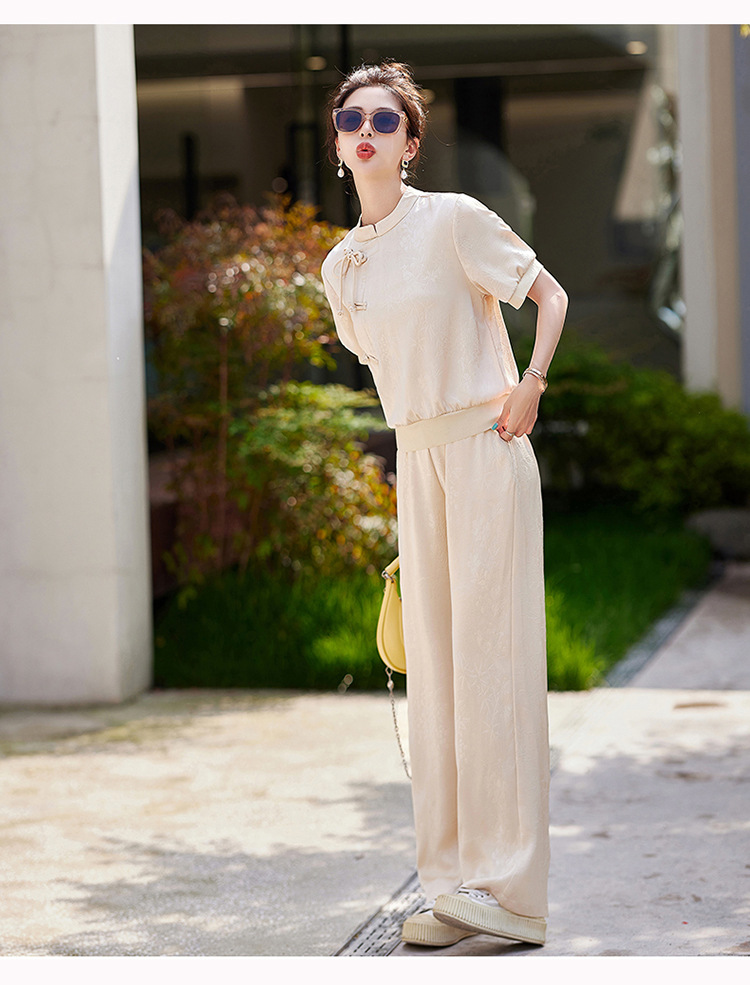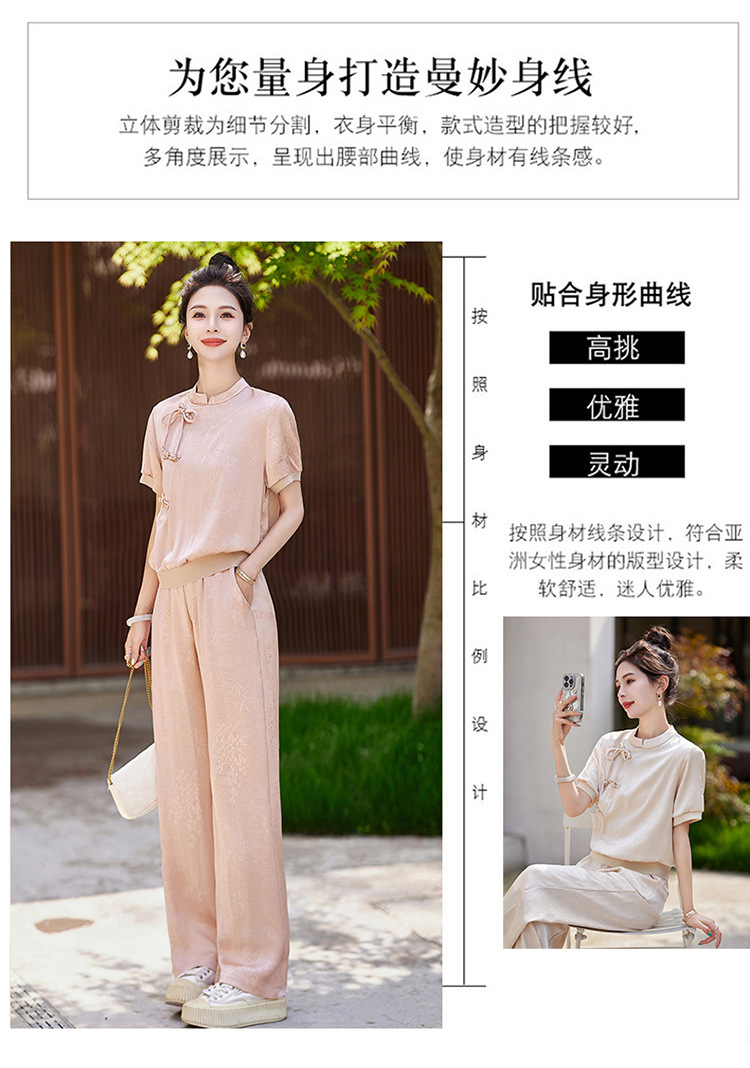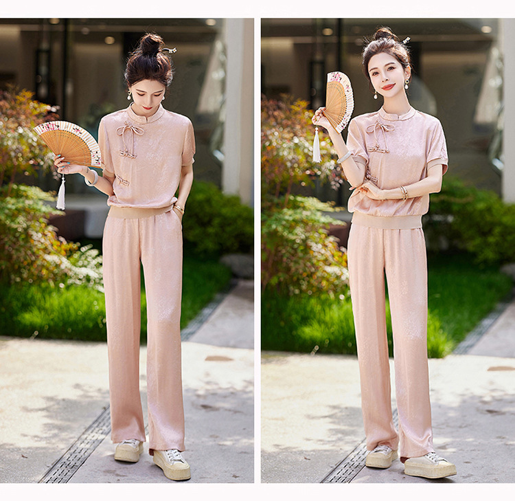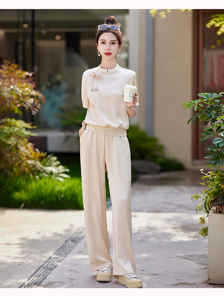 新中式阔腿裤套装夏季2024年新款高级感显瘦流行休闲盘扣两件套YLFS8897