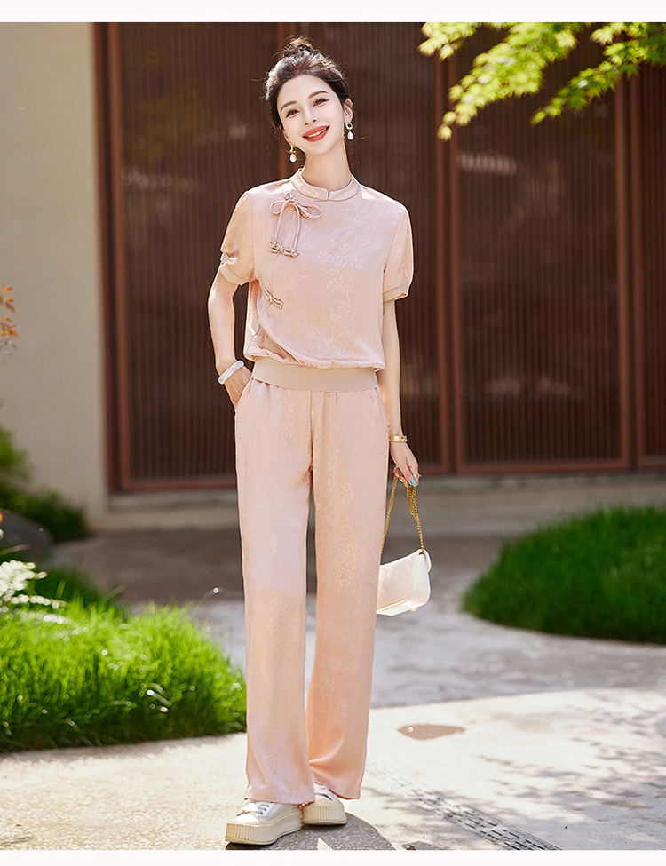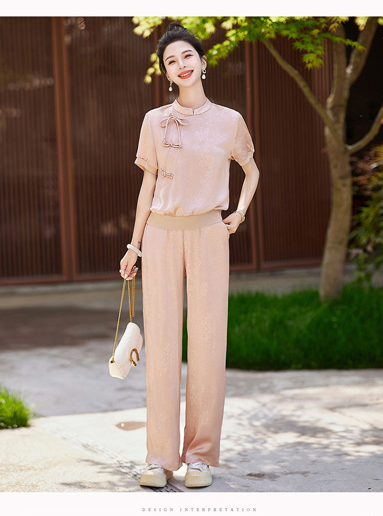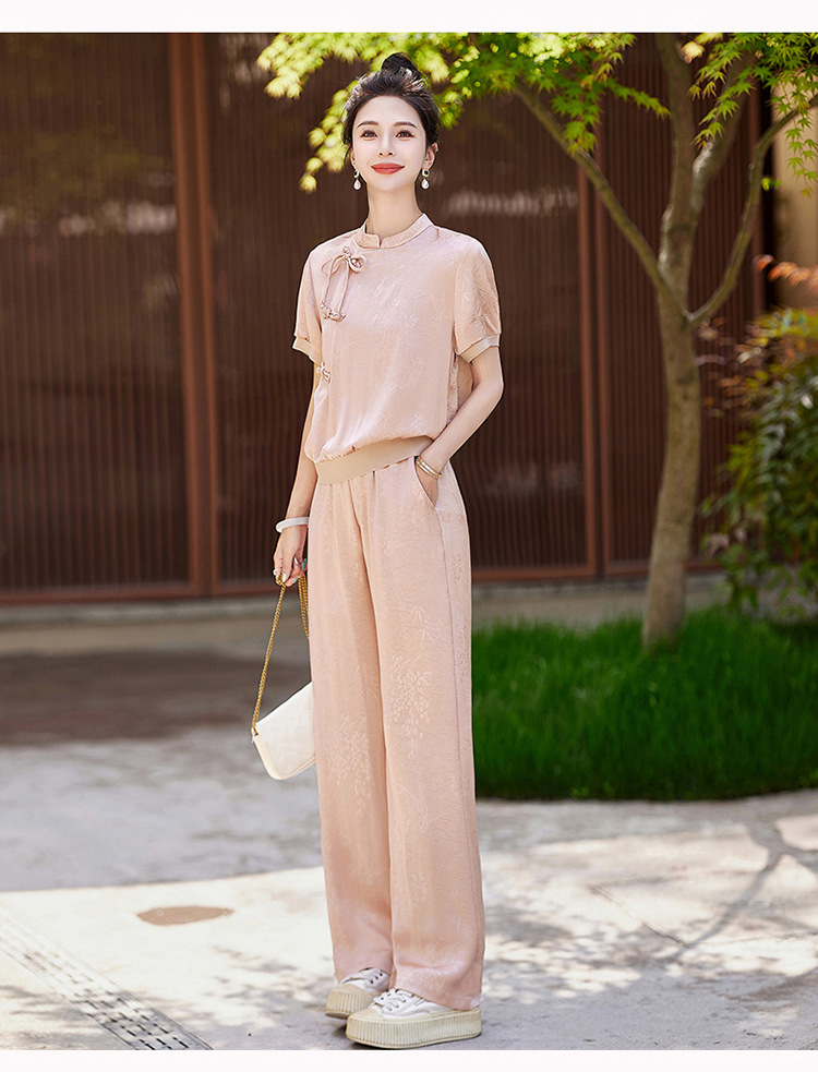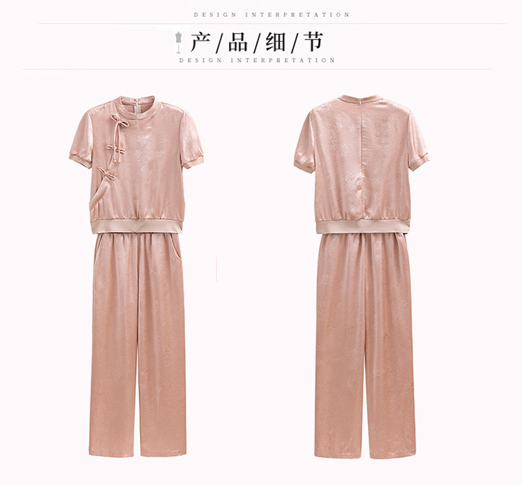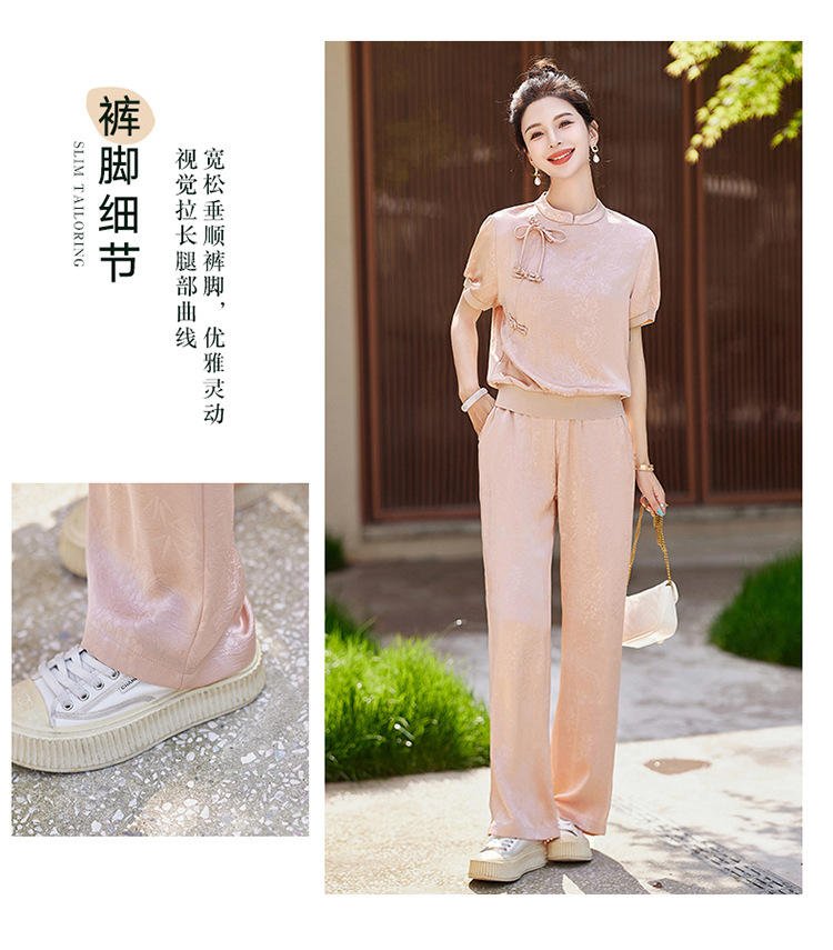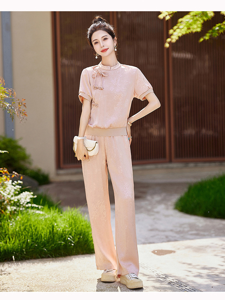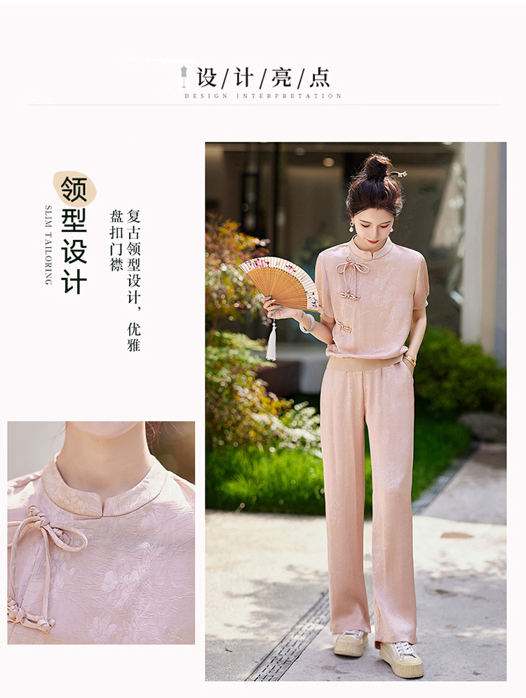 新中式阔腿裤套装夏季2024年新款高级感显瘦流行休闲盘扣两件套YLFS8897