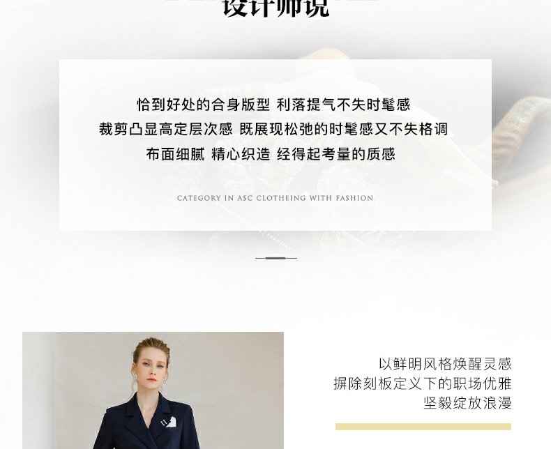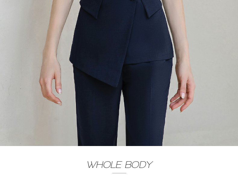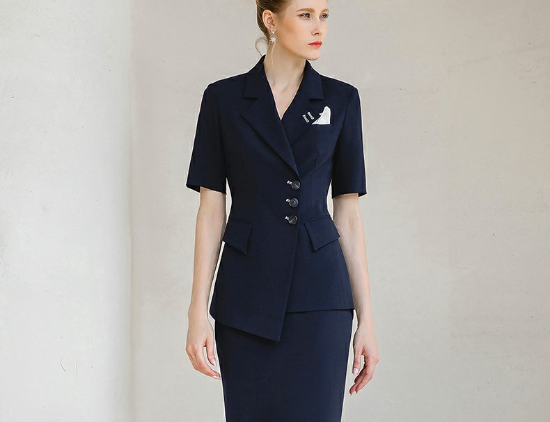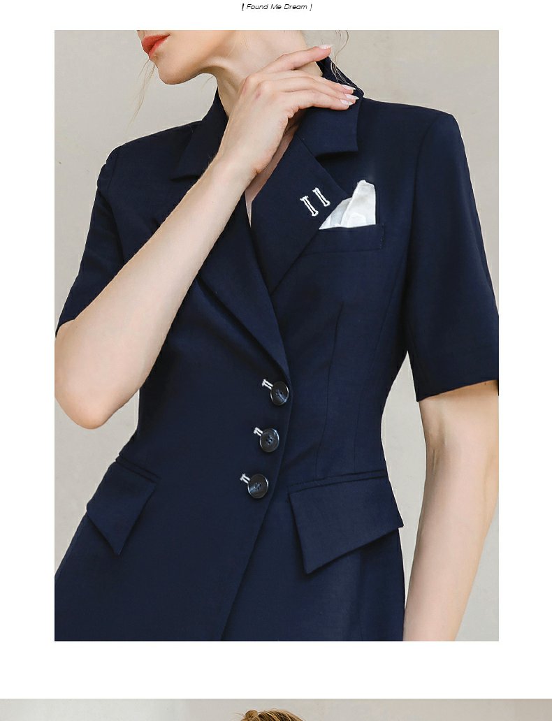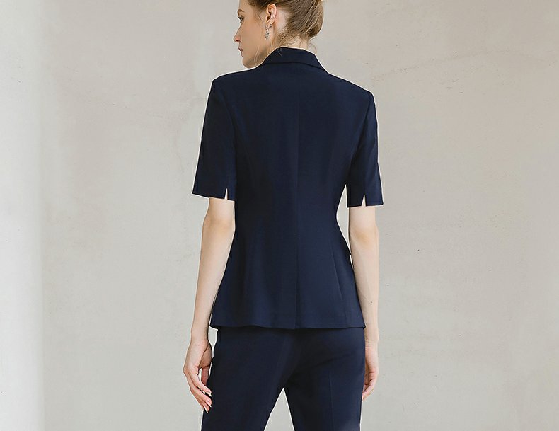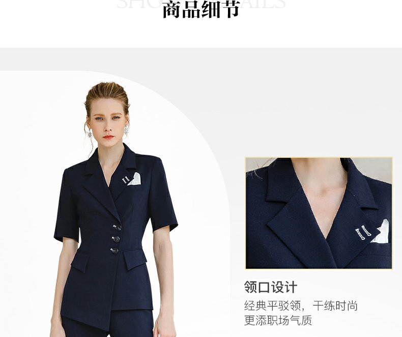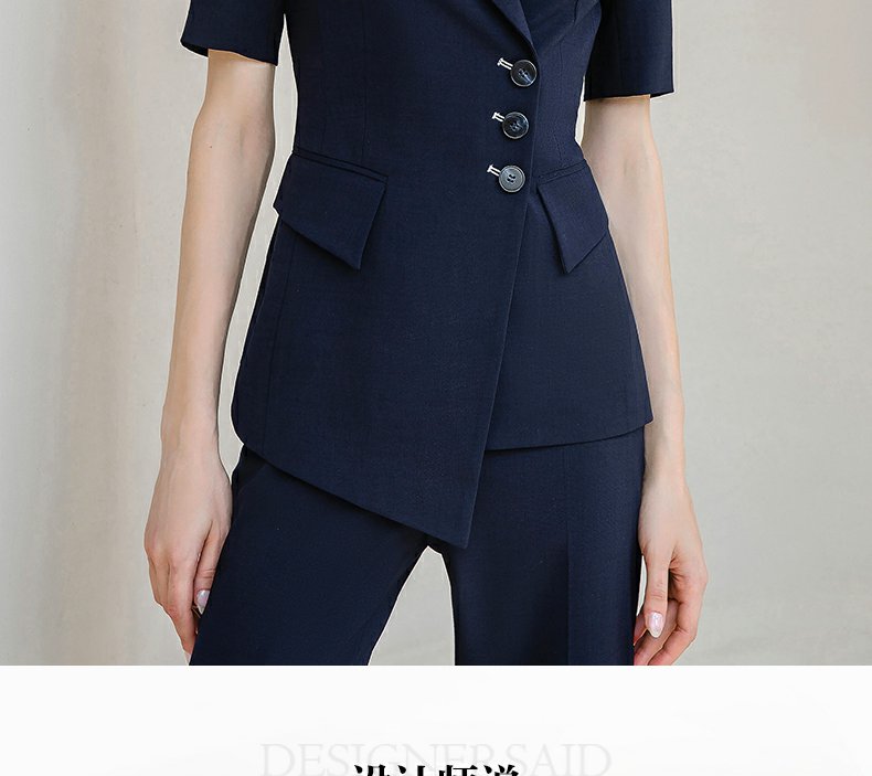 IWY/短袖藏青色西装套装女设计感高端商务气质经理修身西服套裤装232021C1P1