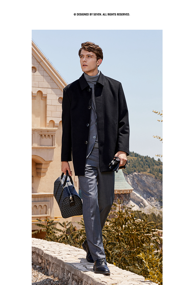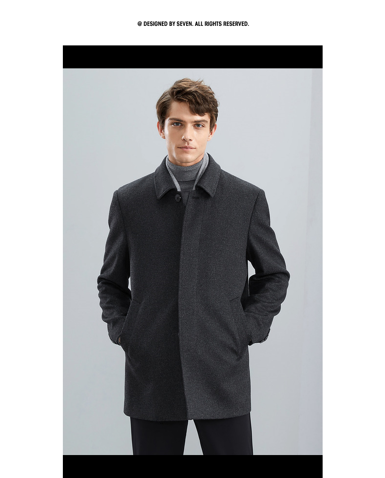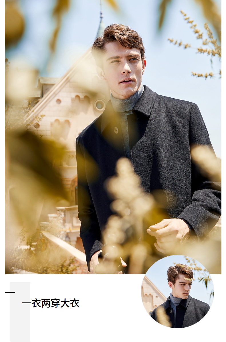 【一衣两穿】柒牌毛呢大衣男冬季新款可拆卸鹅绒内胆翻领外套 125D70200