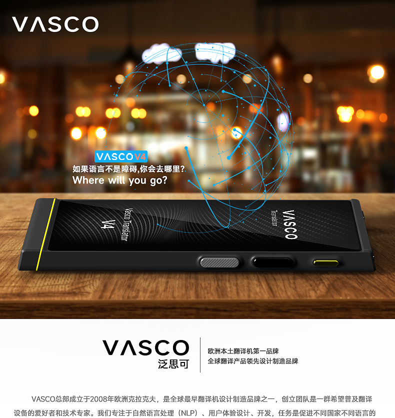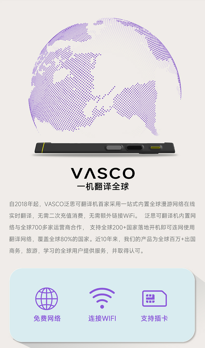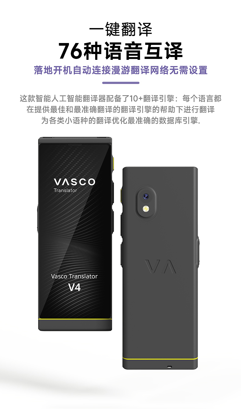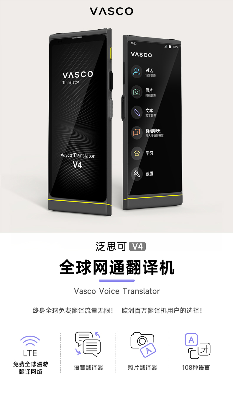 Vasco V4 M3 翻译器 108种语音 终身网络 出国神器