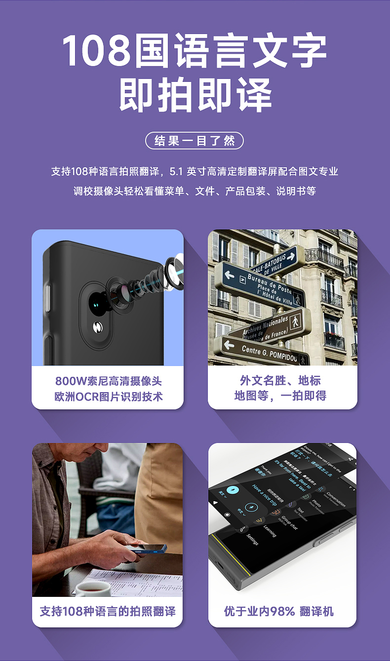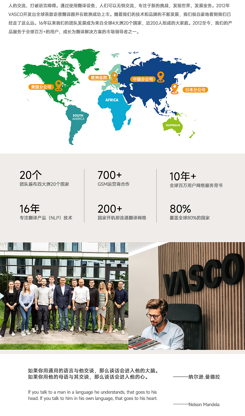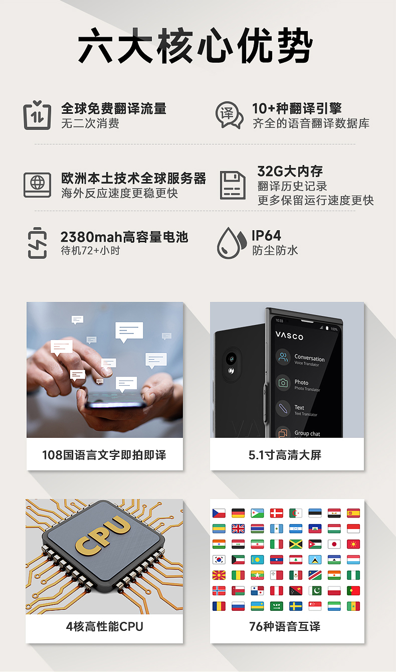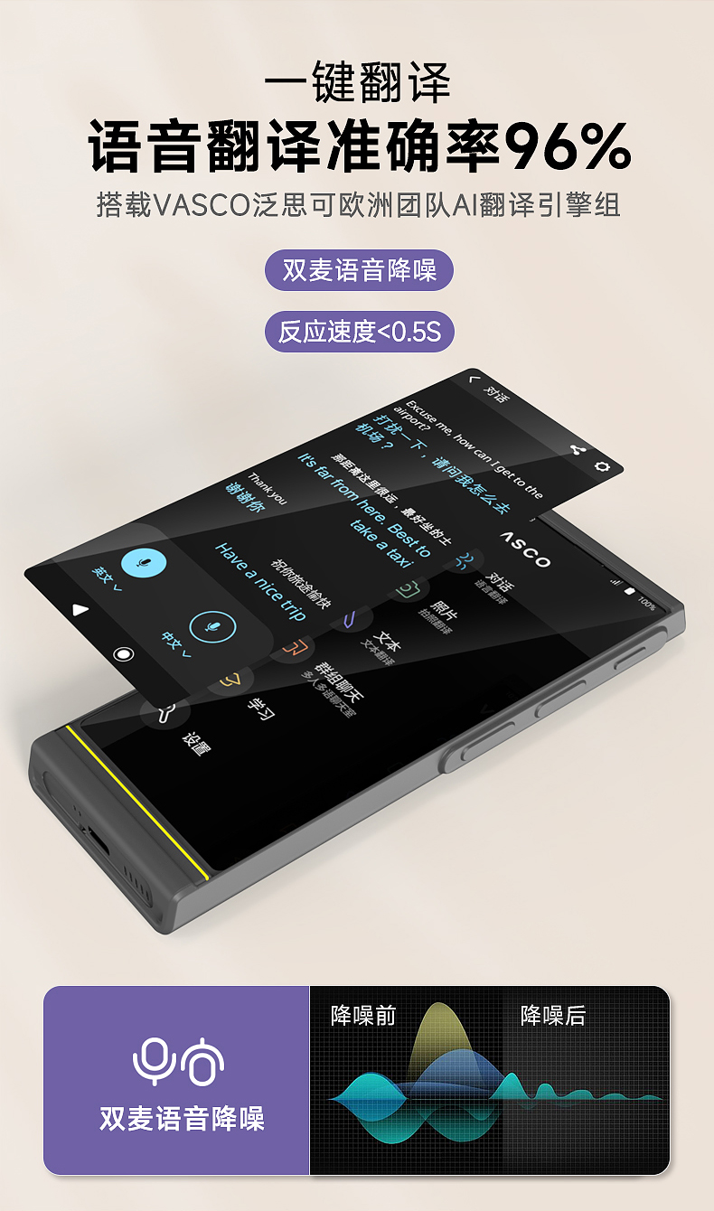 Vasco V4 M3 翻译器 108种语音 终身网络 出国神器