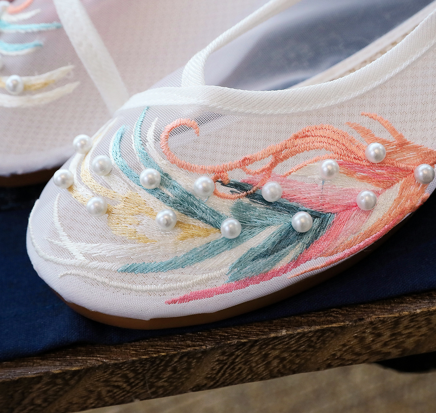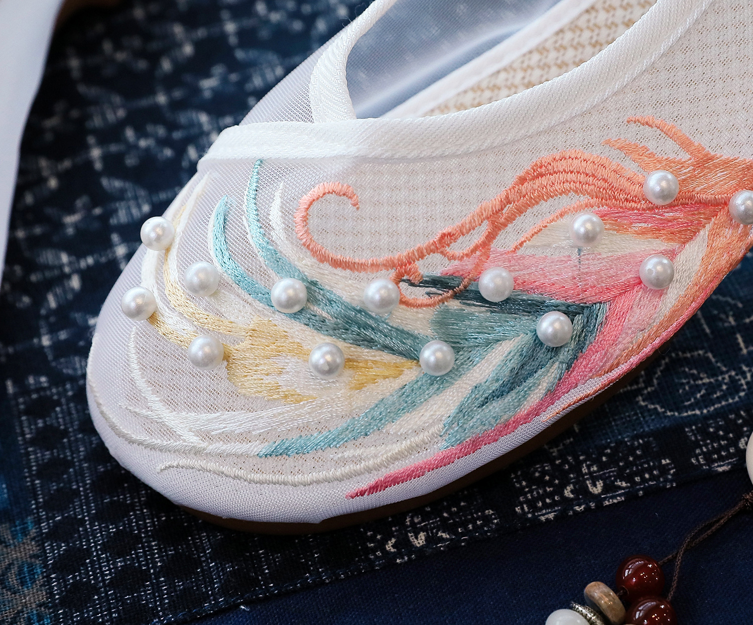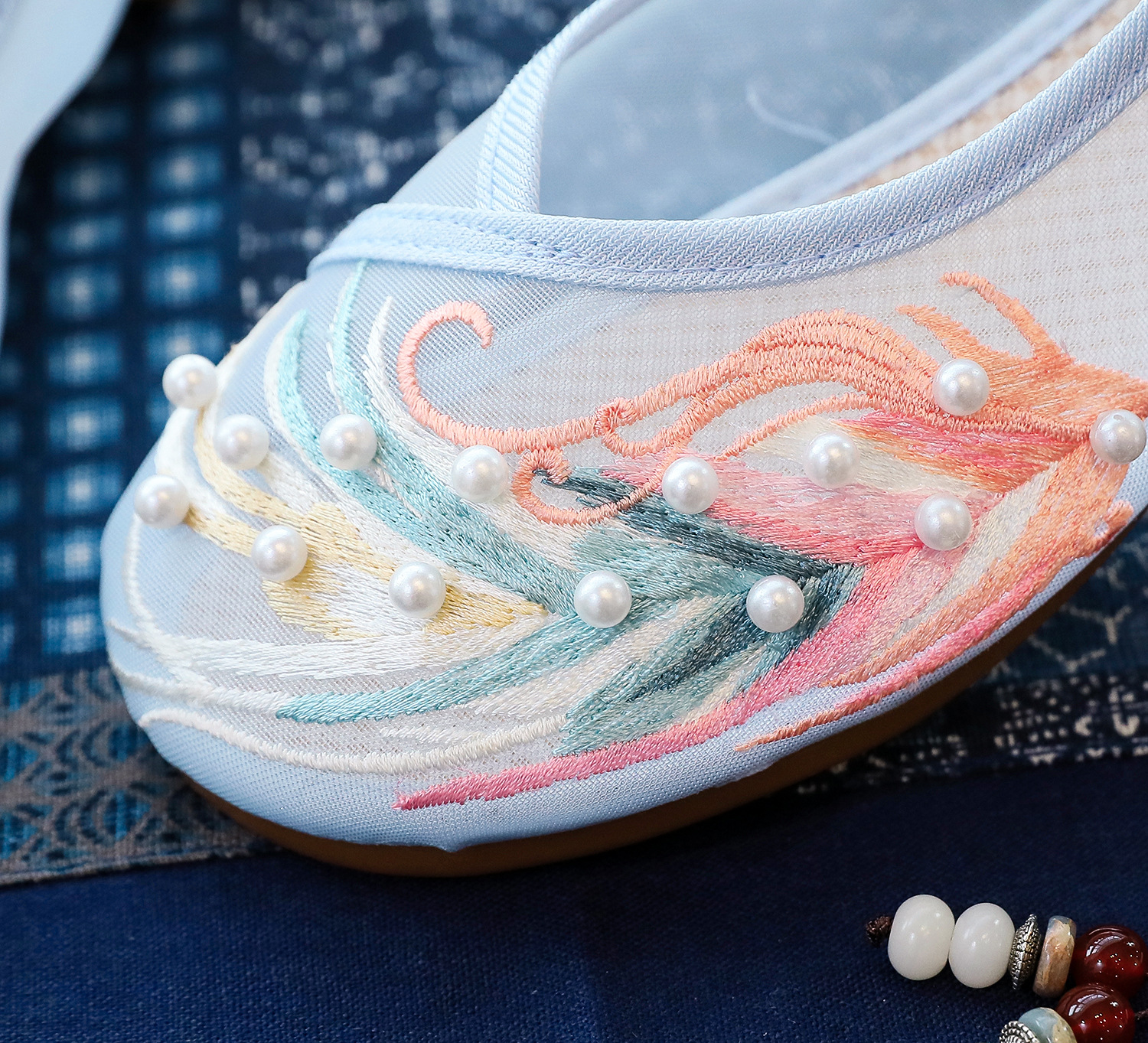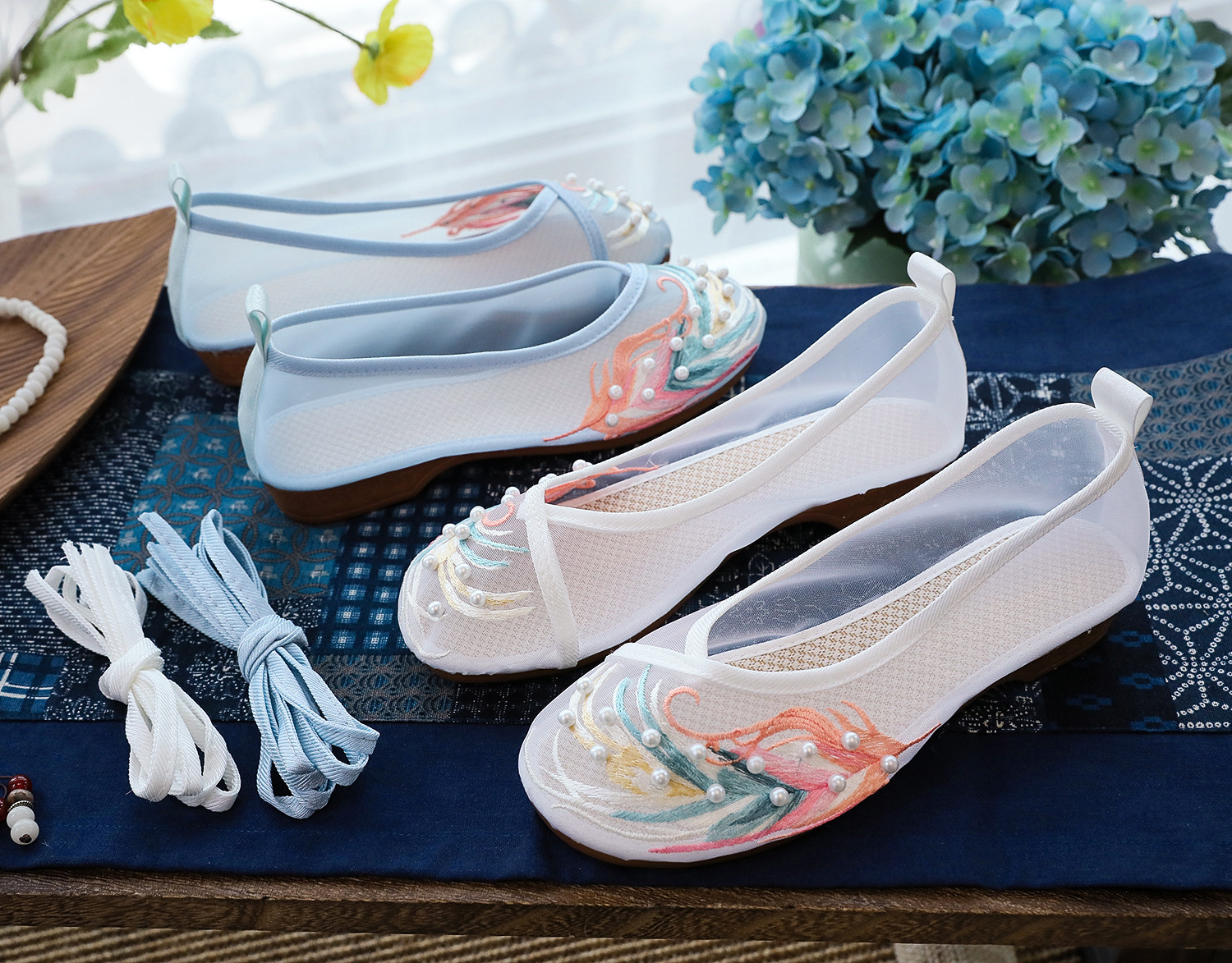 【网纱彩羽】古风圆头,镂空平底绣花鞋 YR